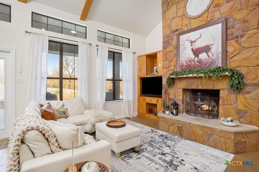 Experience elevated lake living at 3426 Summit Circle in Belton, Texas, a stunning home overlooking Belton Lake designed for both everyday comfort and unforgettable entertaining. This 3-bedroom, 2.5-bathroom residence offers an open and light-filled floor plan with high ceilings, expansive windows, and thoughtfully designed living spaces. Two spacious living areas provide flexibility for relaxing or hosting, while built-in entertainment shelving adds style and function. The home features two wood-burning fireplaces, including one in the outdoor kitchen area, creating a seamless indoor-outdoor living experience. Step outside to your private backyard oasis complete with an in-ground pool and spa, generous yard space, and room for pets or gatherings with friends and family. The outdoor kitchen and fireplace make this space ideal for year-round entertaining while enjoying peaceful lake views. Conveniently located near Belton ISD schools, shopping centers, grocery stores, and local dining, this home also offers easy access to major employers, medical facilities, and nearby highways for commuting to Temple, Killeen, and surrounding areas. Combining location, lifestyle, and lake views, 3426 Summit Circle offers the perfect balance of comfort, recreation, and convenience.