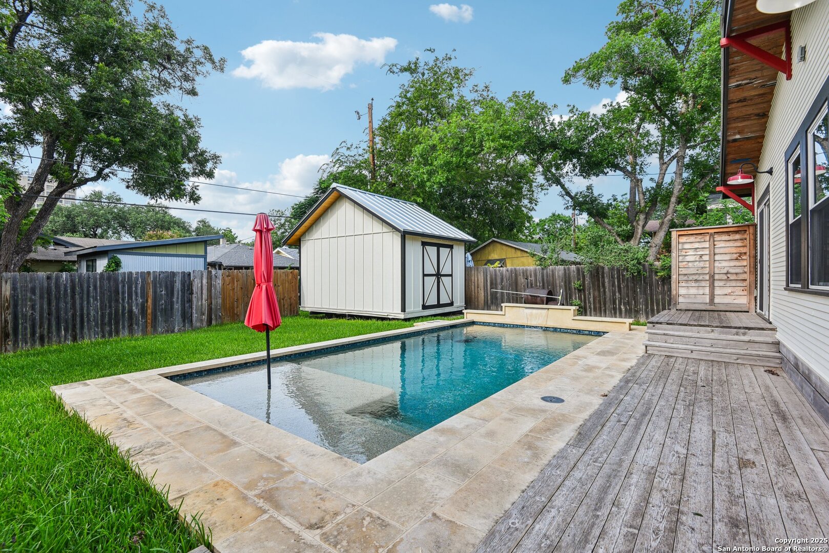 Beautiful, Fully-Renovated Mahncke Park Craftsman with Sparkling Pool, Lawn & Pool Service Included in Rent!! Incredible Location with Easy Access to Broadway, Restaurants, Major Attractions Include Botanical Gardens, Witte Museum, Brackenridge Park, Downtown, The Pearl, & More. Charming Curb Appeal with Blend of Historic Charm & Modern Finishes. Major Upgrades and Renovations Recently Including New Electrical, Plumbing, Tankless Hot Water Heater, Water Softener, Insulation, and HVAC. Spacious Wraparound Covered Front Porch Leads to Large Living Area with Woodburning Fireplace, Open to Dining Area with Neutral Paint Colors, Built-In Shelving, Crown Molding & Woodwork, & Rich Original Hardwood Flooring. Gorgeous Kitchen Compete with Gas Cooking, New Cabinetry, Contemporary Backsplash, Stainless Steel Appliance, & Stone Countertops. Large Primary Suite with Beautiful Bathroom Finishes, Walk-In Shower, & Free-Standing Tub. 2 Nicely-Sized Secondary Bedrooms & 2 Full Bathrooms with Tasteful Finishes & Subway Tile Tub/Shower. Wonderful, Private Backyard with Keith Zars Pool, Storage Shed, Cedar Deck, & Multiple Access. Laundry Room Inside Adjacent to Kitchen, Washer/Dryer Included. Pets Case-by-Case. Regular Yard Maintenance & Pool Service Included.