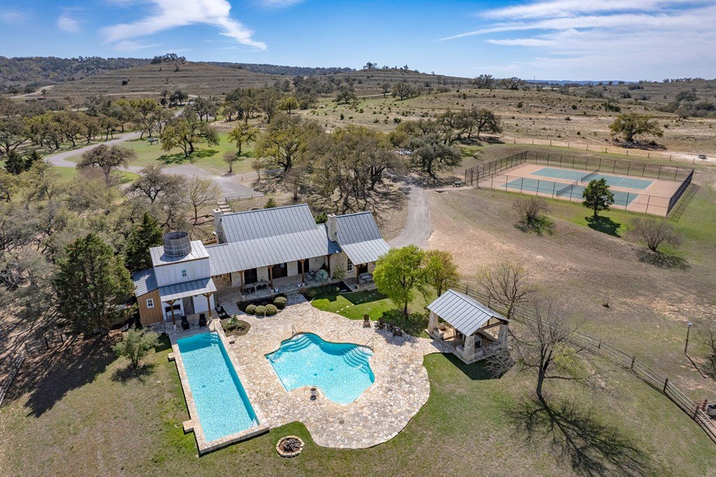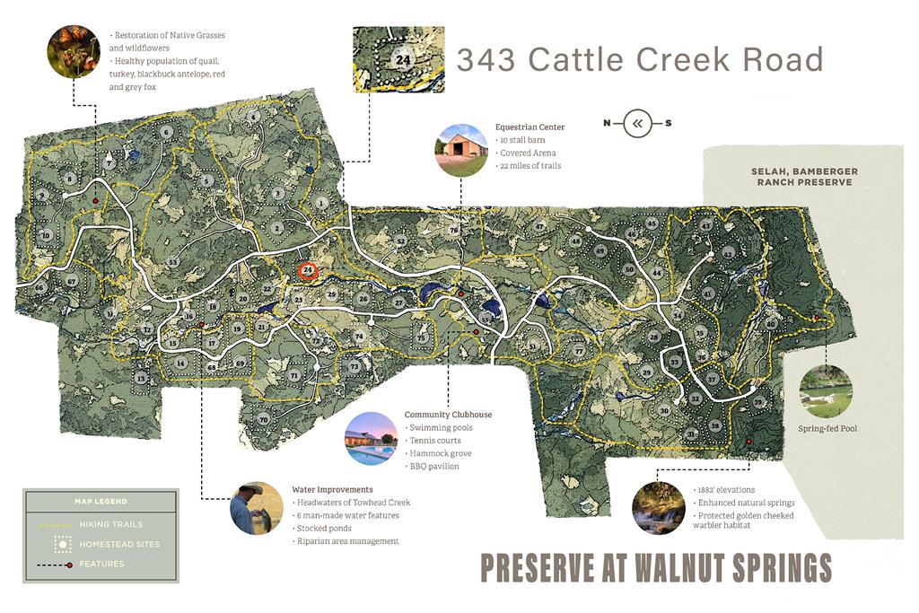 Surrounded by 100+/- ac of protected open space, an exceptionally private 6+ acre property within a 2000 acre luxury ranch community with only 66 homesites. Offers stunning vistas, tranquility, and trophy oak trees, an equine facility, 22 miles of trails, clubhouse, tennis courts, putting green, stocked ponds, hunting opportunities and onsite concierge service. Perpetually protected from future development. This ranchette may be enjoyed just as much prior to building as it will be after. Community wide Ag-exemption, no city taxes. Building plans available. 1 hour to Austin and San Antonio.
