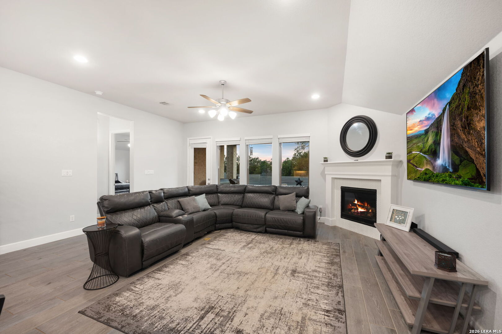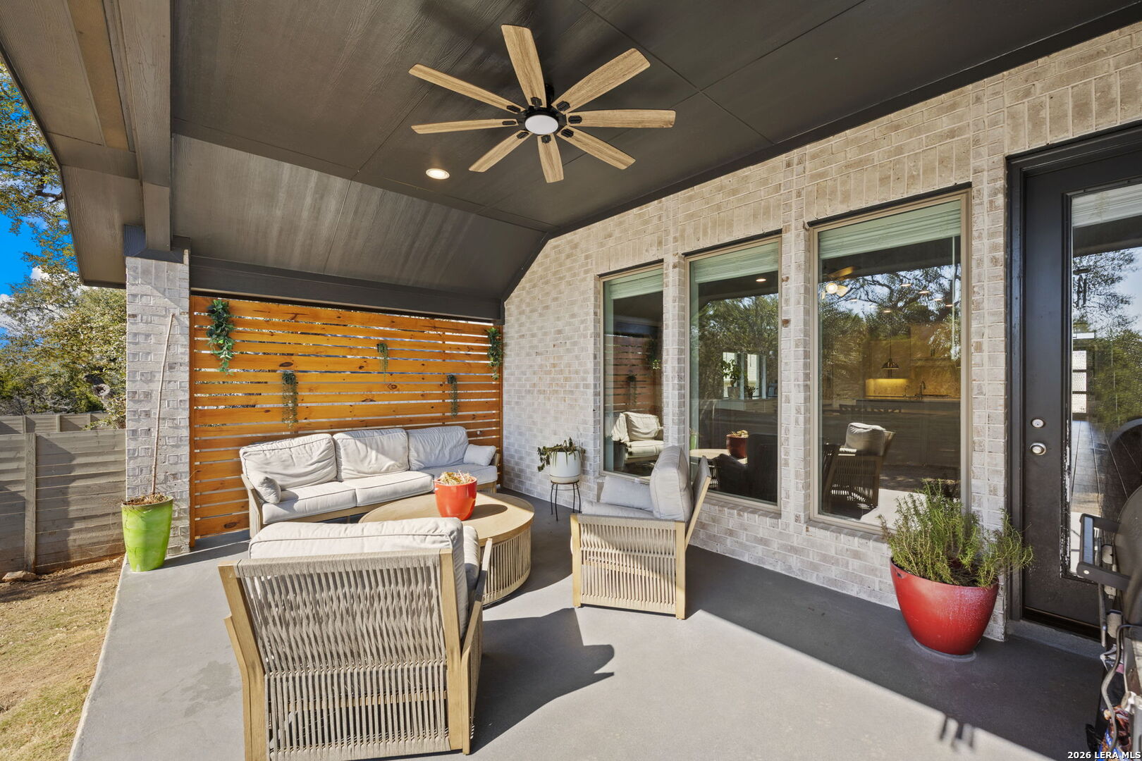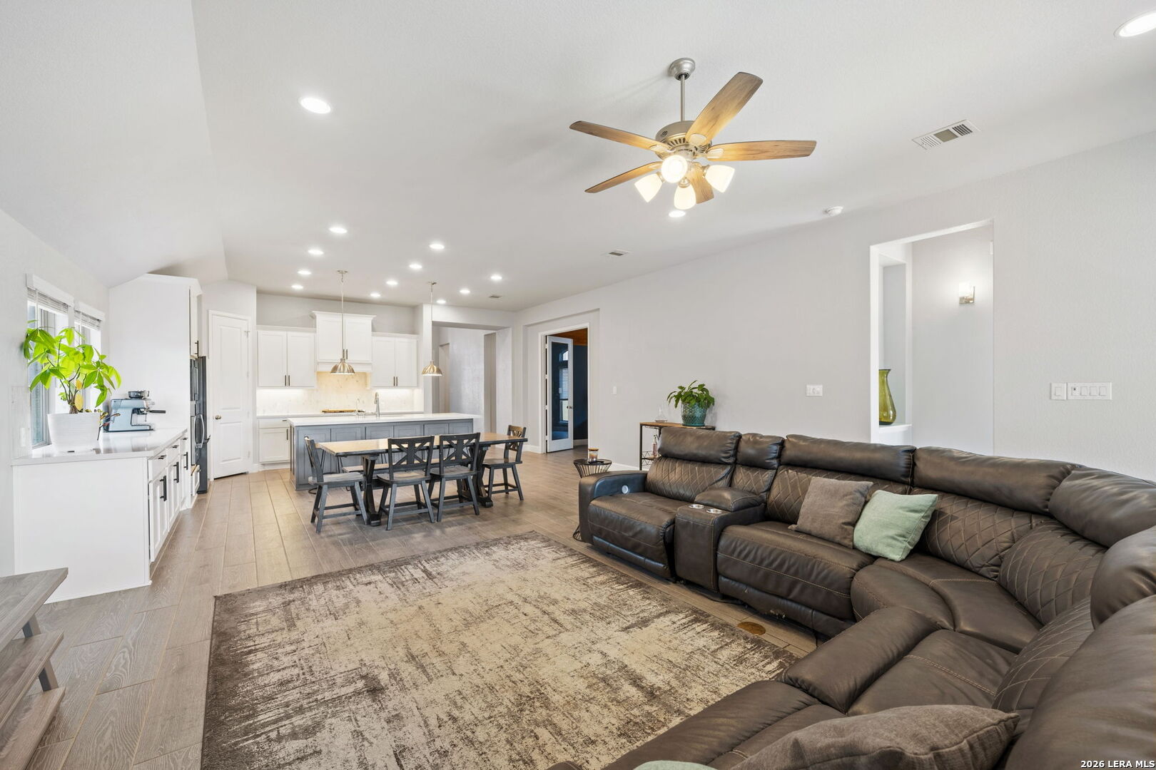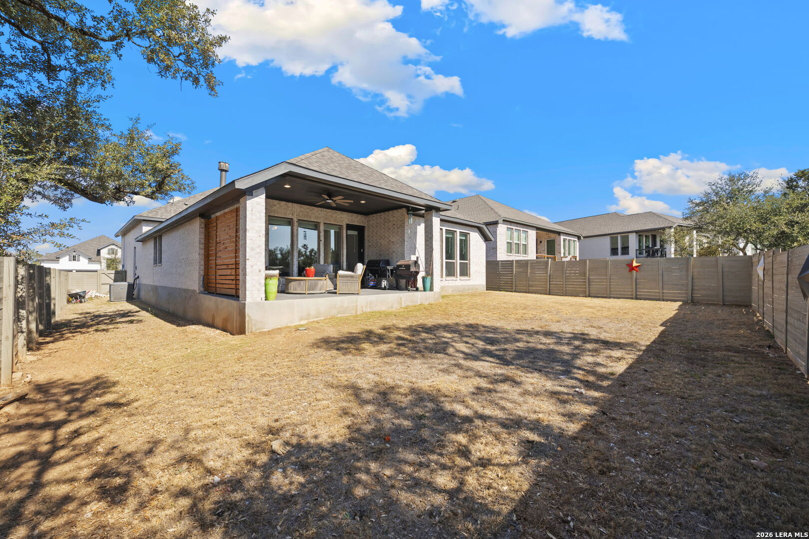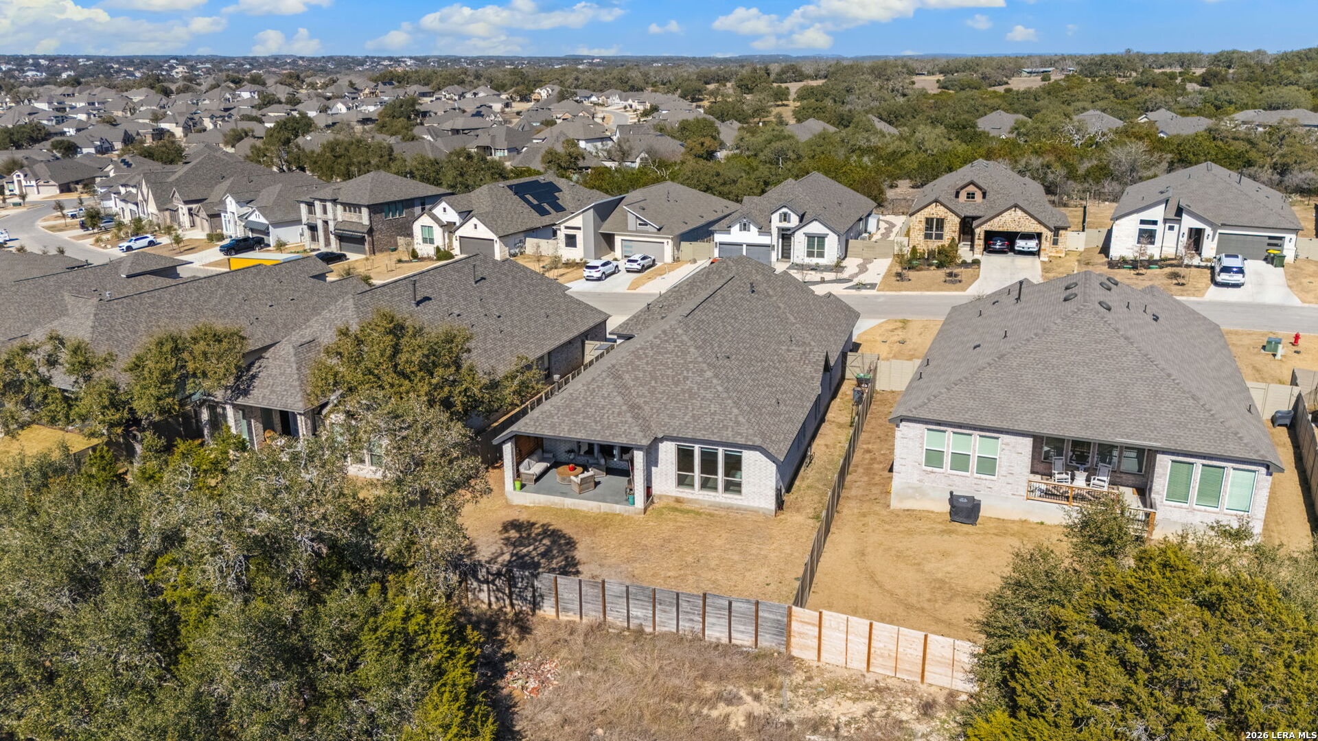 Stunning 2545 sq ft Perry home located in the highly desirable Grove of Vintage Oaks, perfectly situated on a level greenbelt lot for added privacy and serene Hill Country views. This thoughtfully designed 4-bedroom, 3-bath home features an exceptional open-concept floor plan ideal for both everyday living and entertaining. The expansive kitchen is a true centerpiece, offering an oversized island, gas cooking, and an abundance of cabinetry and storage, all overlooking the spacious living room filled with natural light from walls of windows and anchored by a cozy gas fireplace. The private primary suite is a relaxing retreat with a spa-like bath featuring double vanities, a separate walk-in shower, a soaking garden tub, and a large walk-in closet. One of the secondary bedrooms includes a private ensuite bath, perfect for guests or multigenerational living. Step outside to enjoy the large, covered patio overlooking the greenbelt-an ideal space for morning coffee, evening relaxation, or outdoor entertaining. Located in the sought-after Vintage Oaks community, residents enjoy resort-style amenities including pools, fitness center, clubhouse, sports courts, walking trails, and more. This exceptional home offers luxury, privacy, and an unbeatable lifestyle in one of New Braunfels' premier neighborhoods.