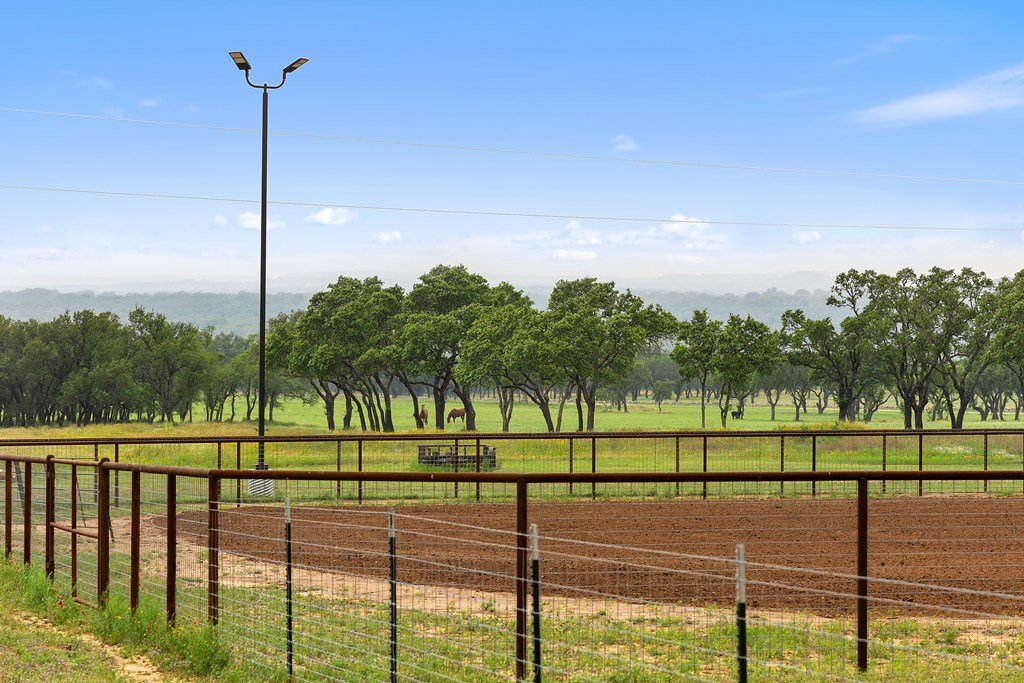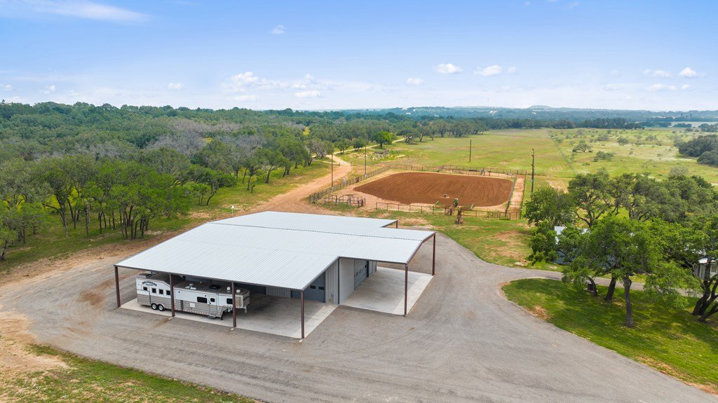 Welcome to 134 unrestricted acres of manicured perfection in the heart of the Texas Hill Country. This premier ranch offers an exceptional blend of upscale equestrian amenities, stunning natural beauty, and outstanding development potential. At the heart of the property is a 50' x 75' custom barn, flanked by 30-foot lean-tos on each side one side features a concrete slab and the other houses three oversized horse stalls. The barn is fully spray-foam insulated and equipped with central heat and air, creating a comfortable and climate-controlled environment. Inside, you'll also find a spacious office, a well-appointed bathroom, and all power-operated doors for convenience and functionality. Also on site is a nice set of cattle working pens. Designed for serious horse enthusiasts, the ranch includes a 150' x 250' lighted equestrian arena, purpose-built for team roping and ideal for a range of riding disciplines. A second barn on the property offers even more versatility, featuring a large covered storage area and an additional bunkouse and full bathroom perfect for operations, guests, or ranch staff. The entire ranch is fenced with new perimeter fencing and accessed via an automatic gate off a paved county road, offering both security and ease of access. There is 1500 ft of paved County Road frontage on Klett Ranch Rd. With rolling terrain and a picturesque hilltop, the ranch showcases expansive long-range views across the Hill Country. Towering mature live oaks fill the landscape, with all cedar removed and every tree meticulously trimmed, creating a park-like setting. Whether you're seeking a top-tier equestrian facility, a private ranch retreat, or the perfect canvas to build your dream home, this property offers it all. Multiple prime building sites dot the landscape, or consider transforming the upscale, insulated barn into a custom residence. There are 2 water wells on site and a small stock pond.