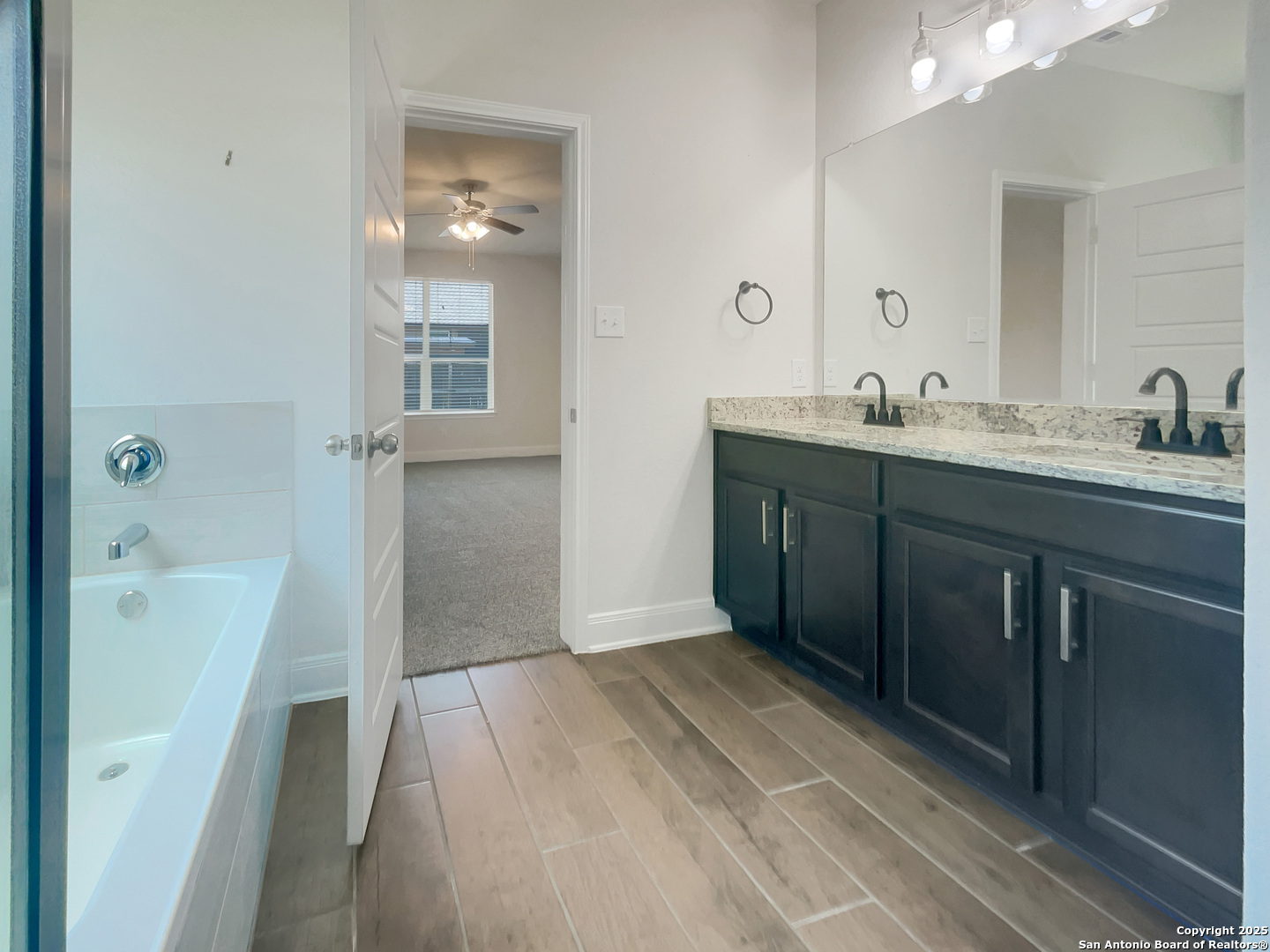 Welcome home! This home has Fresh Interior Paint, Partial flooring replacement in some areas. Discover a bright interior tied together with a neutral color palette. You'll love cooking in this kitchen, complete with a spacious center island and a sleek backsplash. The primary bathroom is fully equipped with a separate tub and shower, double sinks, and plenty of under sink storage. Take it easy in the fenced in back yard. The covered sitting area makes it great for BBQs! Don't miss this incredible opportunity. This home has been virtually staged to illustrate its potential.. 100-Day Home Warranty coverage available at closing
