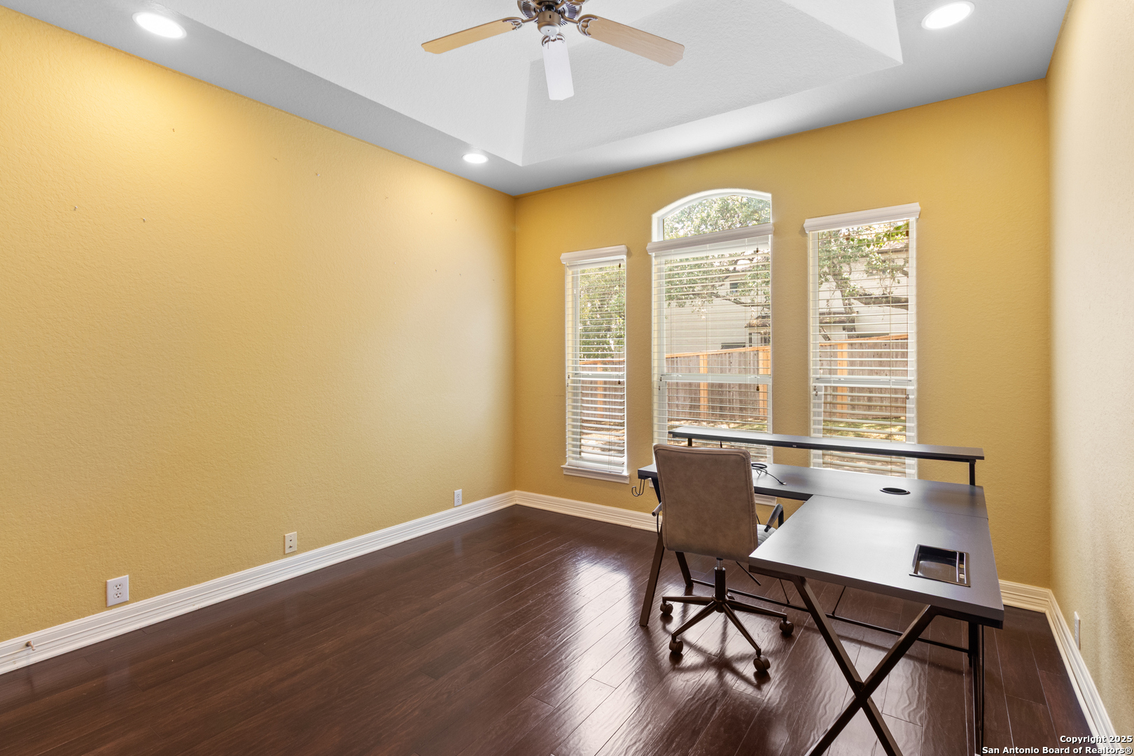 *OPEN HOUSE Saturday 10/25 12-3pm* Tucked inside the gated Mission Oaks community yet minutes from the Medical Center, this McNair Custom Home contains 3 spacious bedrooms, 2.5-baths and offers comfort, character, and convenience. Step inside to an open-concept layout that seamlessly connects the kitchen, dining, and living areas, highlighted by a striking two-story fireplace and chimney that serve as the heart of the home. The oversized primary suite is located on the main floor and features a luxurious en-suite bath with his & her sinks and an expansive walk-in closet. Upstairs, a roomy loft offers the perfect flex space, while a dedicated office downstairs can easily double as a fourth bedroom. The home also boast upgrades such as both AC Units replaced in 2023, New water heater installed in 2025This home offers easy access to the Wurzbach parkway and I-10, making it the perfect location for both convenience and airport accessibility. This villa-style retreat feels worlds away- your own private escape tucked inside the city. *seller offering a $2,000 paint credit*