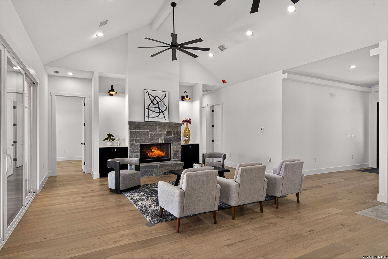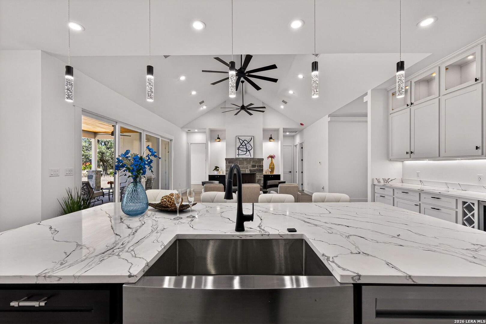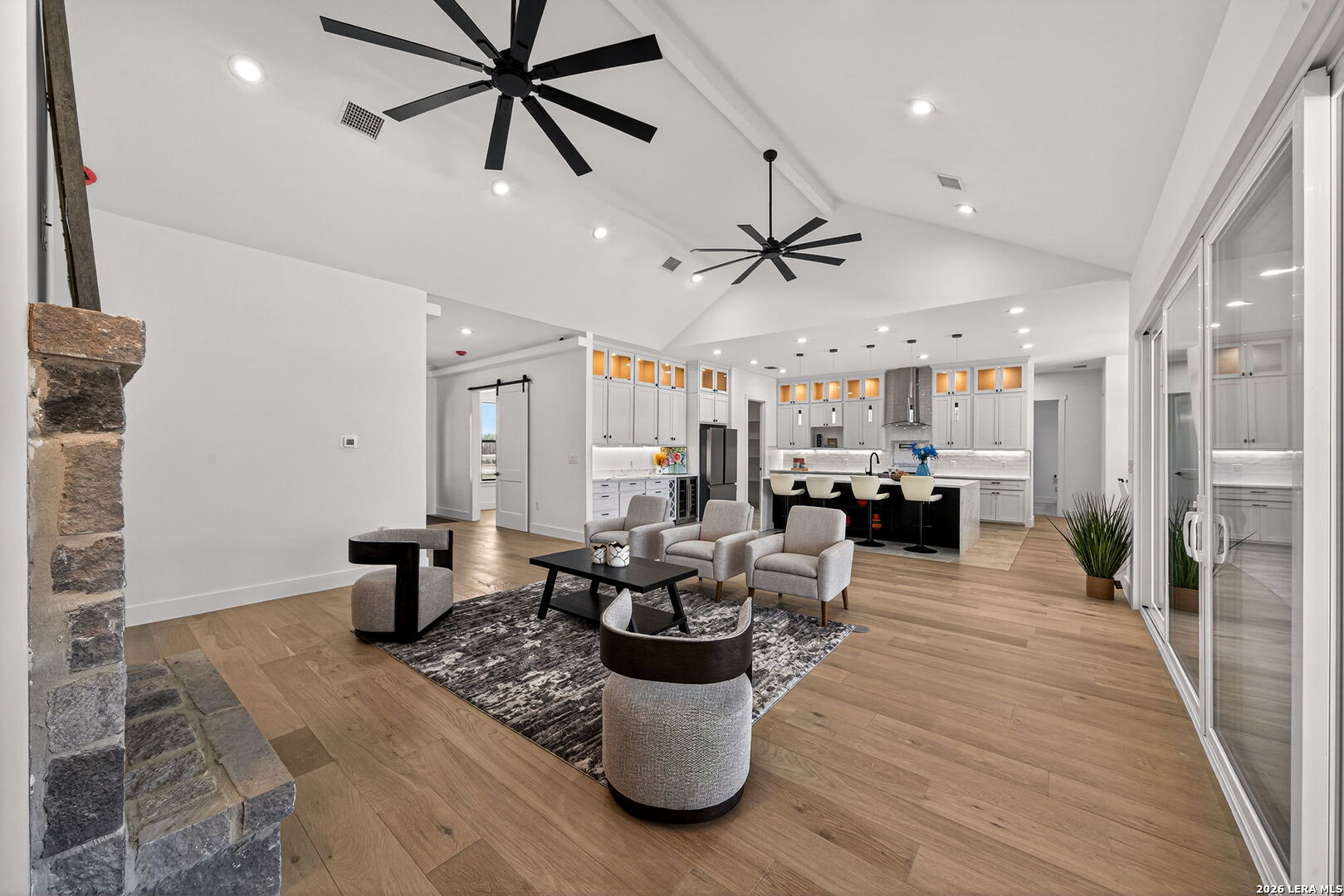 OPEN HOUSE March 21, 2026 from 1-4 pm. Welcome to your private slice of the Texas Hill Country in the highly sought-after Bridlegate community in Bandera, TX. This stunning new construction home offers 3,000 square feet of thoughtfully designed living space, featuring 4 bedrooms, 3.5 bathrooms, and breathtaking views of wide-open countryside. From the moment you arrive, the home's striking stone and stucco exterior, modern black accents, and inviting covered entry create unforgettable curb appeal. The beautifully designed xeriscape landscaping and modern stone walkway lead to elegant double doors that open into a bright and airy interior. Step inside to discover an open-concept floor plan with soaring vaulted ceilings, abundant natural light, and elegant finishes throughout. The spacious living room features a striking stone fireplace and large sliding glass doors that open to the covered patio, creating seamless indoor-outdoor living. The gourmet kitchen is designed to impress with quartz countertops, custom cabinetry, designer lighting, stainless steel appliances, and a large island with seating, perfect for gathering with family and friends. The luxurious primary suite offers a spa-inspired retreat with a freestanding soaking tub, oversized walk-in shower, dual vanities, and premium finishes. Secondary bedrooms provide generous space and flexibility for guests, office, or family needs. Step outside to the expansive covered back patio with cedar ceiling and ceiling fans, perfect for relaxing or entertaining while enjoying peaceful Hill Country views across your 2.1-acre homesite. Residents of Bridlegate enjoy incredible amenities, including gated entry, community pool, tennis courts, clubhouse, park, jogging trails, sports courts, volleyball court, and equestrian facilities with a horse arena. Whether you're looking for a peaceful retreat, a full-time residence, or a weekend escape, this exceptional home offers the perfect blend of luxury, space, and Hill Country lifestyle - all just a short drive from San Antonio.