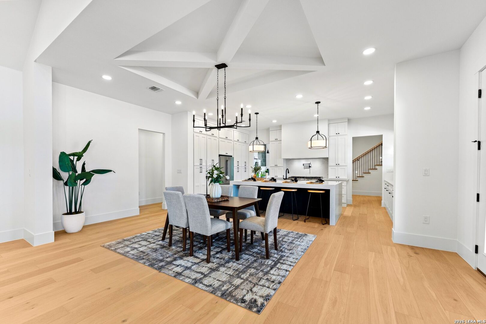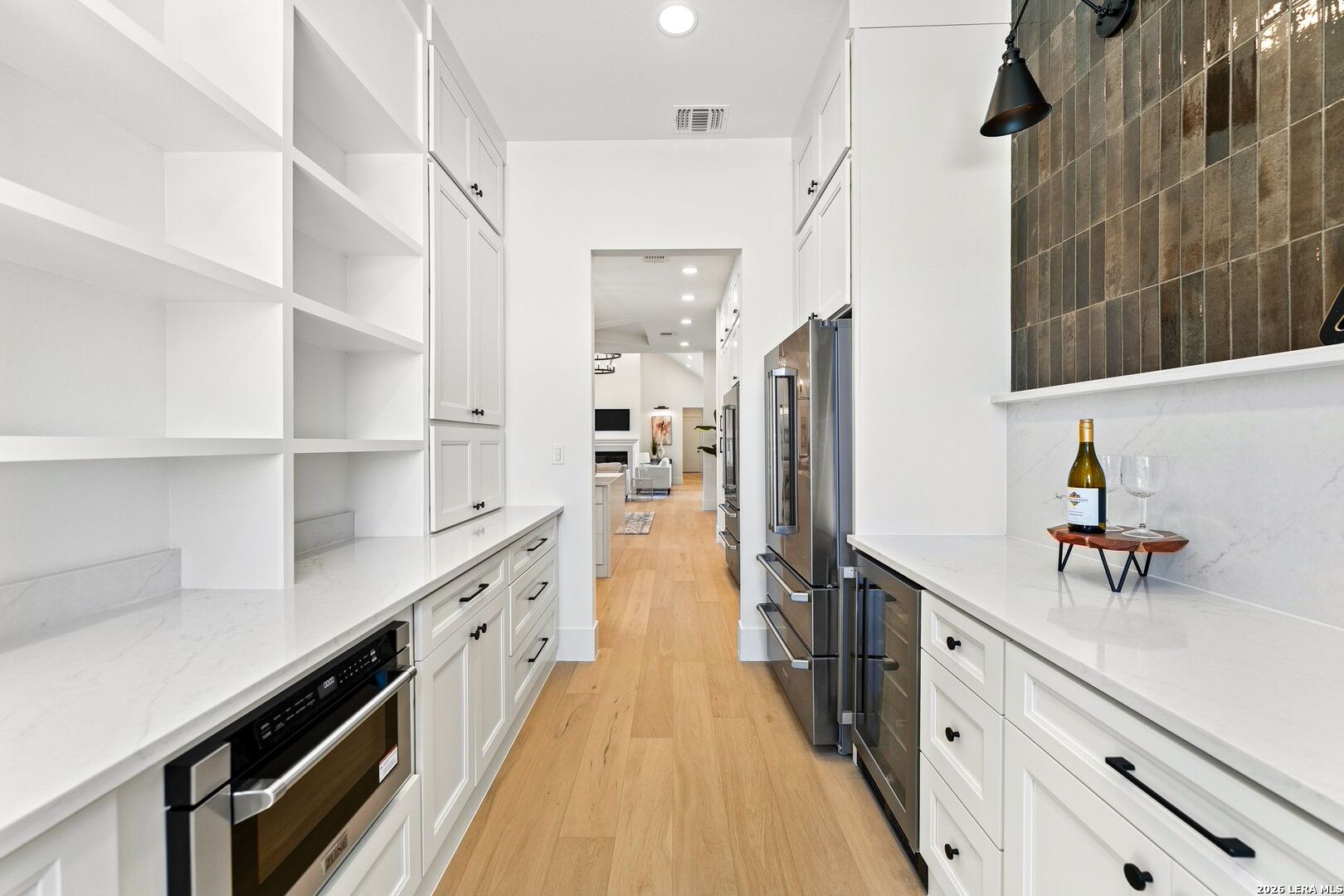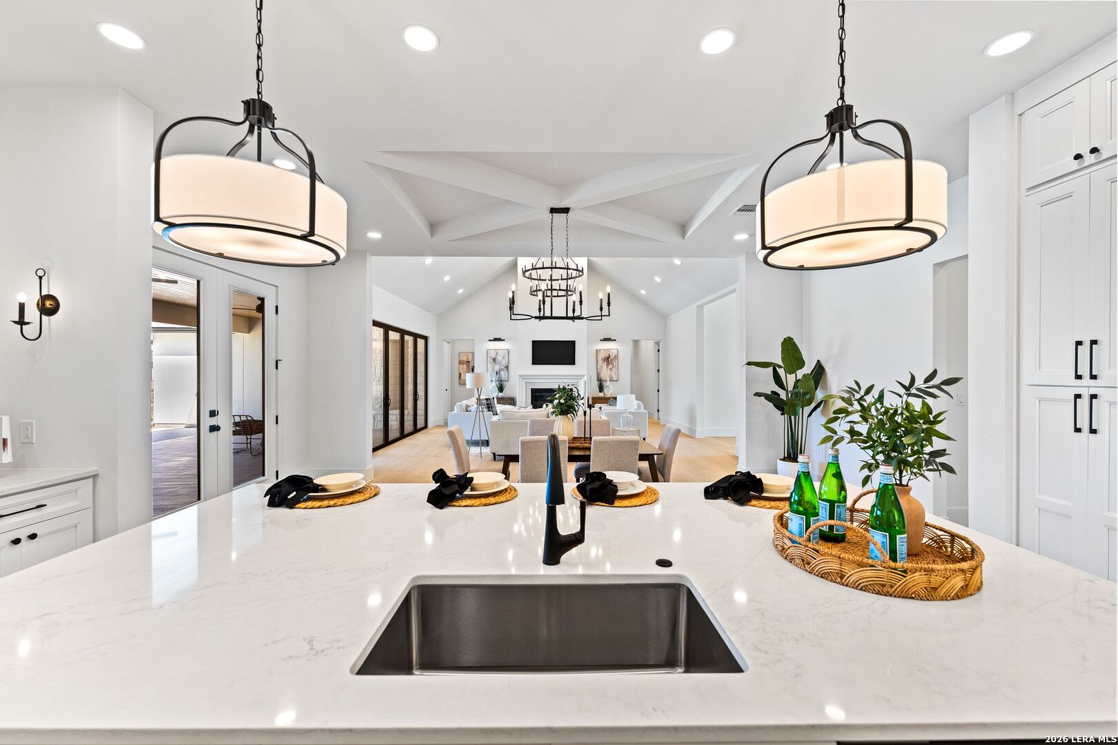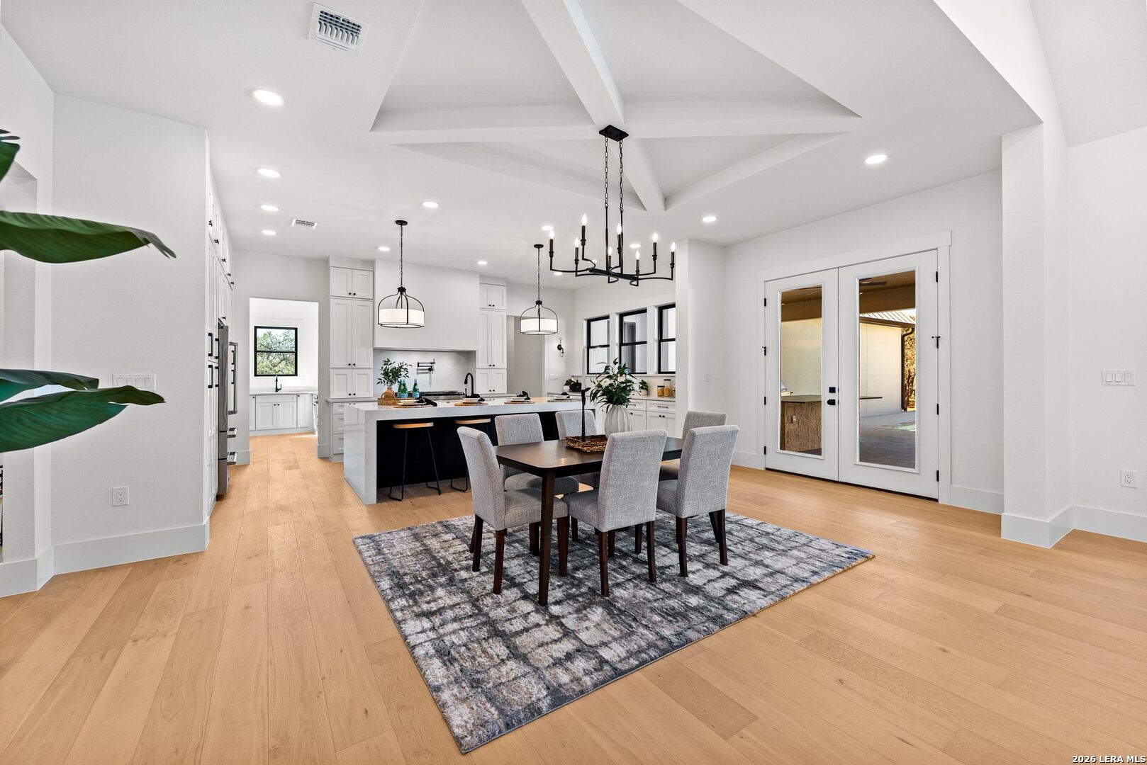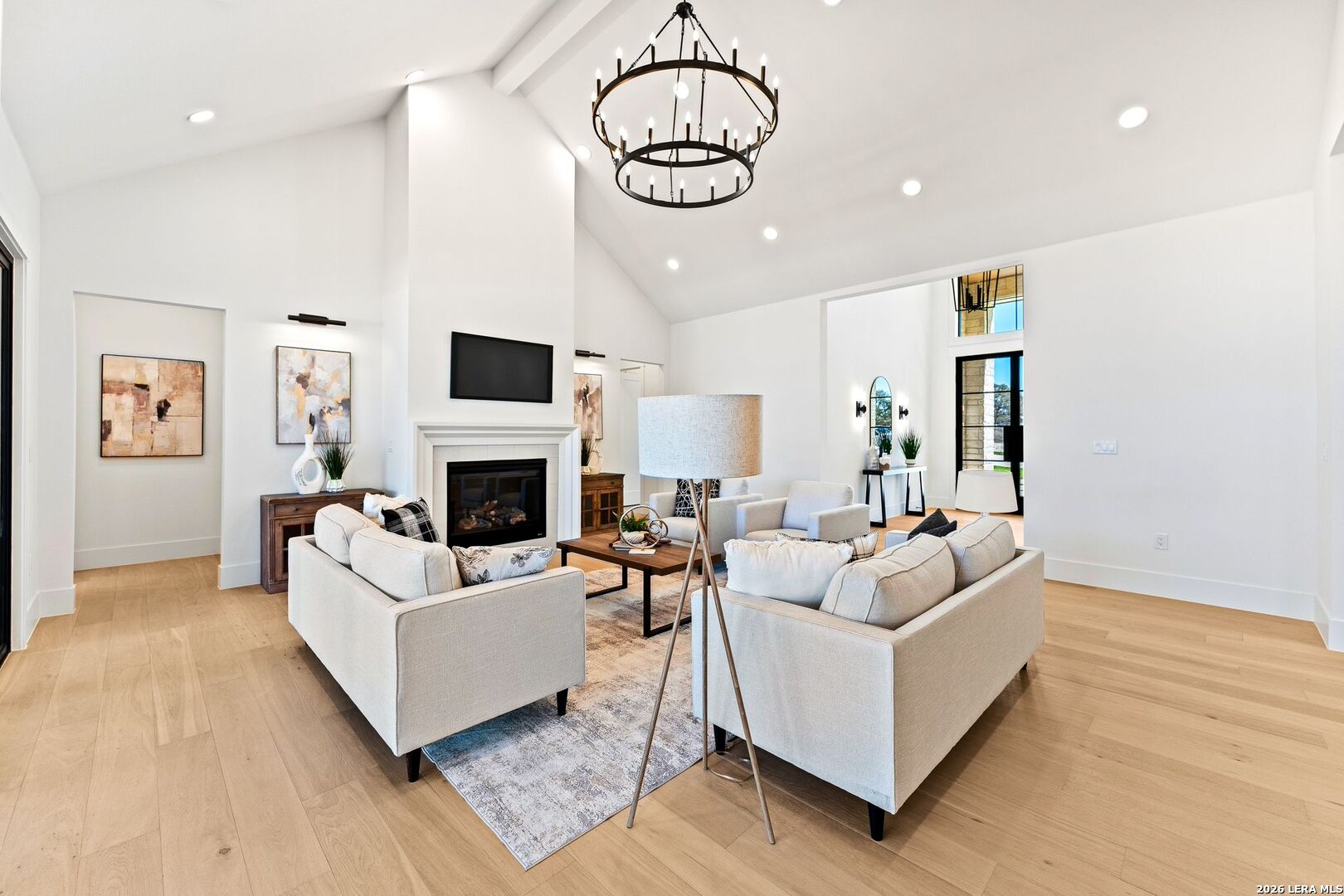 Featuring an exceptional new custom built home where timeless elegance meets modern convenience. Nestled on a beautifully landscaped 1.07 acre lot, this home boasts a striking stone and stucco traditional craftsmanship exterior paired with an impressive 3-car epoxy garage. The open floor plan features 4 bedrooms, 5 full baths, an office, upstairs loft/ media room, pool with spa and an outdoor full bath. Step inside the grand iron double doors, and be greeted by soaring high vaulted ceilings, and an abundance of natural light streaming through the 16-foot accordion doors connecting indoor/outdoor living space. The floor plan features spacious living areas around a propane fireplace, perfect for both relaxed living and elegant entertaining. The chef's dream kitchen offers an oversized island, sleek quartz waterfall countertops, off-white cabinetry providing exceptional storage with a Z-Line appliance package that includes a 48-inch 8 burner propane range, a custom built-in vent hood, refrigerator, and beverage fridge. The large butlers pantry adds even more function and style with an additional fridge, and ice maker. Retreat to a spa-like comfort with the primary suite featuring vaulted ceilings, a large custom walk-in closet that seamlessly connects to the laundry room for ultimate convenience. Upstairs is a large loft/ media room with a full bathroom. Outside, enjoy an entertainer's paradise with a large covered patio, full outdoor kitchen with a wood burning fireplace and lush landscaping surrounding a swimming pool and hot tub, supported by outdoor sprinkler systems in the front and backyards. Practical luxury is at the heart of this home with energy-efficient foam insulation in all the exterior walls and ceilings including the garage with a 240-vault EV charger outlet, two AC units, and a grand roundabout driveway- all working together to maximize comfort and efficiency. This property is located within The Belle Oaks Ranch subdivision, where you'll enjoy a community pool, tennis court, and clubhouse. Situated within highly rated schools in Comal ISD, this home is a must-see in person-