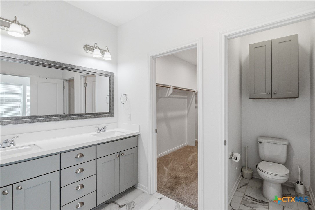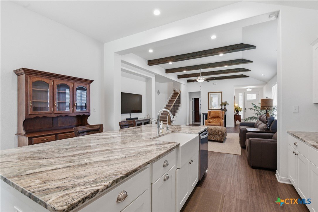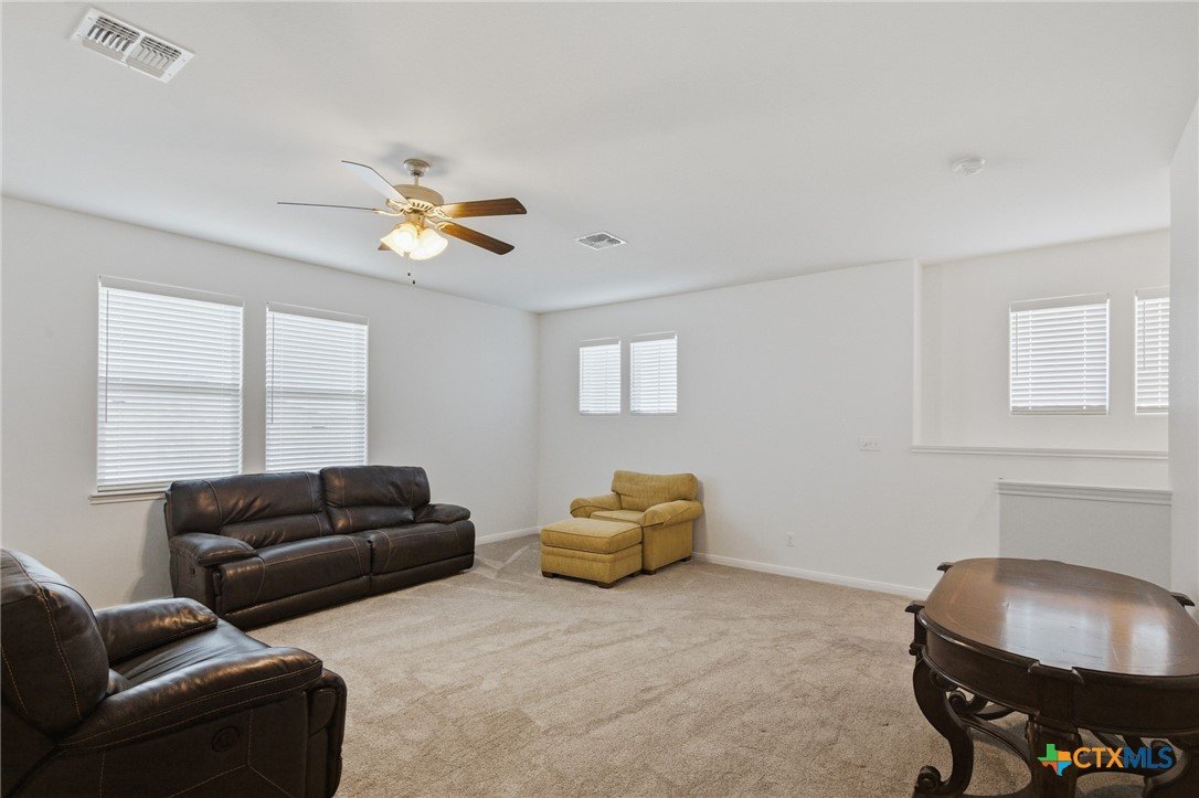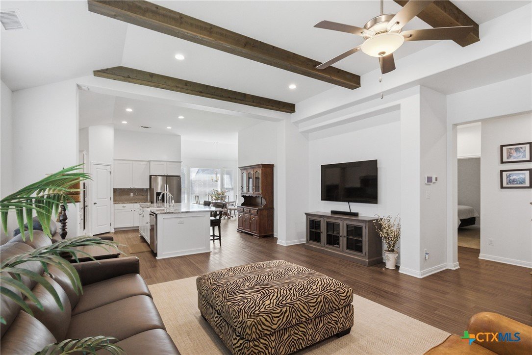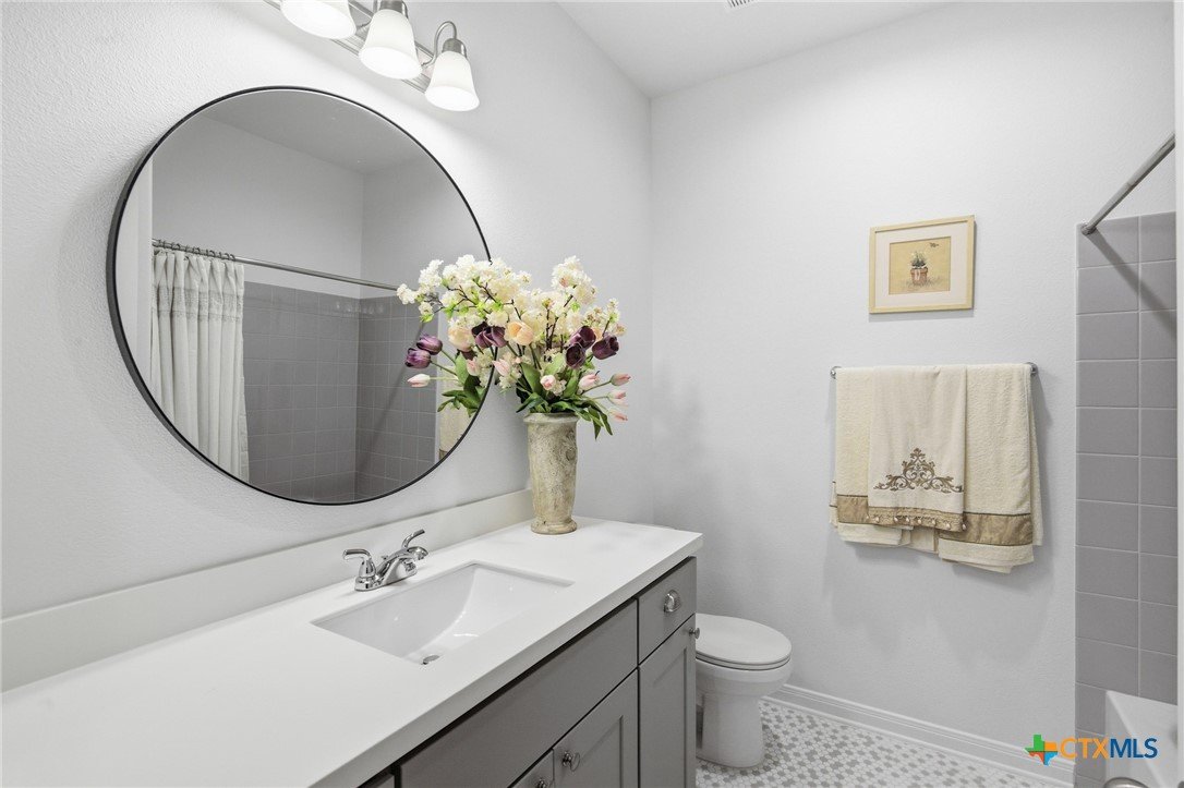 Hill Country elegance with room to live, relax, and entertain! This Terra Vista standout showcases an open-concept design with a spacious family room and a beautifully upgraded kitchen featuring solid wood cabinetry, premium countertops, and modern appliances. The private primary suite delivers spa-like comfort with a Euro walk-in shower and an oversized closet. Upstairs, a versatile second living area with a half bath adds flexibility for guests, work, or play. Style, space, and location—this one checks all the boxes! Don't forget to check out the Zillow Showcase for this home and 3D Virtual tour!