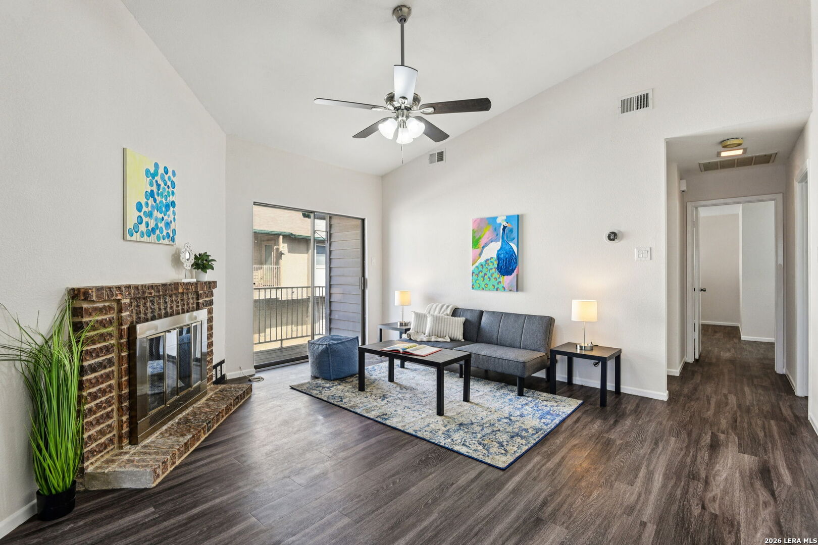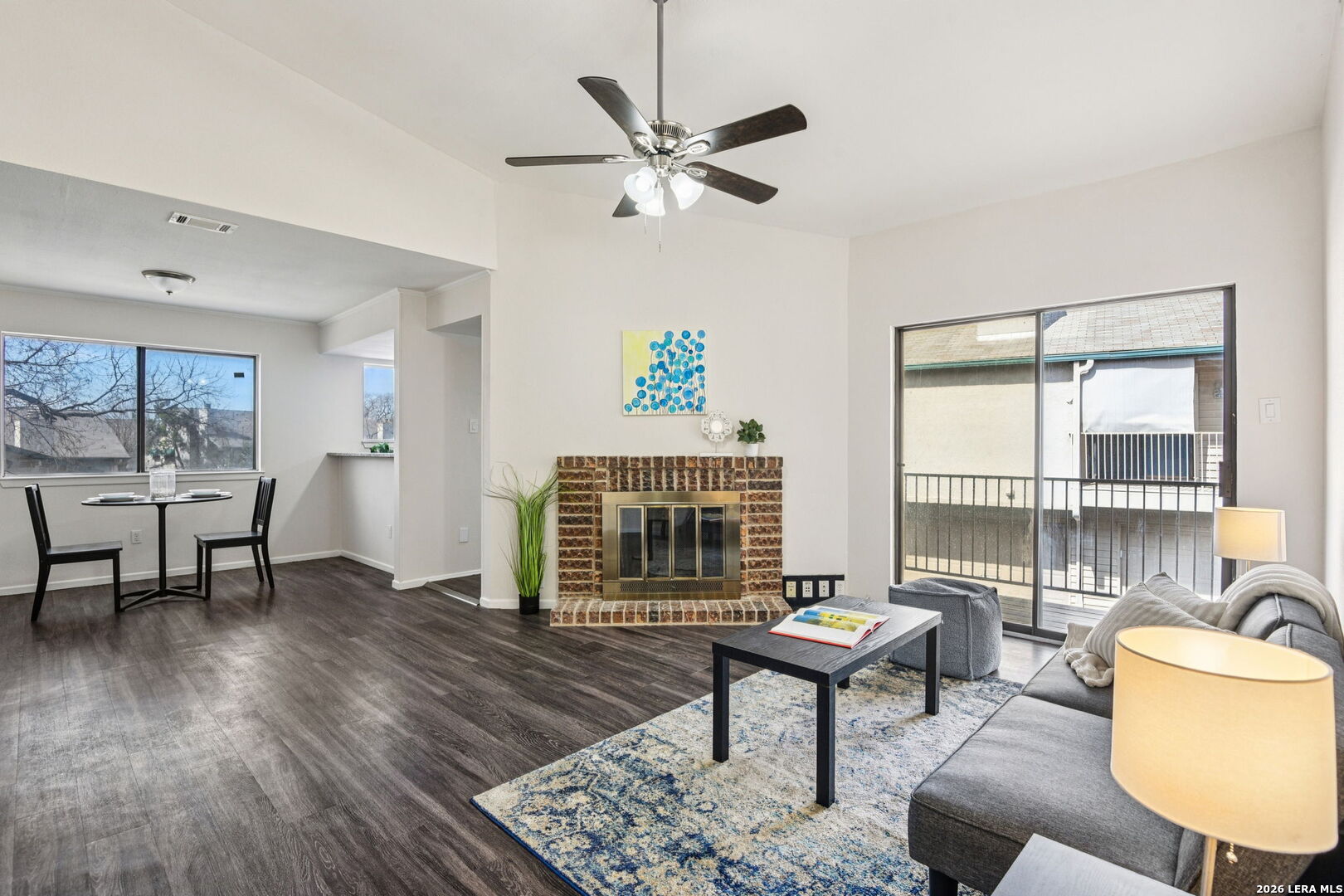 Move right into this completely renovated home with an open floor plan, updated kitchen with stainless steel appliances (including refrigerator), and a cozy fireplace perfect for relaxing evenings. The primary suite features a walk-in closet and private bath for added comfort. Step out onto your private balcony, or head over to the community pool, hot tub, and clubhouse to unwind. With a brand-new A/C system, new appliances, and water included in rent, this home is both modern and easy to maintain-perfect for today's lifestyle. Located in the desirable gated community of Northern Hills Country Village Condominium Complex. Located on 12610 Uhr Lane. Once you enter gate, you will use road to access to #349 Harmony Court.