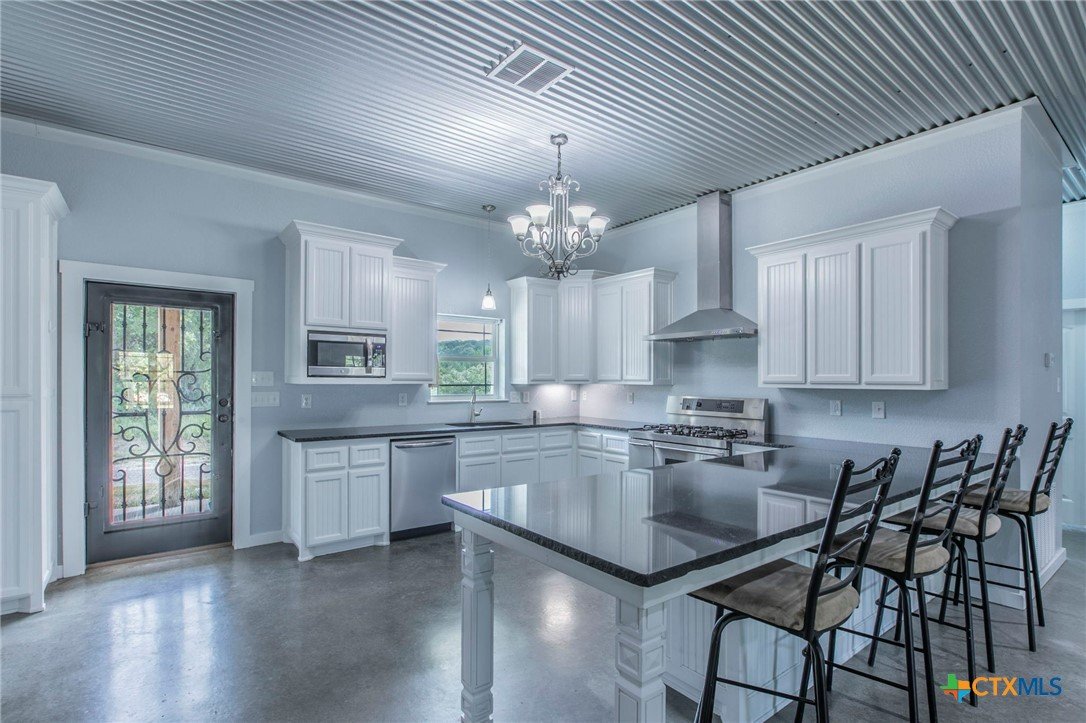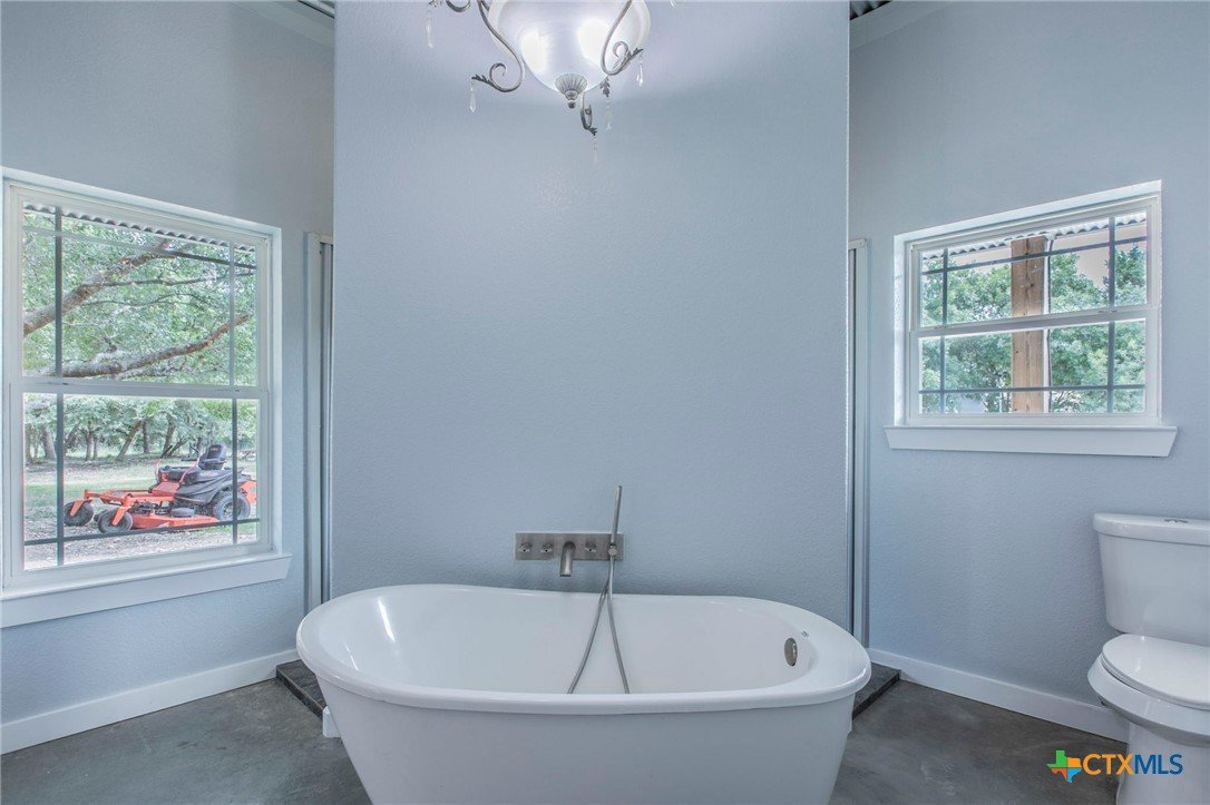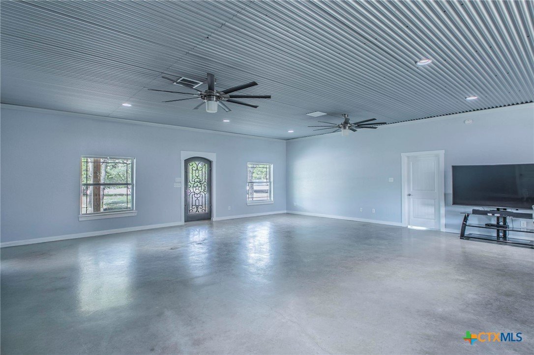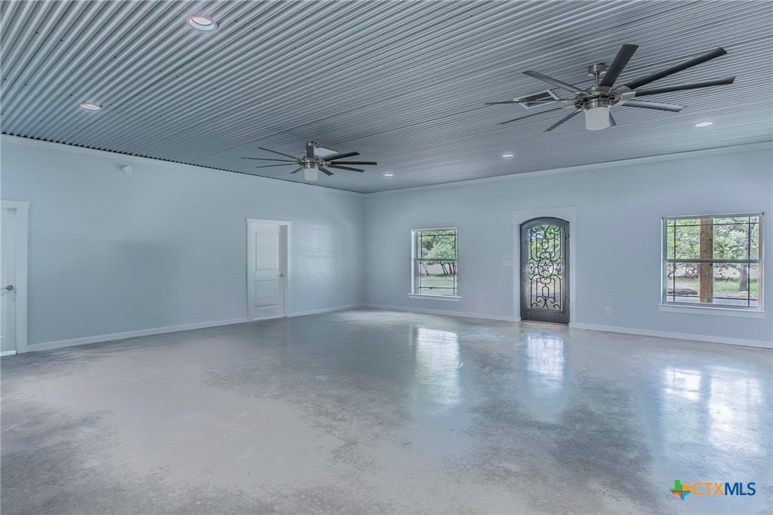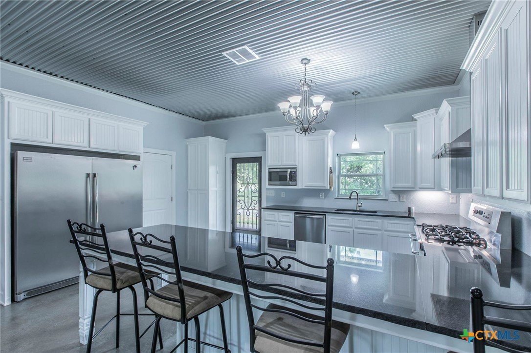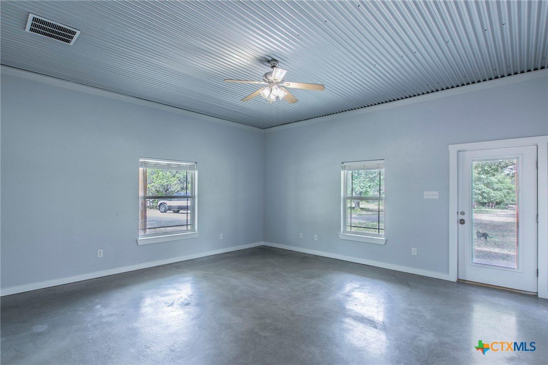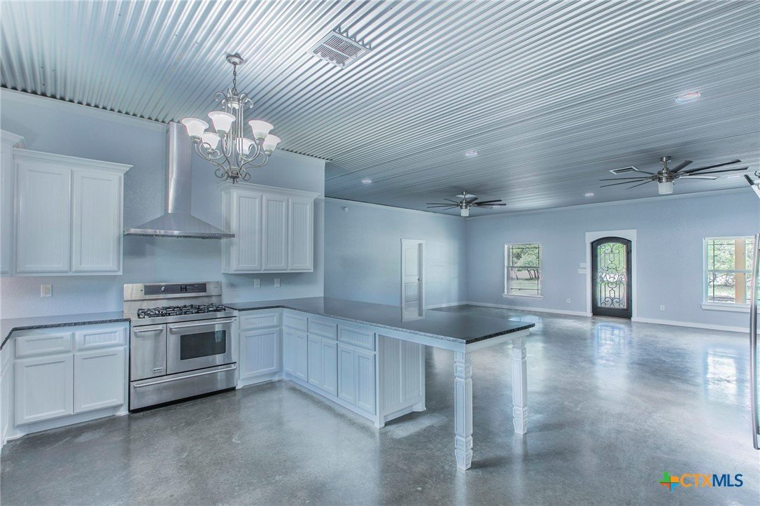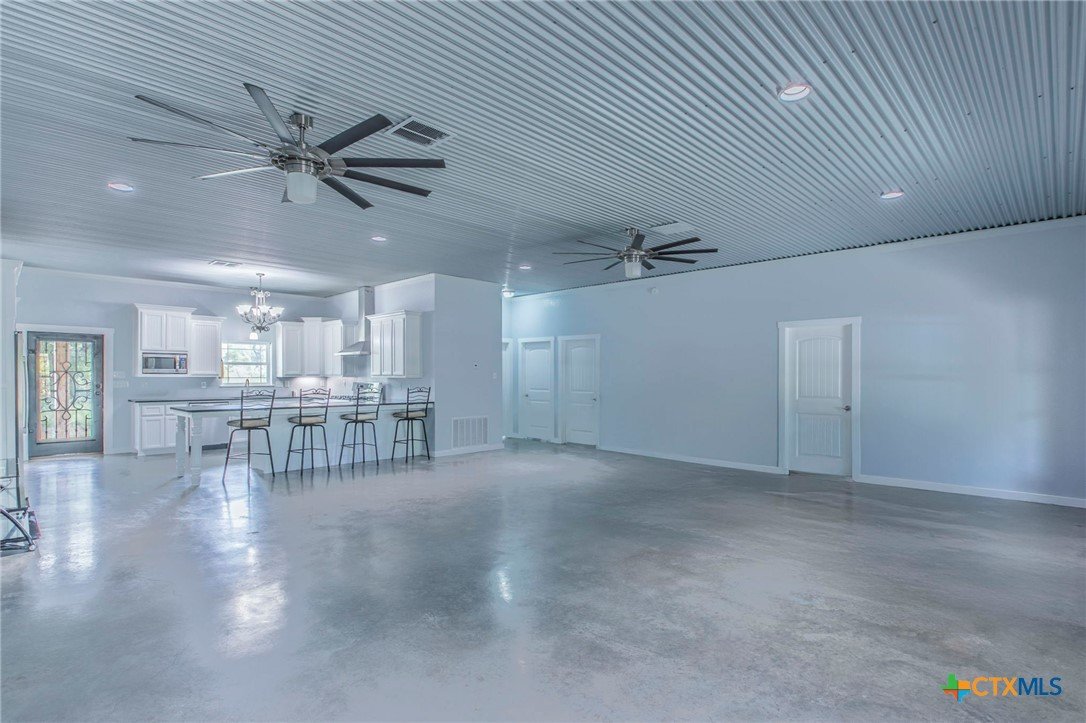 Modern 4BR 2BA barndominium in Gatesville, TX with 2400 sq ft of open living space. Features 10 foot ceilings, concrete floors, granite countertops, large fridge freezer, and pantry. Enjoy a spacious laundry room and 1,600 sq ft wrap-around porch surrounded by mature trees. Stylish, functional, and perfect for peaceful country living.