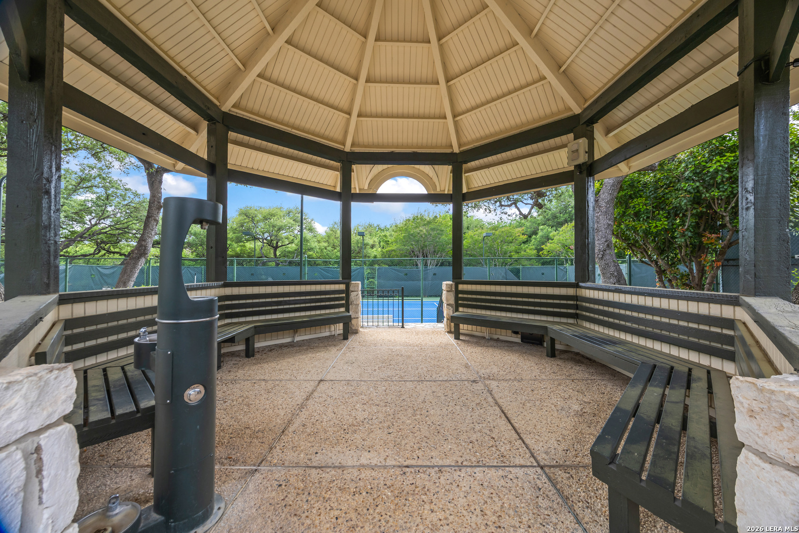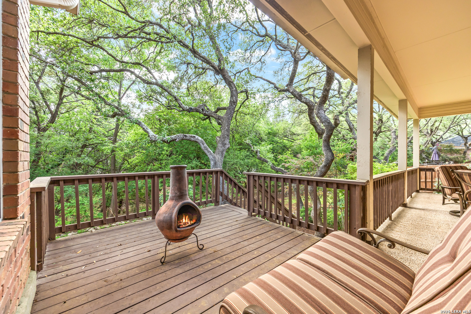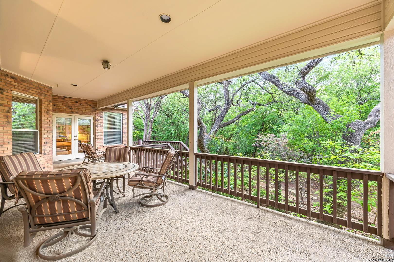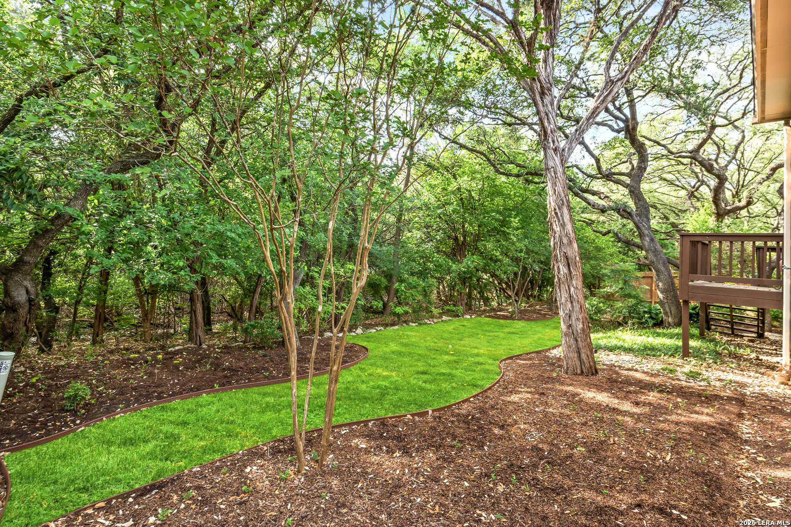 Discover this LUXURY one-story home in prestigious Inwood, one of San Antonio's most sought-after guard-gated communities. Nestled on a quiet street and backing to a serene greenbelt, this 1/4-acre property offers a private, park-like setting with mature trees-perfect for relaxing or entertaining. Enjoy outdoor living with a covered back patio and extended deck. This well-maintained home in pristine condition features an open floor plan with two spacious living areas, a formal dining room, and an eat-in kitchen, ideal for both everyday living and hosting guests. The updated kitchen boasts granite countertops, a stylish backsplash, freshly painted cabinetry, travertine tile, and modern updates. Elegant details such as crown molding and gorgeous wood floors flow throughout the home, with plush carpet in bedrooms (only 2 years old). The inviting living room includes a gas fireplace, adding warmth and charm. The primary suite retreat offers architectural details with a tray ceiling, private deck access and a recently renovated spa-like ensuite bathroom, creating a peaceful escape. Major system updates provide peace of mind, including a roof (approx. 5 years old), water heaters (3 years old), and HVAC system (3 years or newer), plus a refurbished water softener (2024). Located in guard gated Inwood, this home is minutes from top-rated NEISD schools, premier shopping, dining, and medical facilities, making it the perfect blend of luxury, comfort, and convenience.