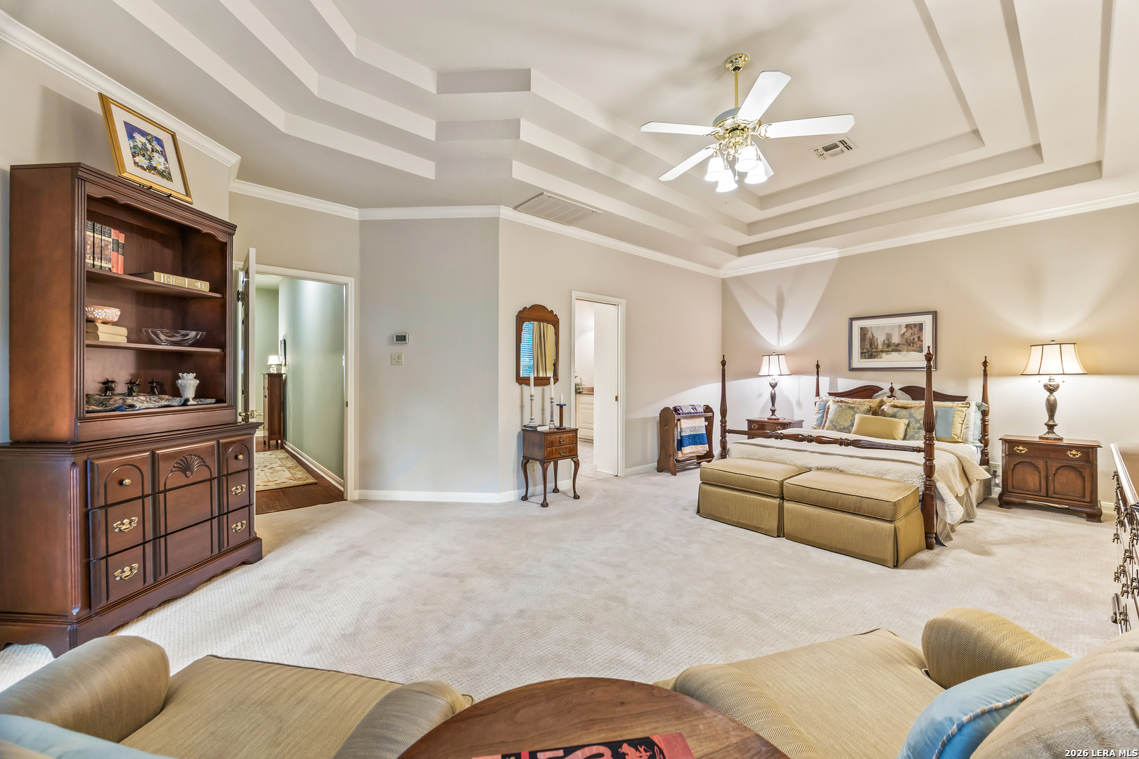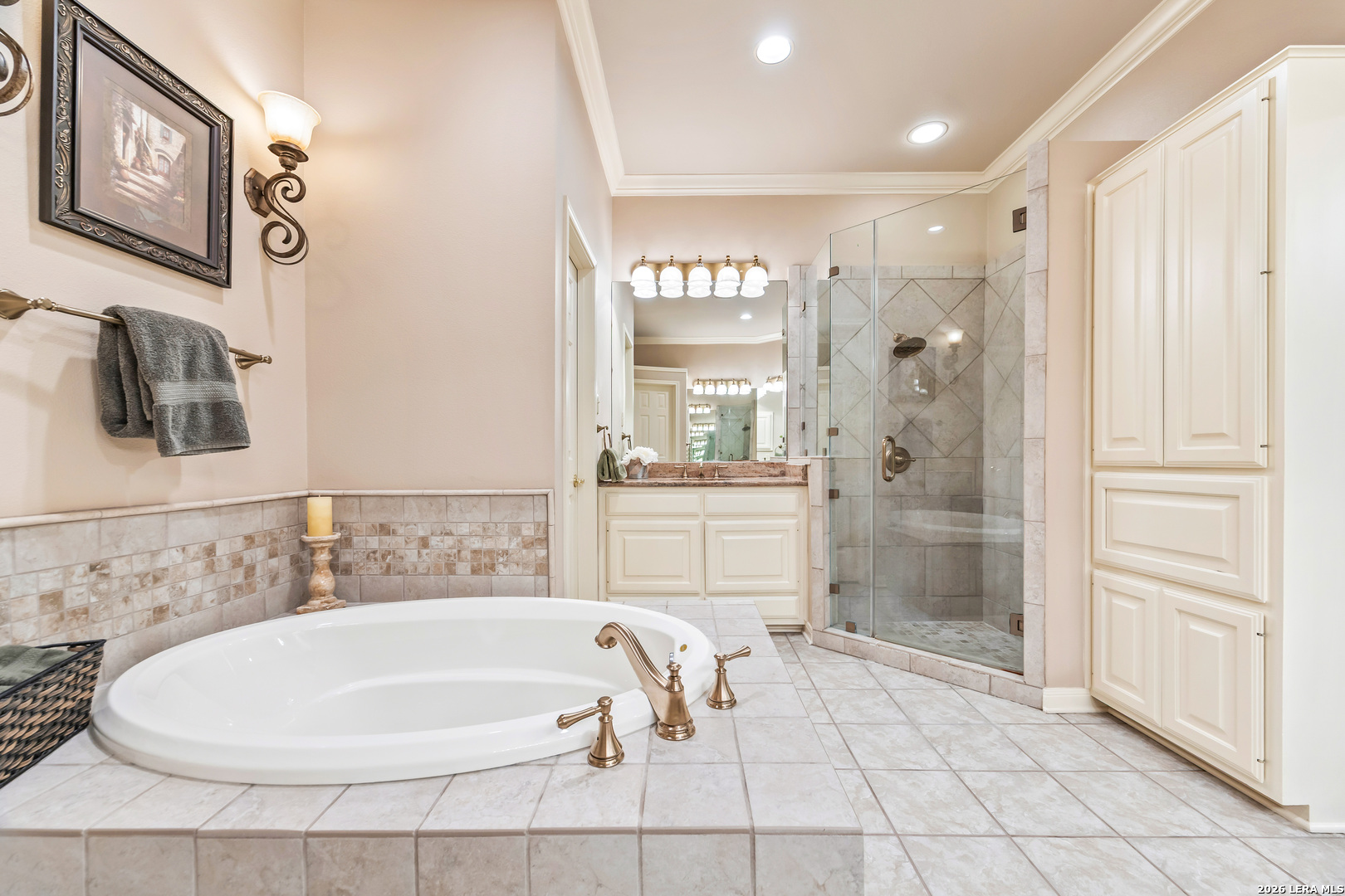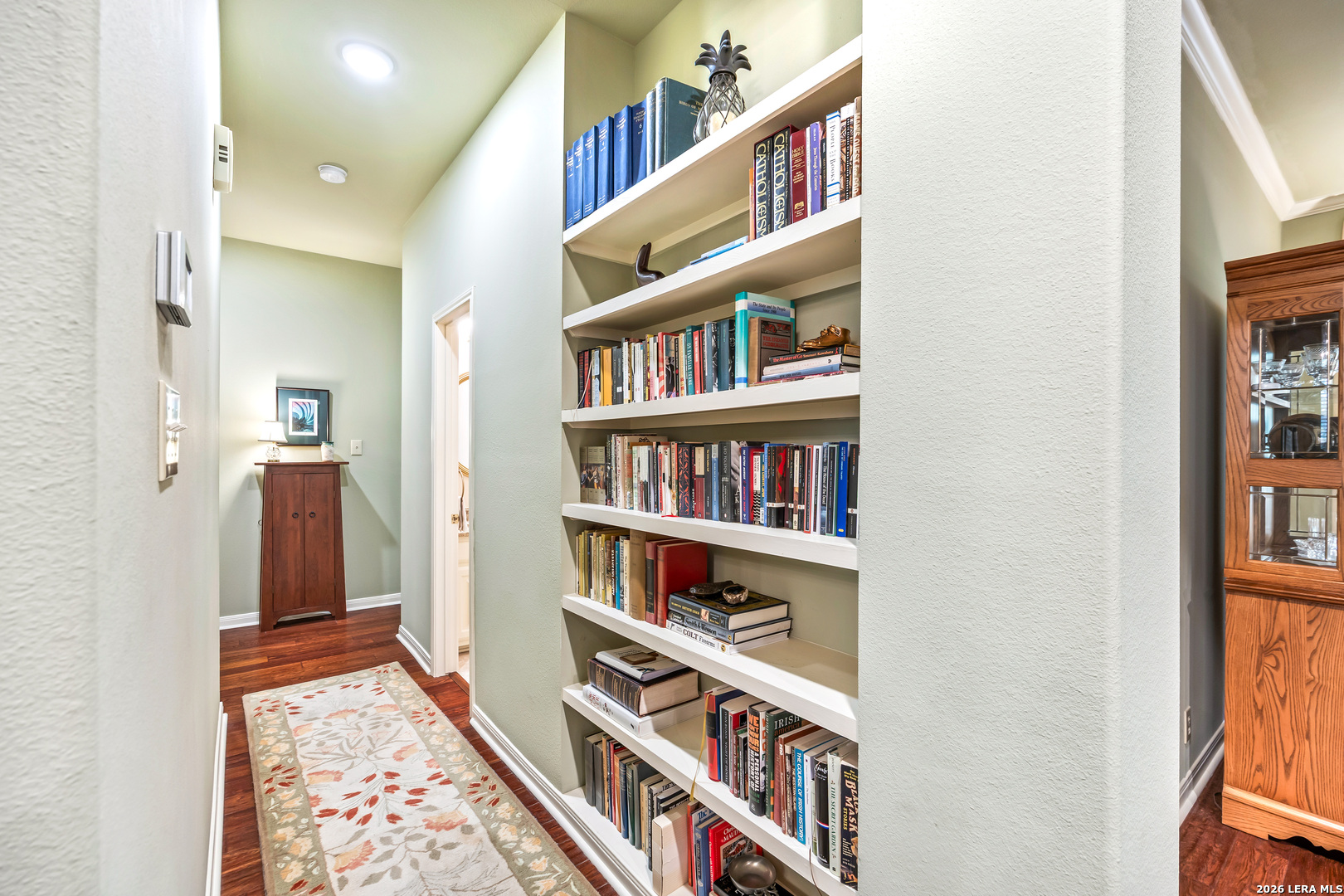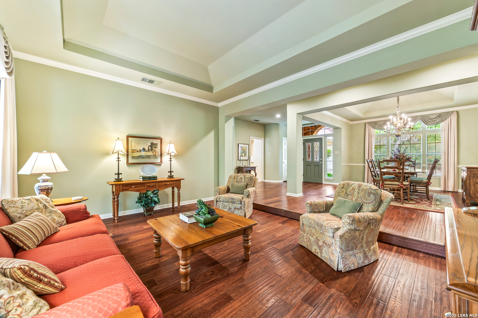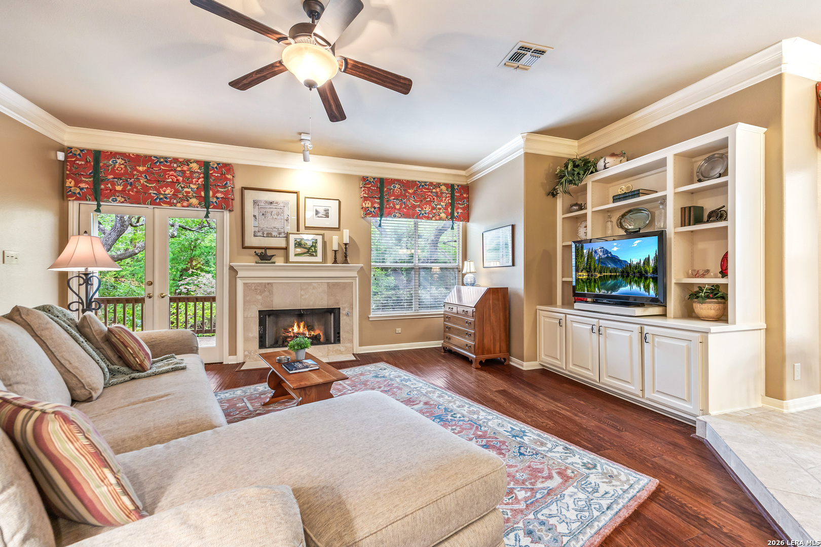 Discover this LUXURY one-story home in prestigious Inwood, one of San Antonio's most sought-after guard-gated communities. Nestled on a quiet street and backing to a serene greenbelt, this 1/4-acre property offers a private, park-like setting with mature trees-perfect for relaxing or entertaining. Enjoy outdoor living with a covered back patio and extended deck. This well-maintained home in pristine condition features an open floor plan with two spacious living areas, a formal dining room, and an eat-in kitchen, ideal for both everyday living and hosting guests. The updated kitchen boasts granite countertops, a stylish backsplash, freshly painted cabinetry, travertine tile, and modern updates. Elegant details such as crown molding and gorgeous wood floors flow throughout the home, with plush carpet in bedrooms (only 2 years old). The inviting living room includes a gas fireplace, adding warmth and charm. The primary suite retreat offers architectural details with a tray ceiling, private deck access and a recently renovated spa-like ensuite bathroom, creating a peaceful escape. Major system updates provide peace of mind, including a roof (approx. 5 years old), water heaters (3 years old), and HVAC system (3 years or newer), plus a refurbished water softener (2024). Located in guard gated Inwood, this home is minutes from top-rated NEISD schools, premier shopping, dining, and medical facilities, making it the perfect blend of luxury, comfort, and convenience.
