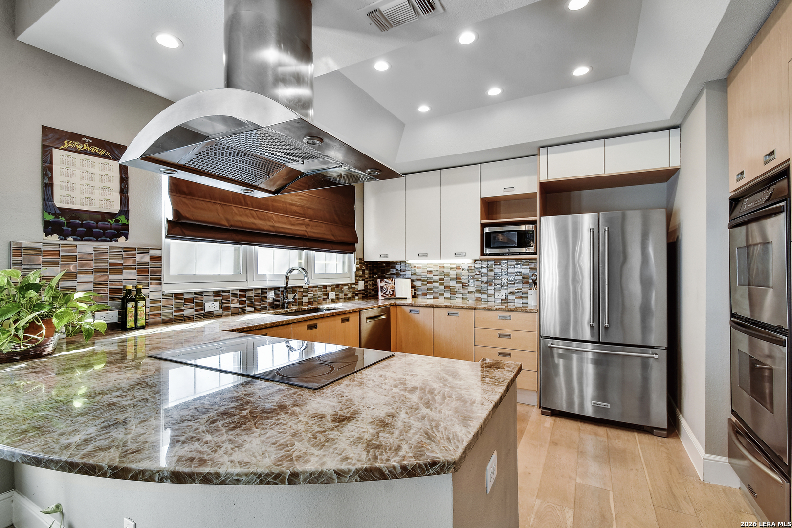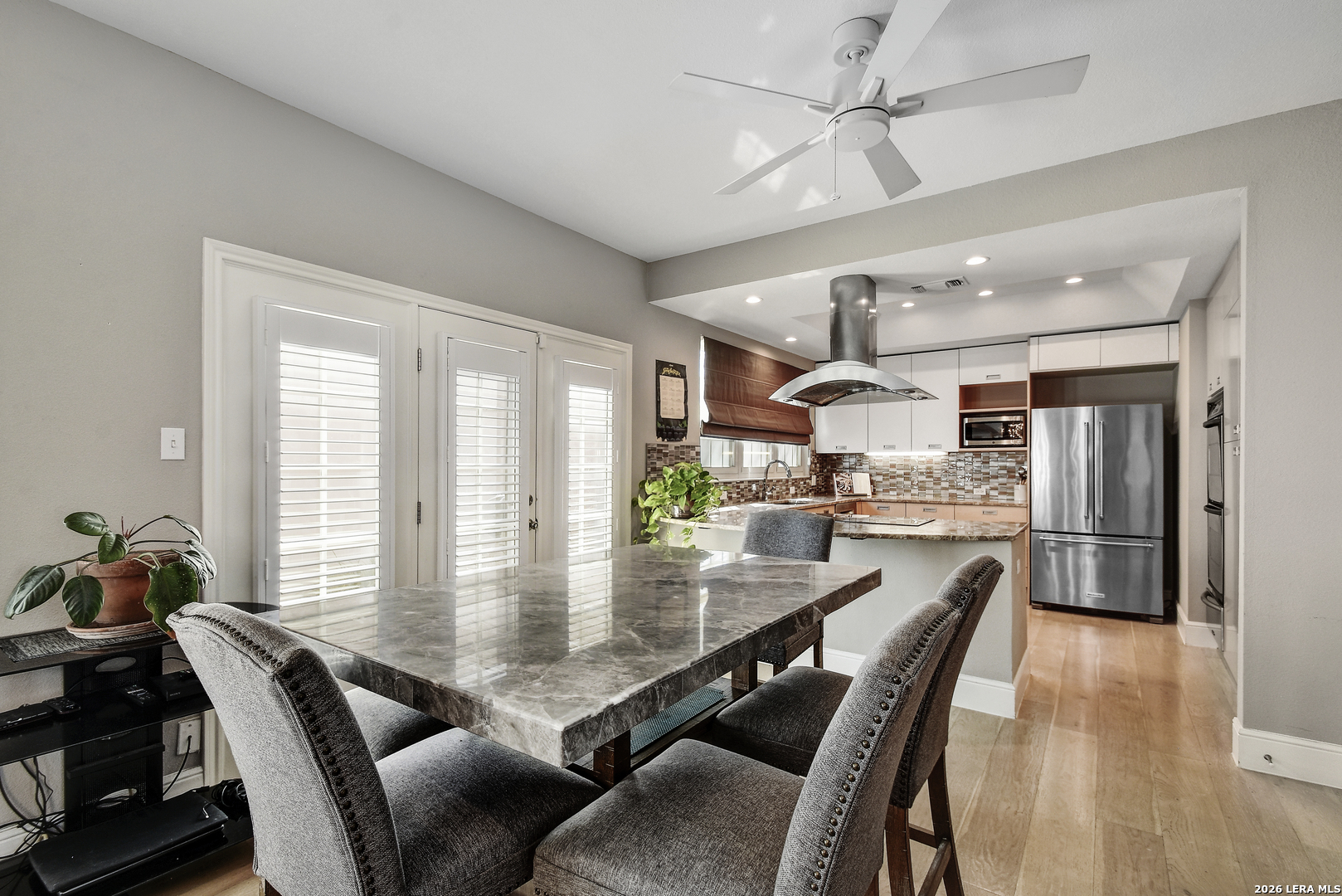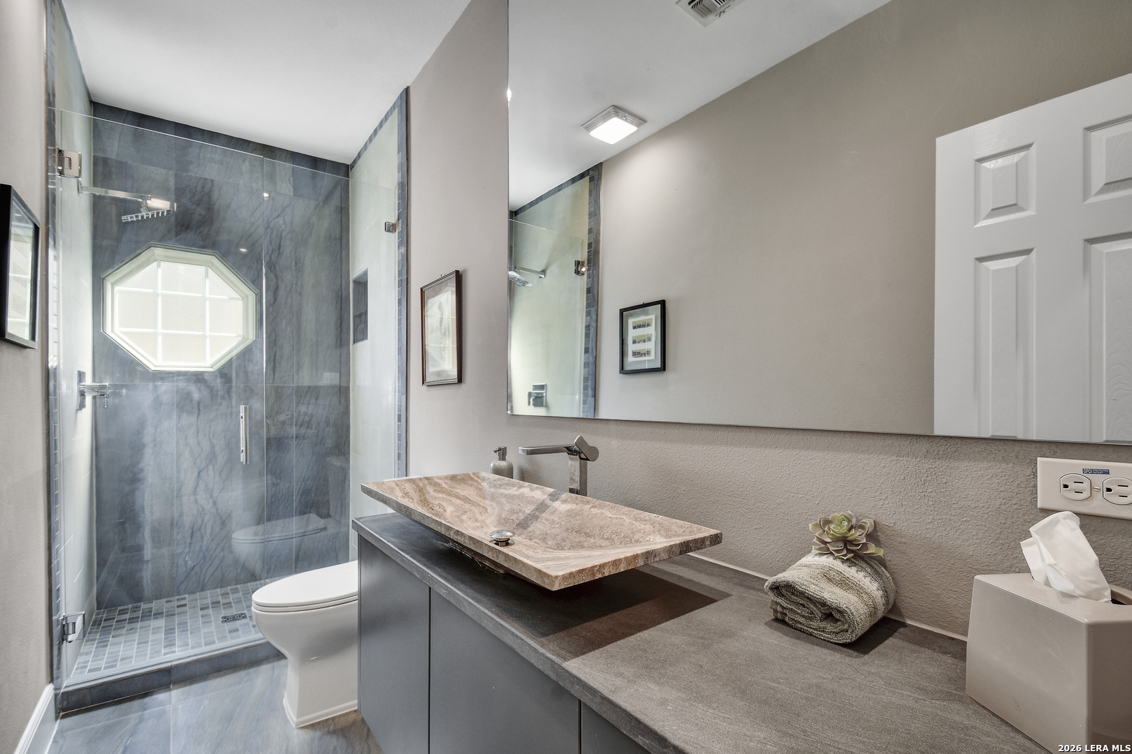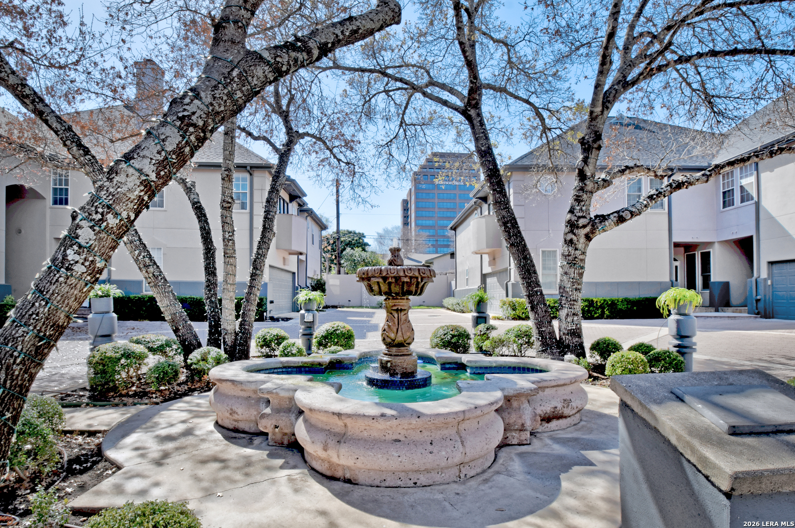 OPEN HOUSE Sat 3/28 from 12-2 pm. Experience elevated living in this exquisite townhouse, tucked inside the exclusive gated community of St. Charles. This private urban retreat blends sophistication, comfort, and effortless style in one of the city's most desirable locations. From the moment you step inside, you're greeted by soaring ceilings, abundant natural light, and a striking floor-to-ceiling fireplace that sets the tone for the home's refined design. The chef's kitchen is equally impressive, featuring custom contemporary cabinetry, quartzite countertops, double ovens, a warming drawer, and an induction cooktop perfect for intimate evenings and entertaining. Spanning nearly 4,000 square feet, this residence offers a spacious and versatile layout with 3 bedrooms and 4.5 bathrooms, including a convenient first-floor guest room. The primary suite is a true sanctuary, complete with its own fireplace, a private balcony overlooking mature oak trees, and a spa-inspired bath with a freestanding soaking tub, oversized walk-in shower, and double vanity. A sleek modern staircase leads to the third level, where multiple flex spaces and a loft provide endless possibilities from a home office or gym to a media or creative studio. Enjoy exclusive community amenities, including a private pool, controlled access, and concierge trash service, all just minutes from the airport, Alamo Heights, and the vibrant Broadway Corridor.