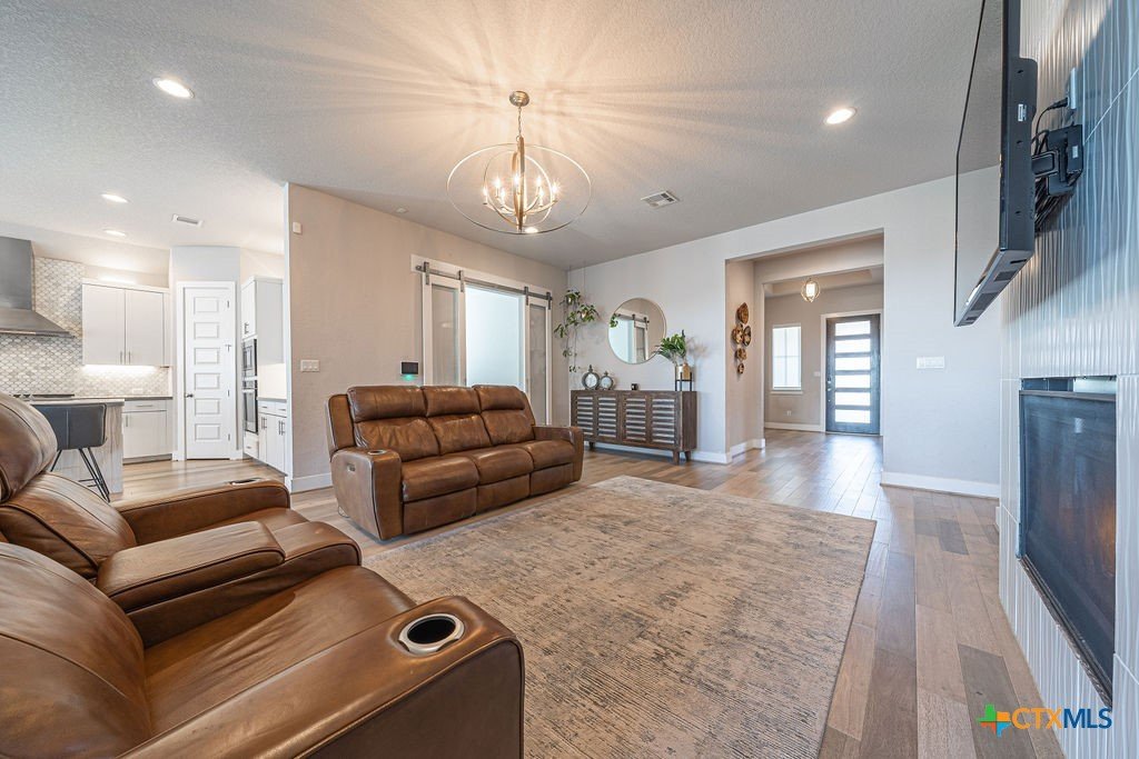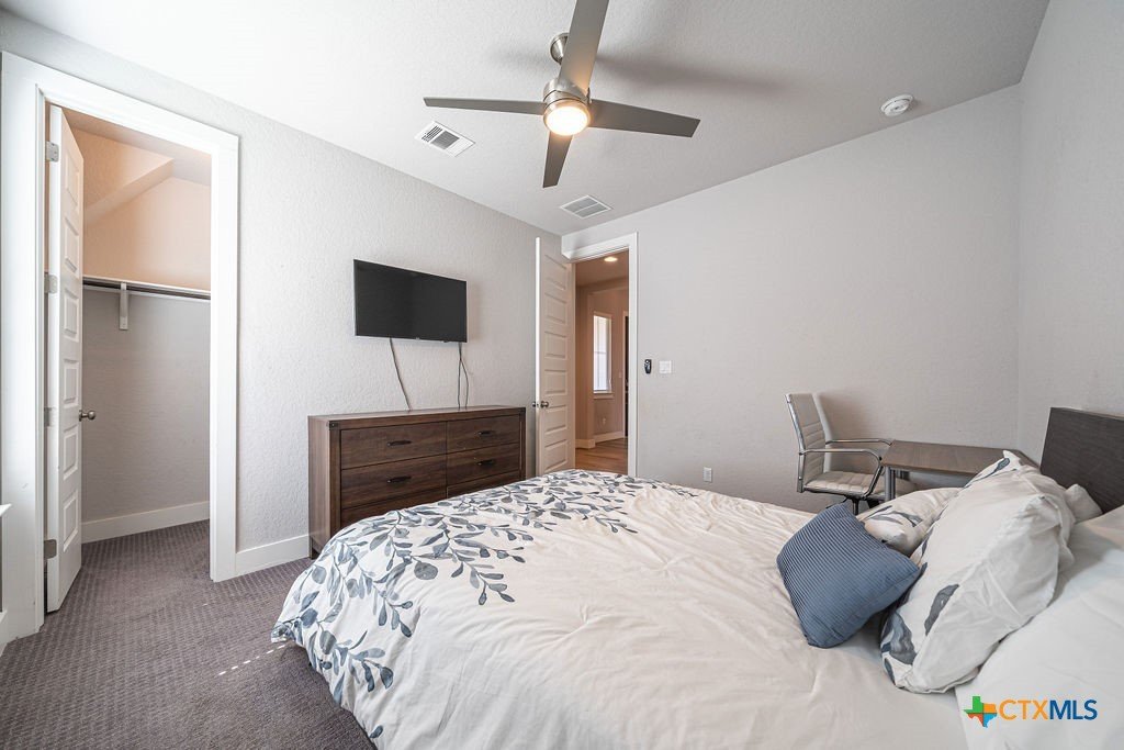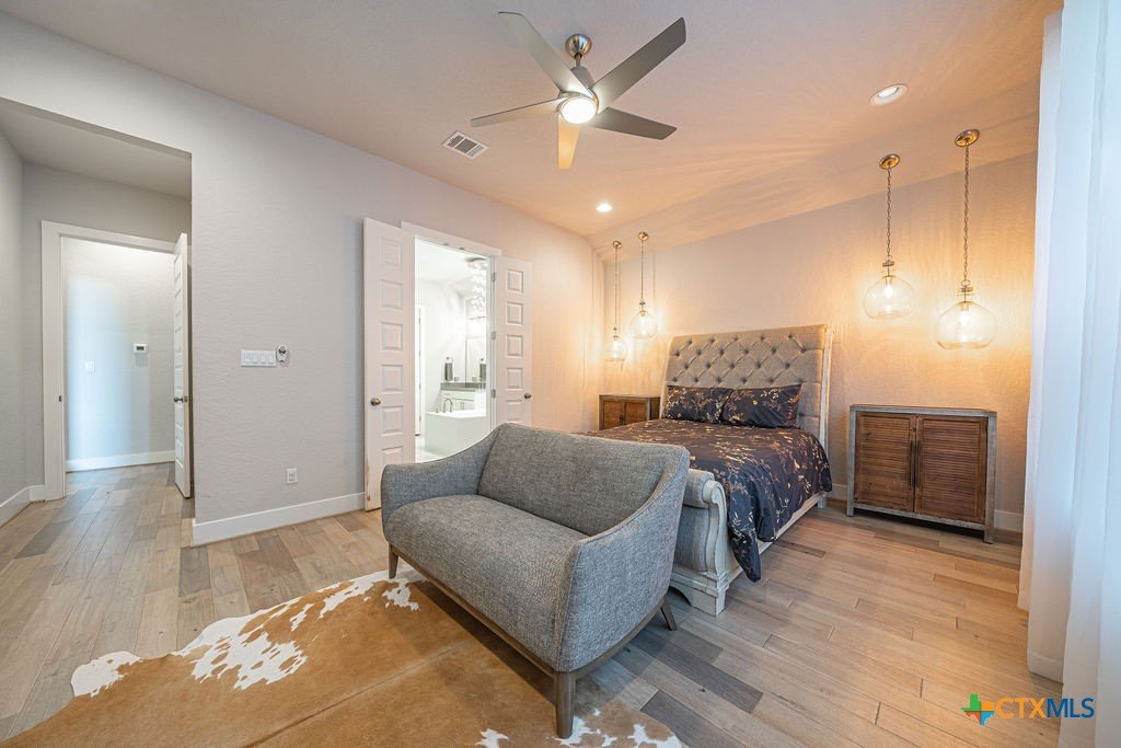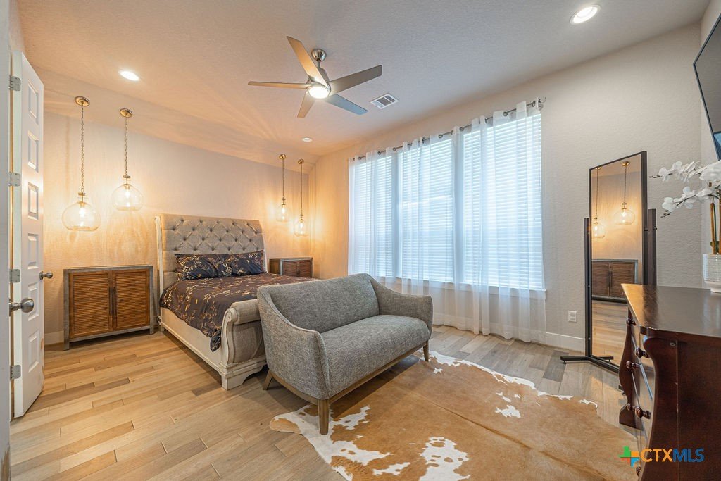 This stunning 4 Bedroom 5 Full bath Home comes fully furnished and ready to move in! Featuring an attached casita with a bedroom, bathroom, living room and kitchenette, as well a private entrance. There are several luxury upgrades to this beautiful home that you won't find elsewhere like an oversized sliding glass door that opens all the way up transforming the Livingroom into an indoor-outdoor entertaining space. This feature accents the open floorplan, perfect for entertaining. The dining room features a beautiful view of the hill country stretching as far as the eye can see. There are upgraded and custom light fixtures throughout the home giving a sense of elegance. There is an office space off of the Livingroom separate from the bedrooms. There is a media room upstairs with a full bathroom and walk in closet that could be used as a 5th bedroom. This home sits on an oversized lot across the street from a beautiful park with a playground and gazebo. All bedrooms are located on the main level.
