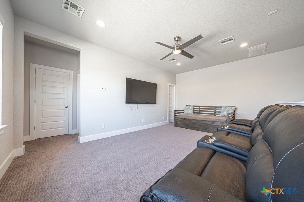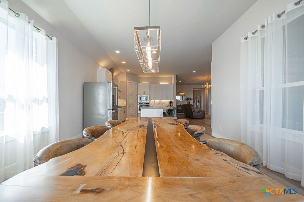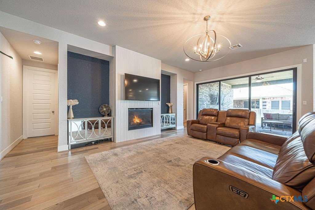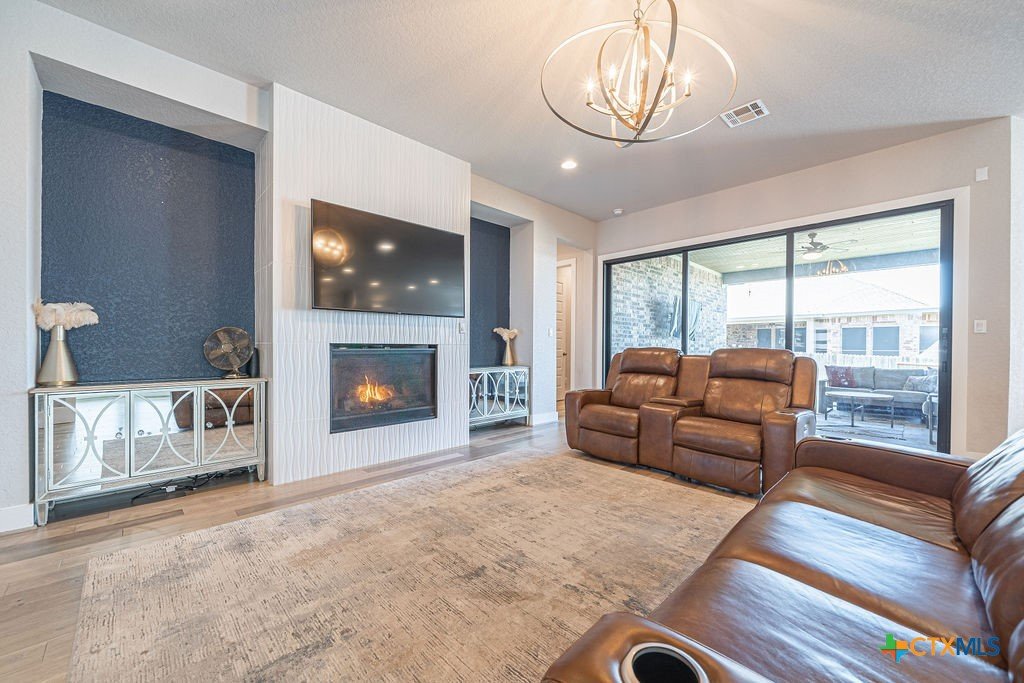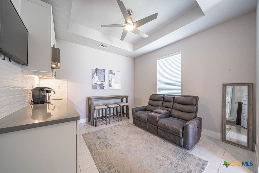 This stunning 4 Bedroom 5 Full bath Home comes fully furnished and ready to move in! Featuring an attached casita with a bedroom, bathroom, living room and kitchenette, as well a private entrance. There are several luxury upgrades to this beautiful home that you won't find elsewhere like an oversized sliding glass door that opens all the way up transforming the Livingroom into an indoor-outdoor entertaining space. This feature accents the open floorplan, perfect for entertaining. The dining room features a beautiful view of the hill country stretching as far as the eye can see. There are upgraded and custom light fixtures throughout the home giving a sense of elegance. There is an office space off of the Livingroom separate from the bedrooms. There is a media room upstairs with a full bathroom and walk in closet that could be used as a 5th bedroom. This home sits on an oversized lot across the street from a beautiful park with a playground and gazebo. All bedrooms are located on the main level.