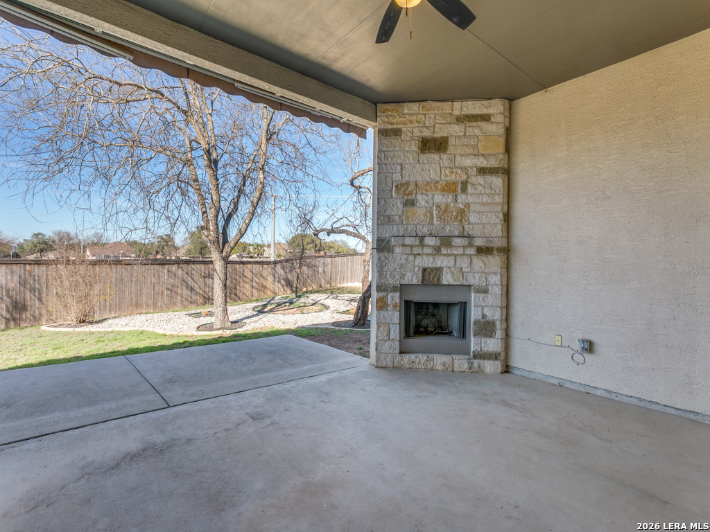 GATED 55+ (Unit 1), sought-after small Neighborhood. Well cared for home defines comfort & privacy, along with high ceilings and lots of natural light. This is an open concept floor plan to be enjoyed with a spacious great room, galley-type kitchen, and dining area. The kitchen features gas cooking, an oversized granite island, & stainless appliances. The generous primary bedroom & bathroom with it's soaking tub, separate large shower, dual vanities, & walk-in closet are a delight. A carefully designed home includes a room for a dedicated home office, or a 2nd living area, or a separate dining room. Enjoy outdoor living with the covered back porch and shade awning, + a wood burning fire place. The property backs up to a green space and has mature trees, defined flower beds along with side yard raised beds and small storage shed. This home is nestled on a small cul-de-sac street. A great neighborhood for walking or jogging. Just minutes from shopping, easy access to Loop 337.