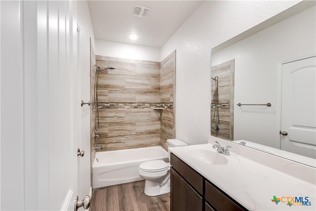 Beautiful duplex features an open floor plan with vinyl flooring throughout. The kitchen offers granite countertops with stainless steel appliances. Canopy lighting throughout the home gives a sleek look. Bathrooms feature high granite countertops and a beautifully tiled shower with a stylish accent band. The home comes with full sod, in-ground sprinklers, and a privacy fence. No backyard neighbors! Great location within walking distance from schools and shopping.