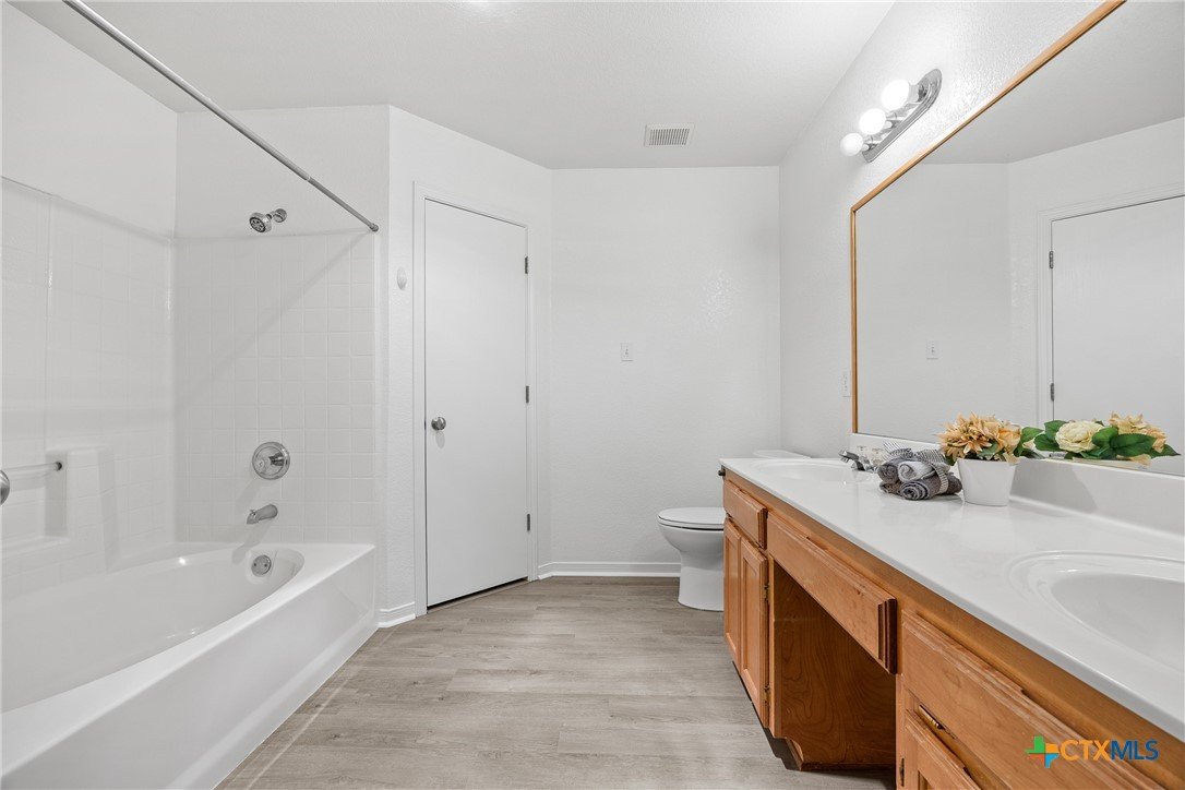 This home has it all: half-acre lot, new roof, new HVAC, new flooring, and fresh interior/exterior paint. Expect lower insurance, lower utilities, fewer surprises, and a clean start on day one. Open 1,542 sq ft layout. The kitchen works hard with a butler’s pantry to keep appliances, groceries, and prep organized. The primary suite has dual vanities and his-and-hers closets for real storage. Outside, the 0.51-acre lot with mature trees gives you space to spread out, entertain, or garden without feeling cramped. In Summer Creek Estate within Copperas Cove ISD, minutes to shopping, dining, and Fort Hood. 351 Summers Rd is a practical, low-maintenance 3-bed, 2-bath that helps you live comfortably while spending less on upkeep.