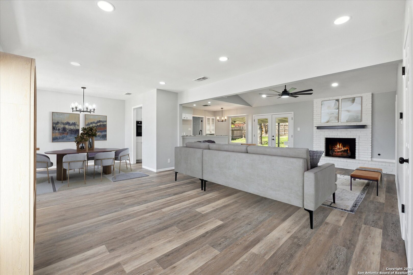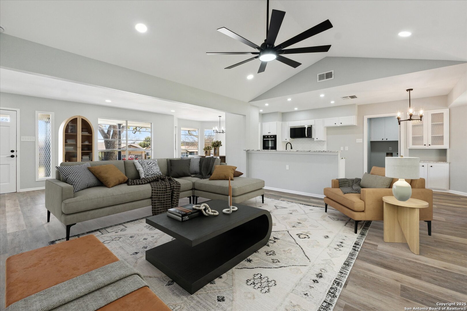 Newly remodeled, single-story retreat in the heart of San Antonio, TX. This charming property sits on a generous 0.258-acre lot, offering ample space for outdoor enjoyment and relaxation. The home has been completely redone with meticulous attention to detail, including modern fixtures and finishes throughout. Inside, you'll find a bright and airy open-concept living space, perfect for entertaining or cozy family nights. The large windows flood the home with natural light, enhancing the welcoming atmosphere and providing picturesque views of the surrounding greenery. The kitchen is a standout feature, boasting sleek granite countertops, a stylish backsplash, and new stainless steel appliances, making it a chef's delight. The bathrooms are beautifully appointed with marble-patterned tiles and modern fixtures that add a touch of luxury. Noteworthy community aspects include its quiet positioning, while still being conveniently close to IH 10 and Wurzbach Rd, providing easy access to all San Antonio has to offer. This home is ideally suited for first-time homebuyers or those looking to downsize in retirement. Don't miss your chance to own this exquisite home in a fantastic location.