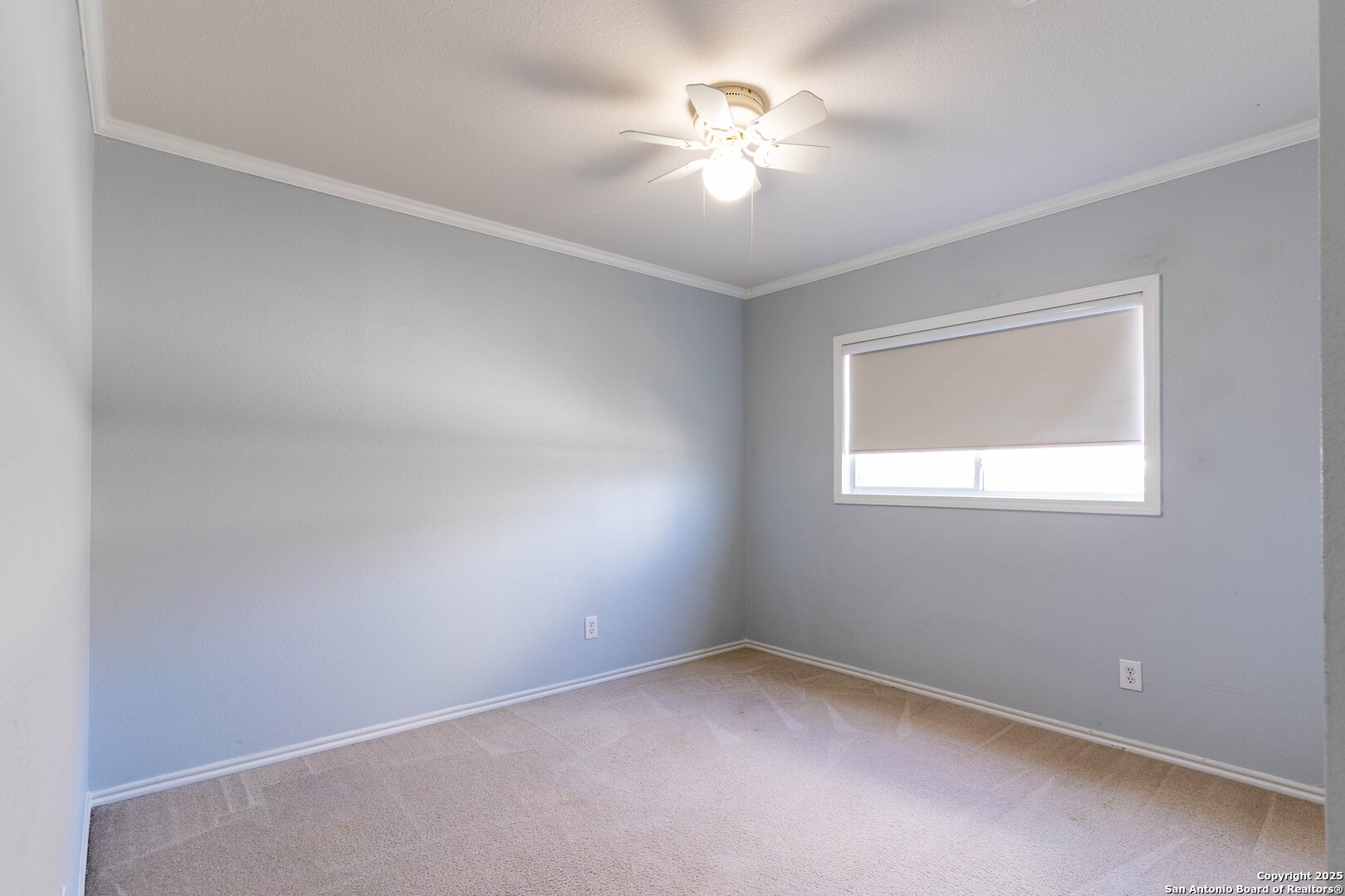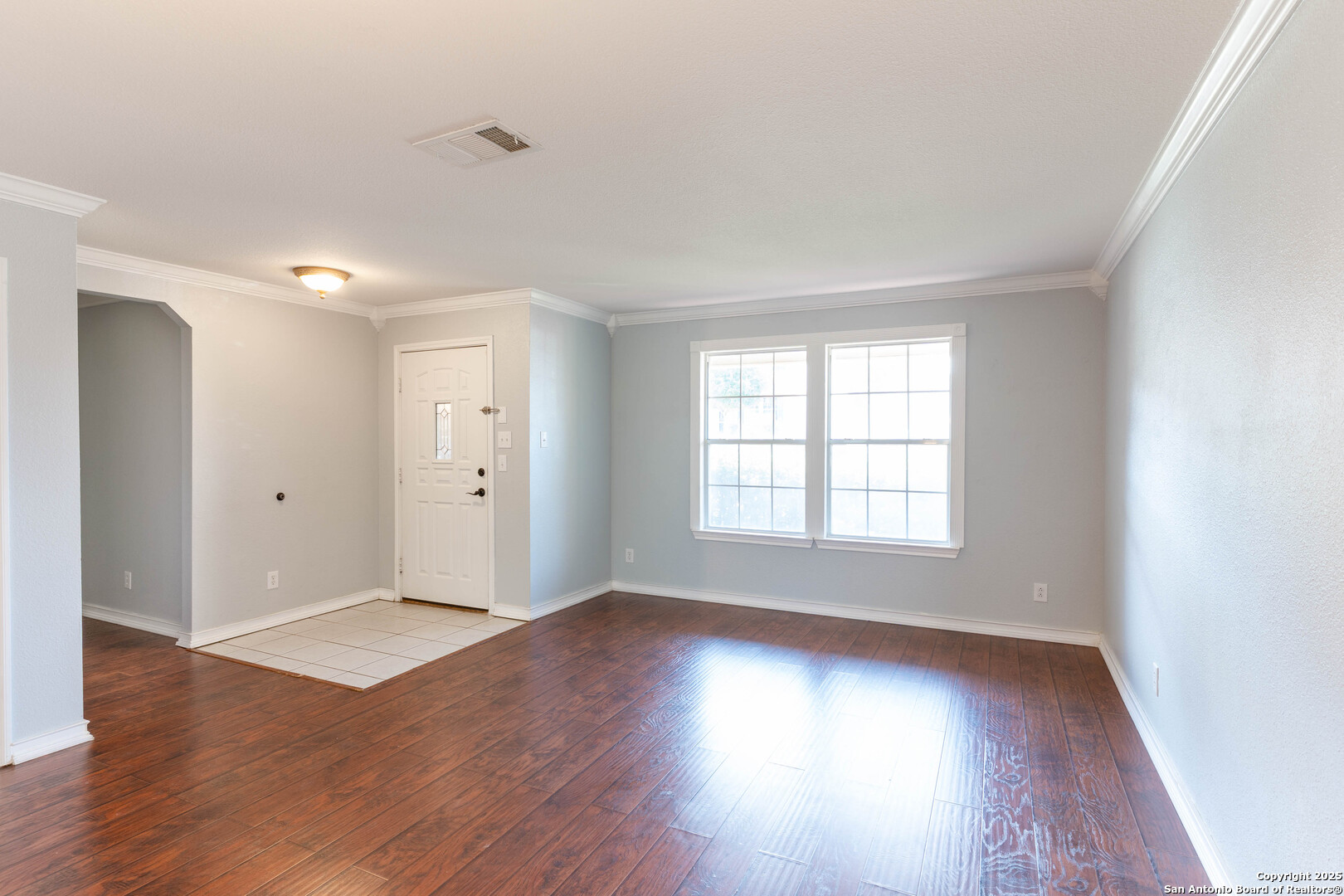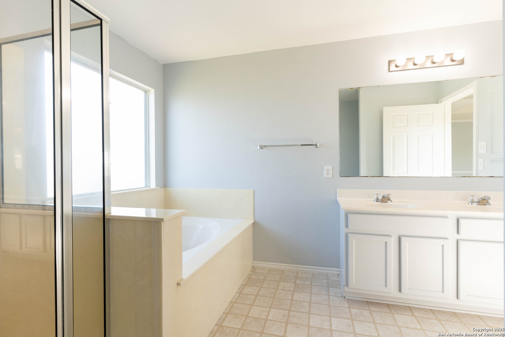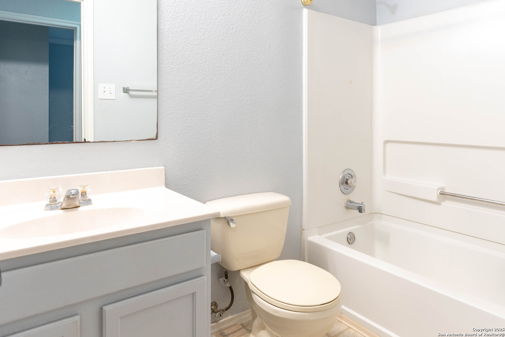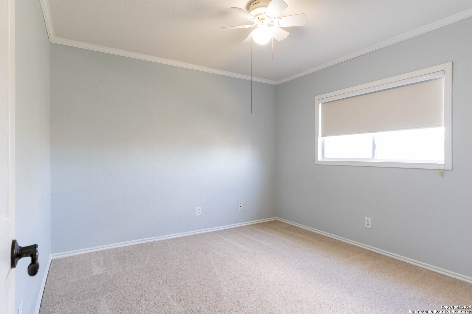 GUEST BEDROOM AND FULL BATH DOWN!! Step into this beautifully maintained two-story home in Creek Haven, offering generous living space and thoughtful updates throughout. The first floor boasts a versatile guest bedroom and full bath-ideal for visitors or multi-generational living. An open-concept layout connects the spacious living area and chef's kitchen featuring abundant cabinet and counter space, an under-mount sink, and a charming custom breakfast bench. Glistening wood floors, crown molding, and recessed lighting enhance the home's elegant appeal. Upstairs, a large game room provides the perfect spot for movie nights or casual entertaining. The massive primary suite is a true retreat, complete with a custom closet organizer and a spa-like bath with separate tub and shower. Two additional bedrooms and a full bath with double vanity round out the second level. Outdoors, enjoy a covered and screened patio, fruit-bearing pear (please help yourself to a pear or two) and peach trees, and a storage shed. Located in top-rated NEISD and close to Hwy 281, this home offers both convenience and comfort in a desirable neighborhood.
