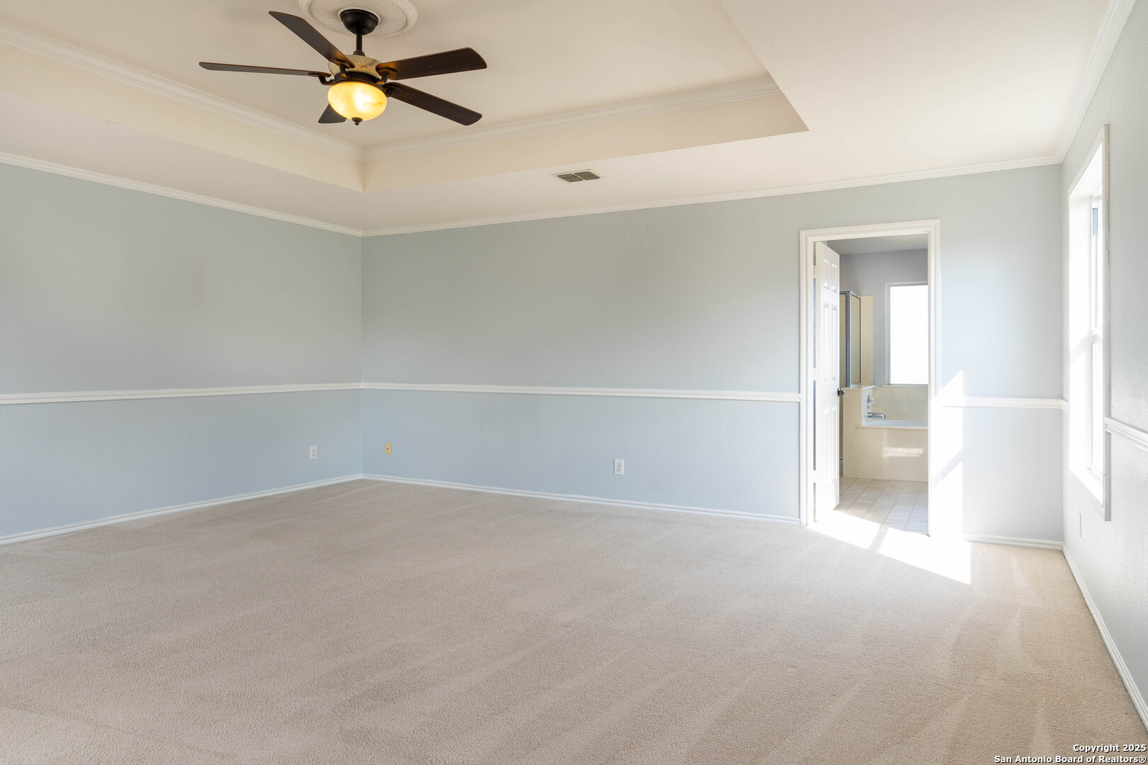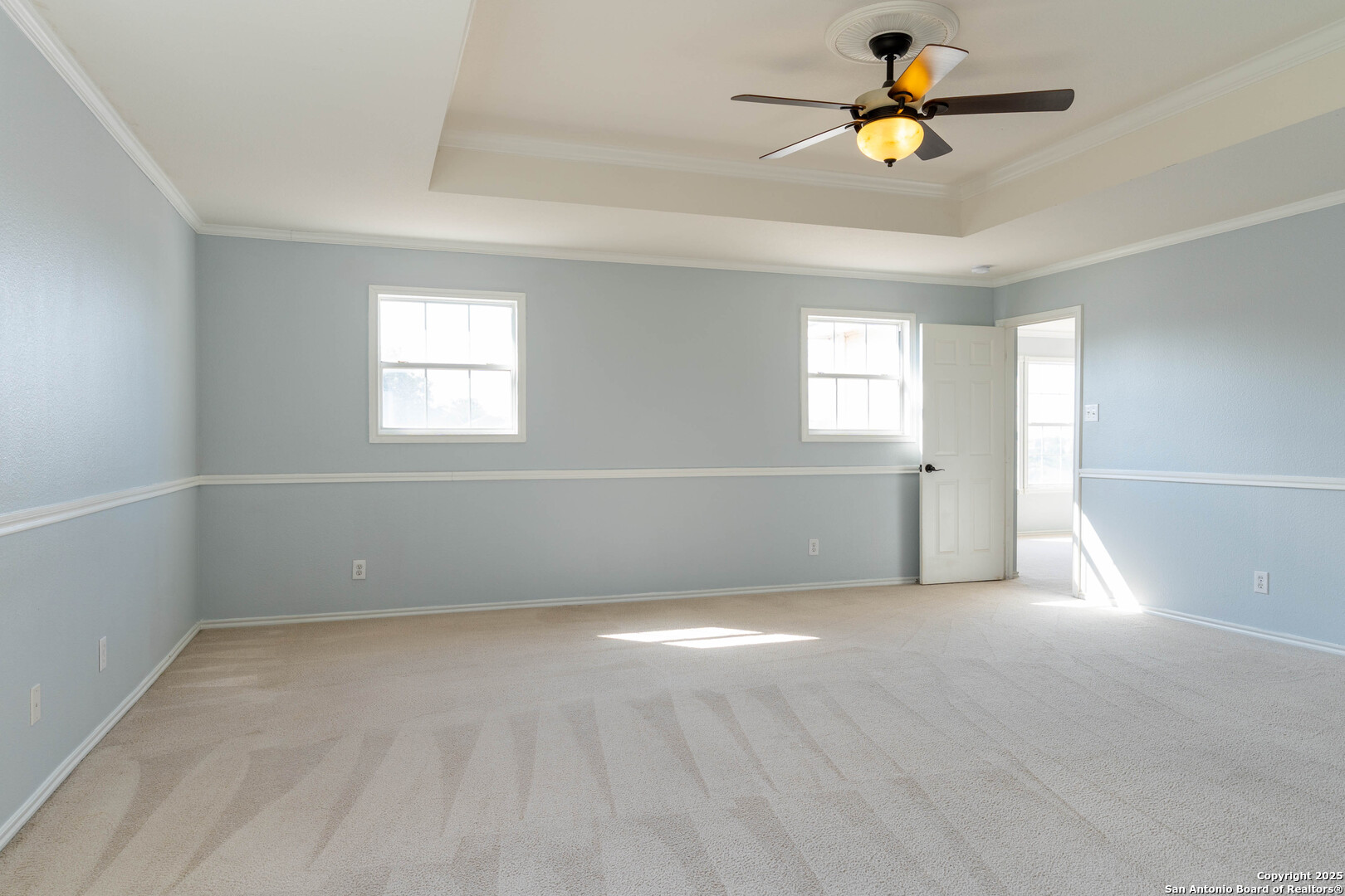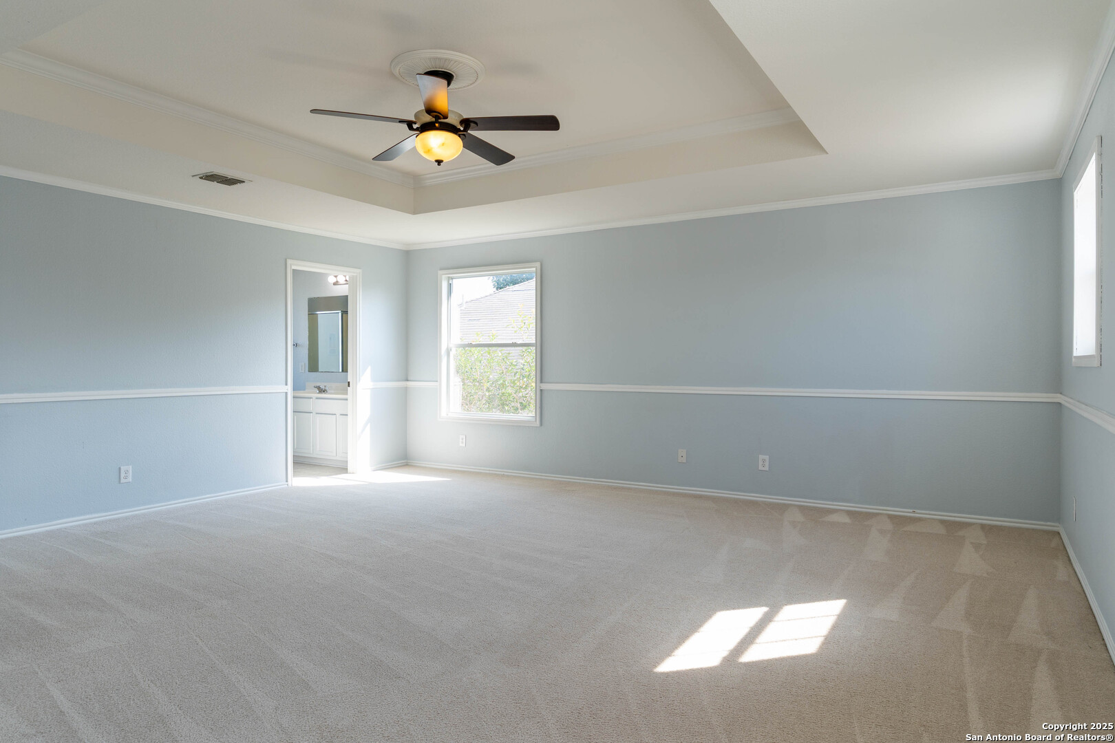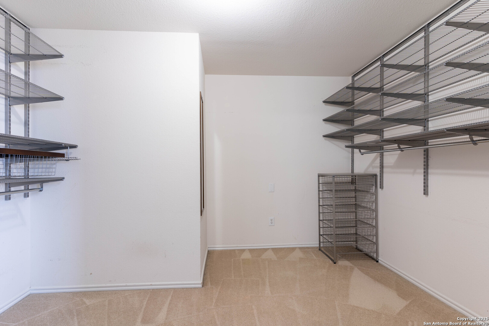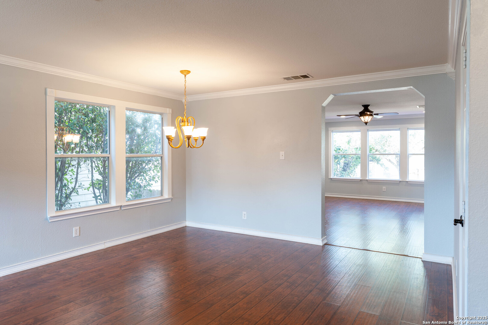 GUEST BEDROOM AND FULL BATH DOWN!! Step into this beautifully maintained two-story home in Creek Haven, offering generous living space and thoughtful updates throughout. The first floor boasts a versatile guest bedroom and full bath-ideal for visitors or multi-generational living. An open-concept layout connects the spacious living area and chef's kitchen featuring abundant cabinet and counter space, an under-mount sink, and a charming custom breakfast bench. Glistening wood floors, crown molding, and recessed lighting enhance the home's elegant appeal. Upstairs, a large game room provides the perfect spot for movie nights or casual entertaining. The massive primary suite is a true retreat, complete with a custom closet organizer and a spa-like bath with separate tub and shower. Two additional bedrooms and a full bath with double vanity round out the second level. Outdoors, enjoy a covered and screened patio, fruit-bearing pear (please help yourself to a pear or two) and peach trees, and a storage shed. Located in top-rated NEISD and close to Hwy 281, this home offers both convenience and comfort in a desirable neighborhood.