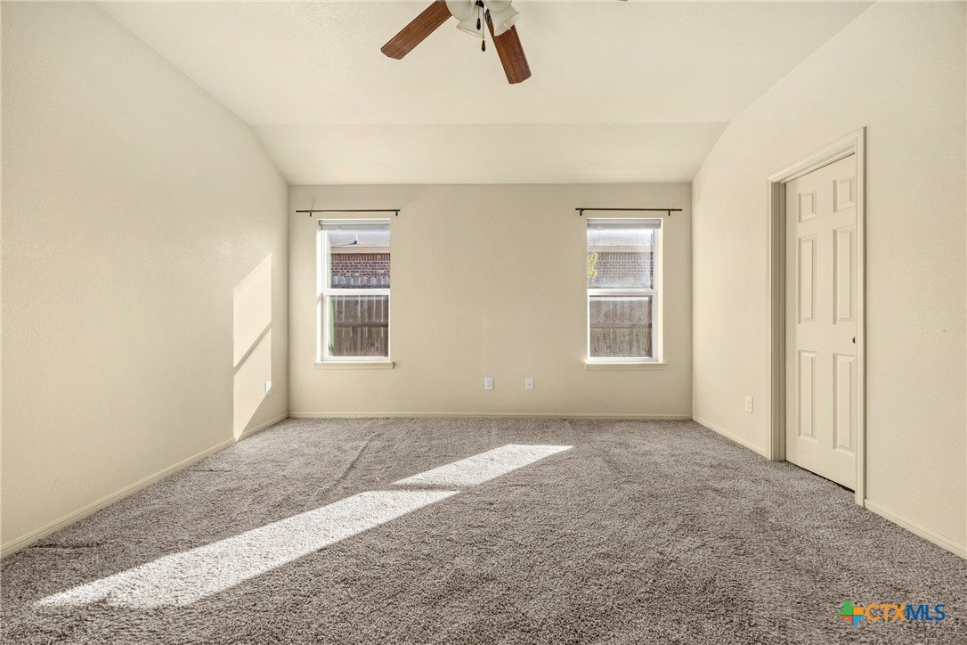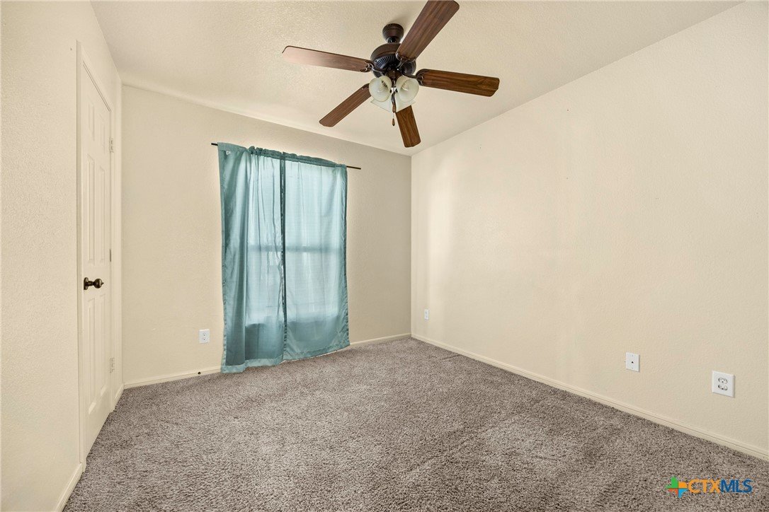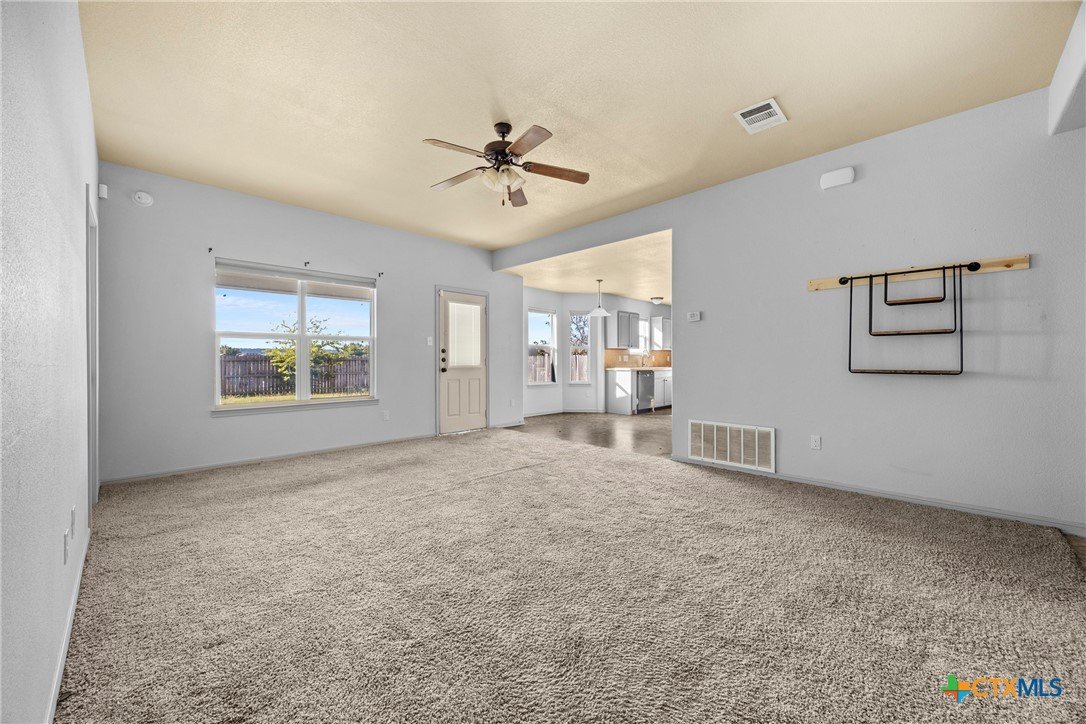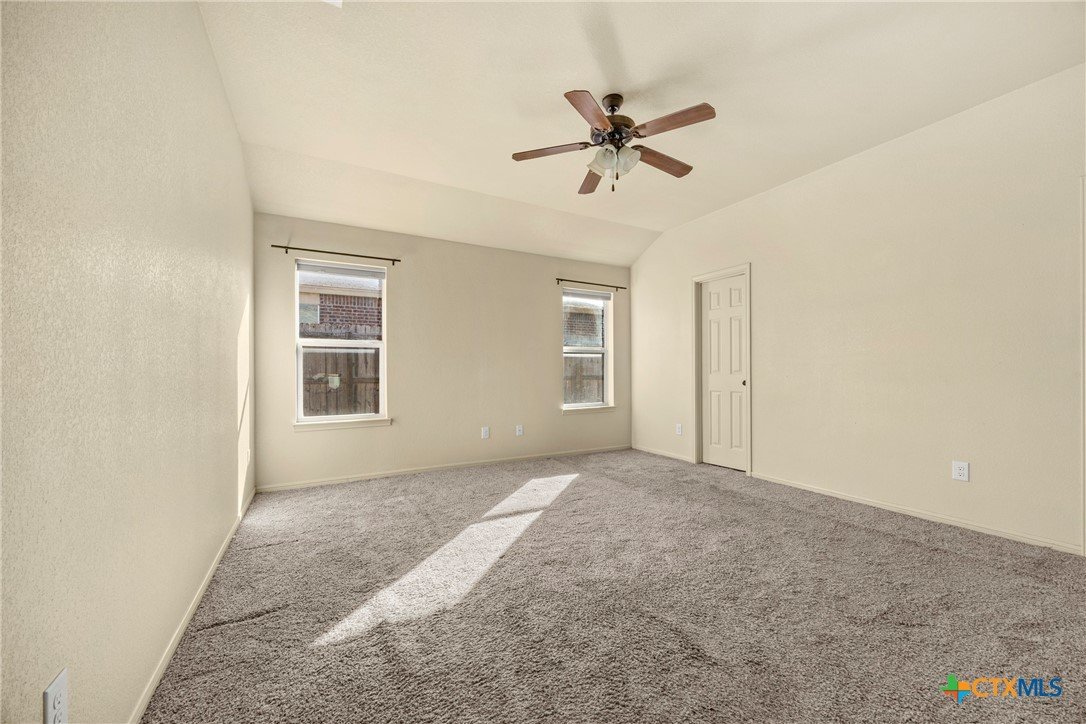 This 4-bedroom, 2-bathroom home features rounded wall corners and energy-efficient vinyl tilt sash windows that help maintain comfortable temperatures year-round. Ceiling fans in all bedrooms and the living room provide steady airflow throughout the home. The primary bathroom includes a garden tub with cultured marble surround, double vanities with gooseneck faucets, and two walk-in closets. The kitchen has red oak cabinets and black appliances, including an electric range, built-in microwave, refrigerator, and dishwasher. Move-in ready! Schedule your showing today.