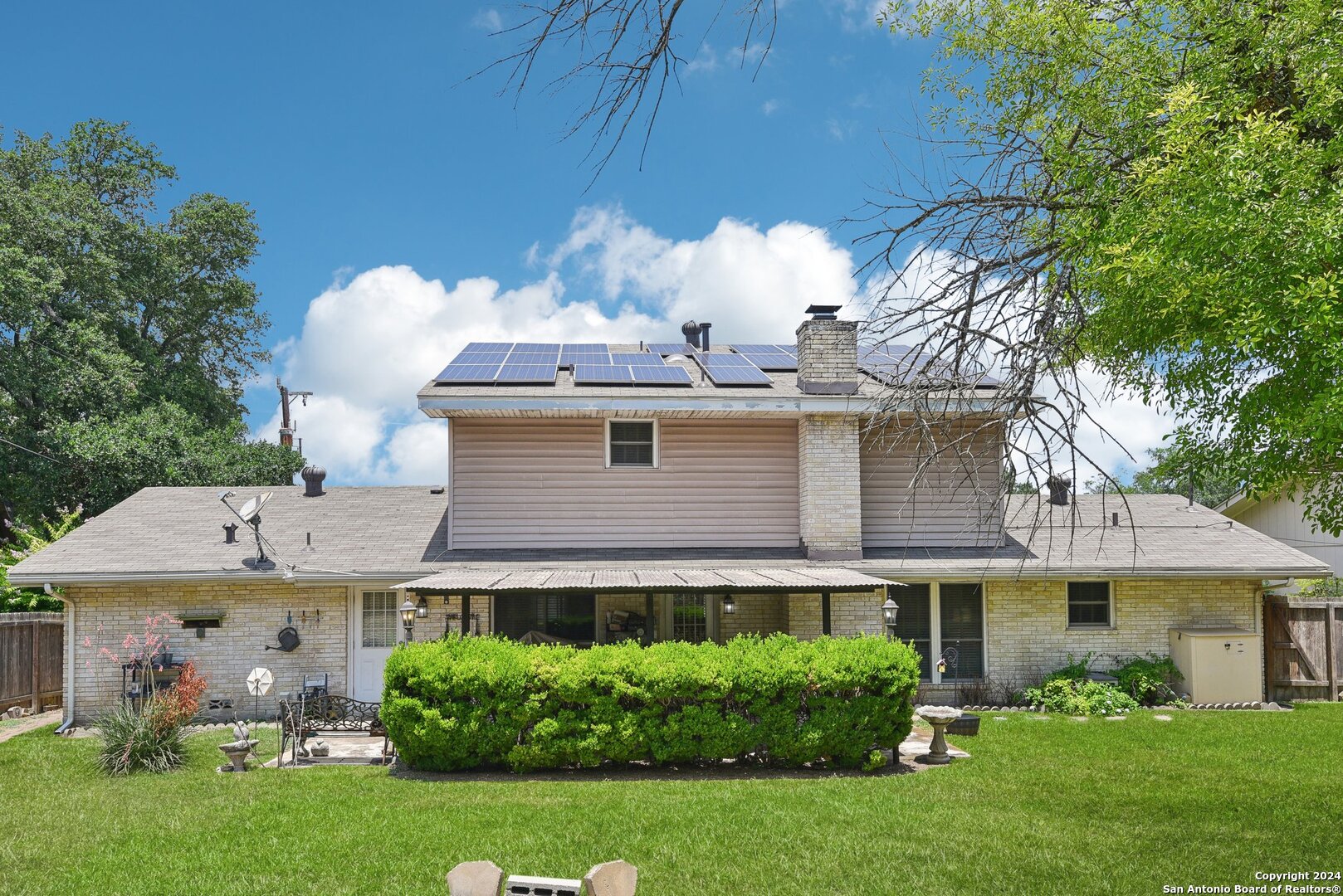 Welcome home to this spacious and gently updated 2 story home in The Summit, one of San Antonio's most beloved neighborhoods. Outfitted with solar panels (paid in full) to help reduce your energy bills nearly year-round, double paned windows for improved energy efficiency, and bright interior paint - this home is ready to serve you well for years to come! The primary bedroom is on the main floor, along with a secondary bedroom (converted living space made to suit the lifestyle of the current owners), full bathroom, formal dining room, eat-in kitchen, and family room. Upstairs you'll find 3 secondary bedrooms and a large secondary full bath. The attached two car garage offers enough room for vehicles and storage, and the laundry room serves as a mudroom with access from the garage and to the backyard. Venture out back onto the covered patio and get ready to make this expansive backyard the yard of your dreams (extra: store your lawn equipment in the storage shed for easy access and to keep your garage clean)! Schedule your showing today!