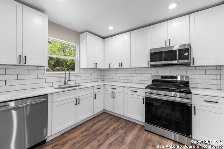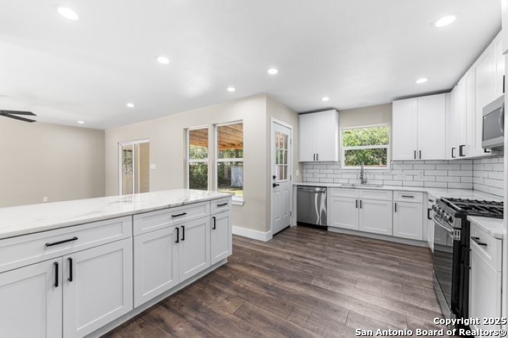 Unbeatable location in the heart of San Antonio! This completely remodeled 3-bedroom, 2-bath home offers the perfect combination of modern comfort and prime convenience. Situated just minutes from The Quarry Market, the San Antonio International Airport, and a quick drive to The Pearl, Downtown, and major highways, you'll enjoy effortless access to some of the city's most popular shopping, dining, and entertainment destinations. From the moment you arrive, the home's fresh exterior, cedar accents, and large custom cedar flowerbed offer incredible curb appeal. Step inside and experience a warm, inviting interior with all-new modern flooring throughout-no carpet anywhere-creating a clean and contemporary look that's easy to maintain. The generous open-concept living space flows seamlessly into the completely updated kitchen, which features sleek granite countertops, stainless steel appliances, gas cooking, and ample cabinet space for storage. The open layout makes entertaining and daily living both comfortable and stylish. Both bathrooms have been thoughtfully renovated with granite countertops and beautiful tile finishes, including a full walk-in shower in the primary suite that adds a spa-like feel to your private retreat. This home has undergone extensive updates where it matters most-every major system has been replaced or upgraded for peace of mind and long-term value. The electrical system has been completely redone, including brand-new wiring and recessed lighting throughout the home, providing efficient and elegant illumination in every room. The plumbing system has also been entirely replaced from top to bottom, offering reliable performance for years to come. The HVAC system is brand new and includes a fresh air system to enhance indoor air quality and overall comfort. In addition, the foundation has been professionally repaired and comes with a full engineer's report for added assurance. All windows have been upgraded to energy-efficient dual-pane models, helping to improve energy savings while reducing outside noise. One of the standout features of this home is the inviting outdoor living space. Step out back and relax or entertain guests on the large covered deck, perfect for BBQs, evening gatherings, or simply enjoying your morning coffee in a tranquil setting. Whether you're a first-time buyer, a downsizer looking for move-in-ready convenience, or someone searching for a stylish home close to everything San Antonio has to offer, this property checks all the boxes. With tasteful modern finishes, top-to-bottom updates, and a central location that can't be beat, this home is a rare find in today's market. Don't miss your opportunity to own a completely renovated gem in one of San Antonio's most desirable areas-schedule your showing today!