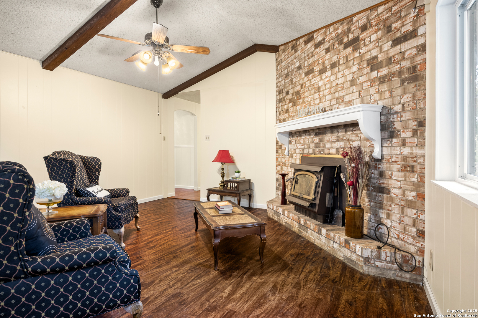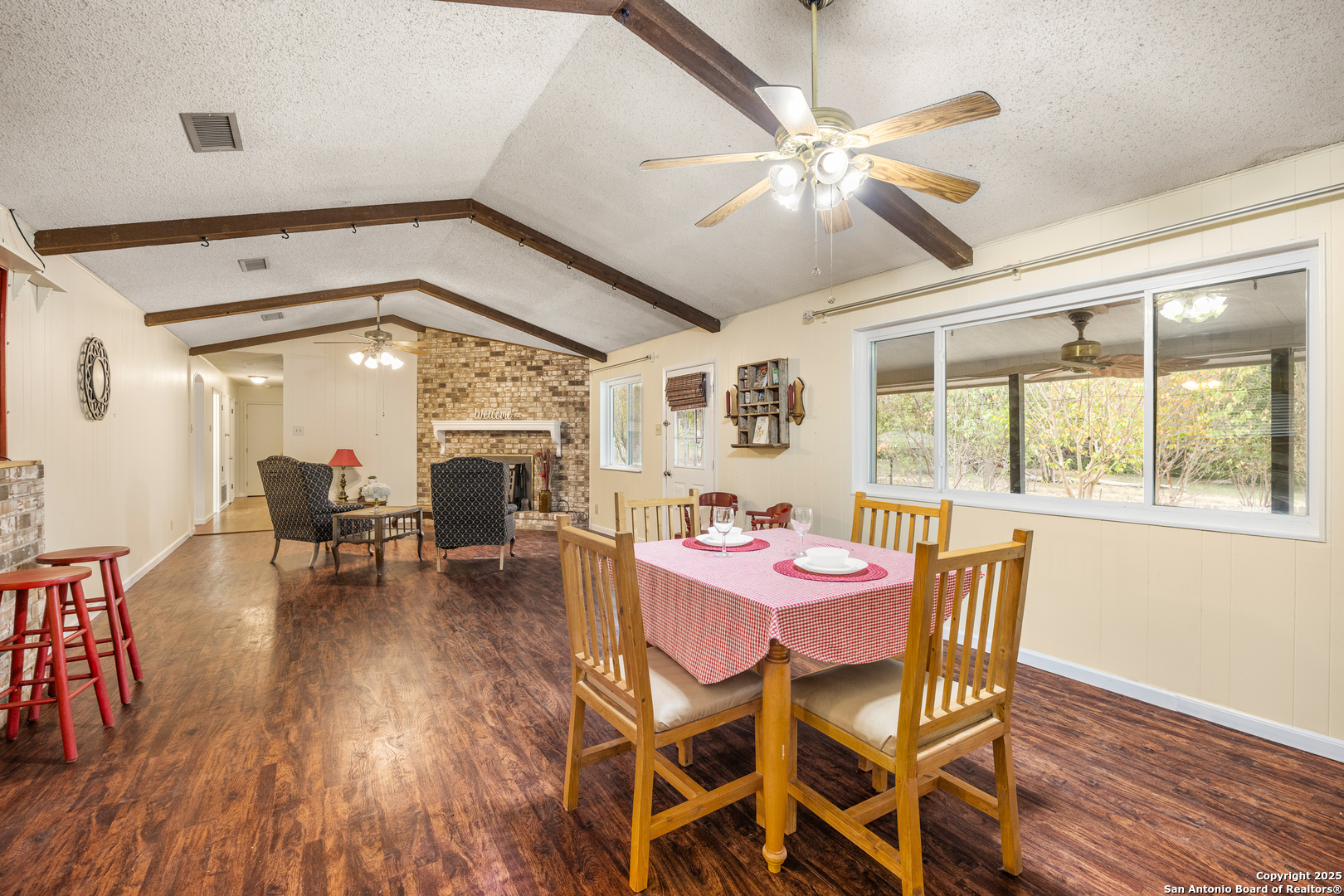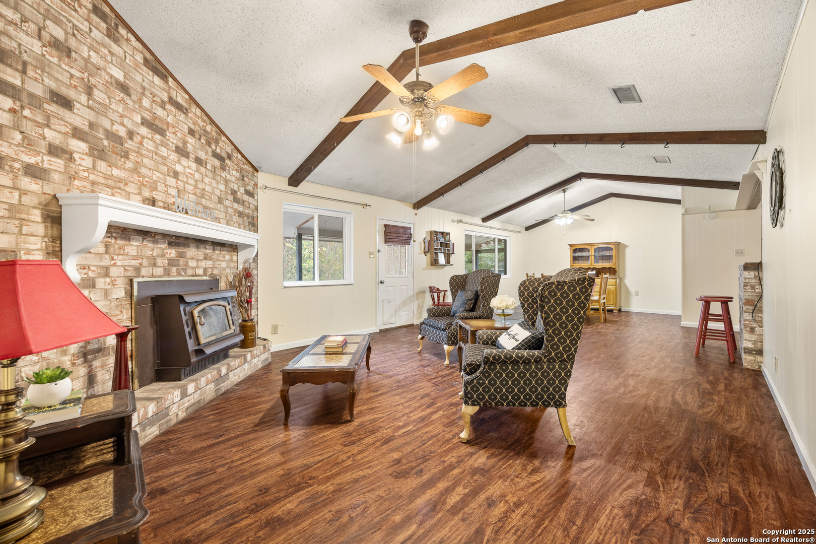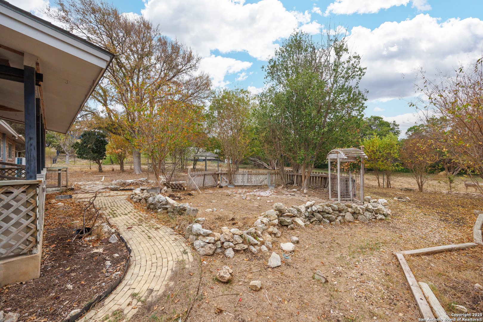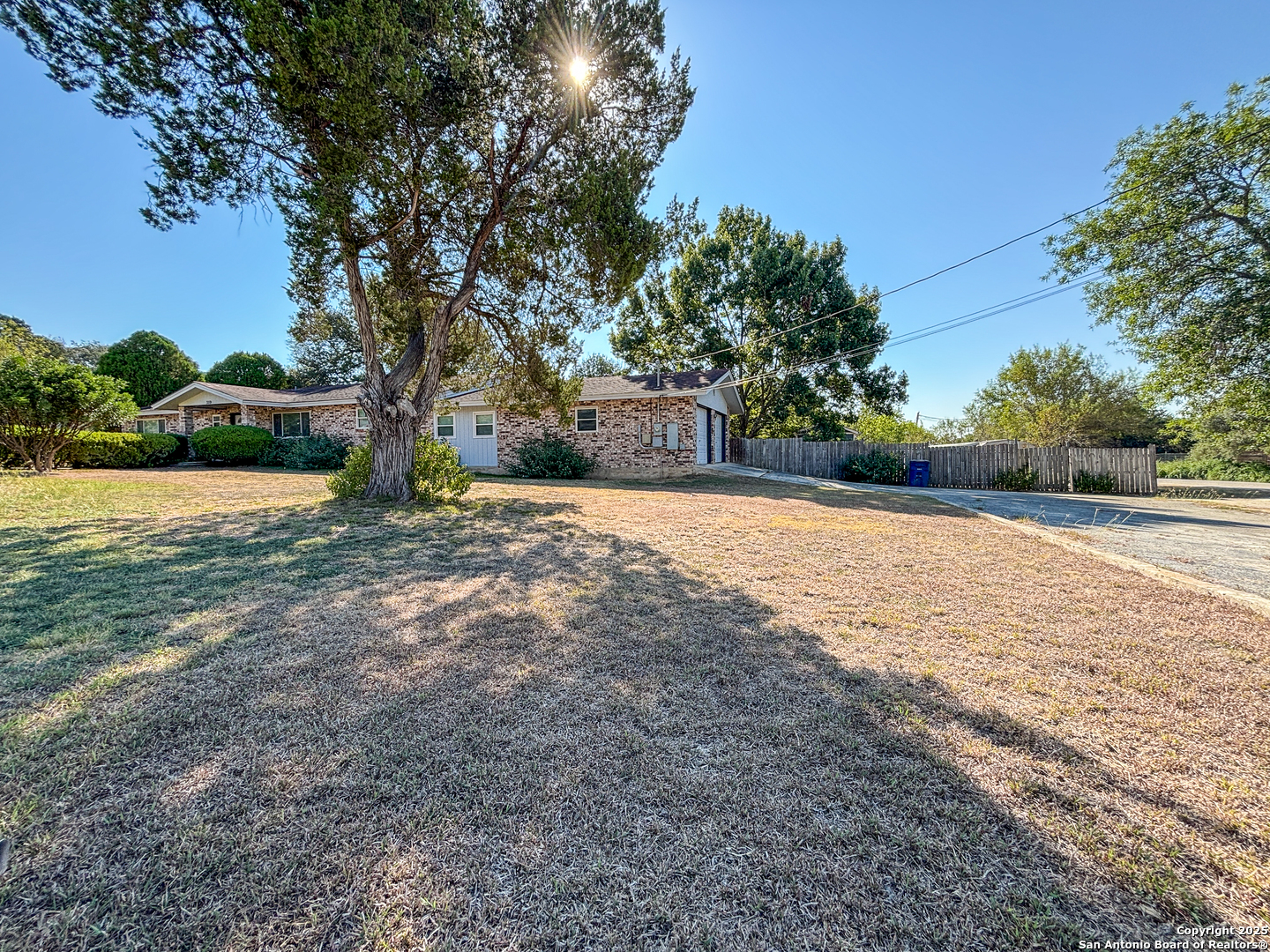 Welcome to this charming three-bedroom, two-bath home nestled on a spacious 1.25-acre corner lot. The property features a circular front driveway and additional parking in front of the attached two-car garage, offering both convenience and curb appeal. Step inside to a generously sized living and dining area, complete with a cozy wood-burning fireplace-ideal for relaxing evenings or entertaining guests. The kitchen is well-appointed with tall cabinetry and expansive countertops, providing ample space for meal preparation and storage. Just off the kitchen, a separate utility room offers dedicated space for a washer and dryer. The secondary bedrooms overlook the serene one-acre backyard, shaded by mature trees that create a peaceful, private retreat. For gardening enthusiasts, the home includes a delightful attached garden room with direct access to the house, garage, and backyard-perfect for cultivating plants or enjoying quiet moments surrounded by nature.