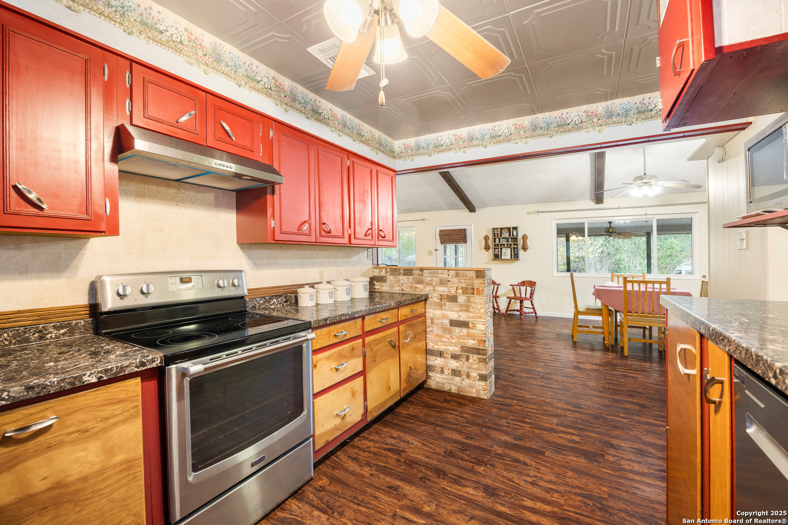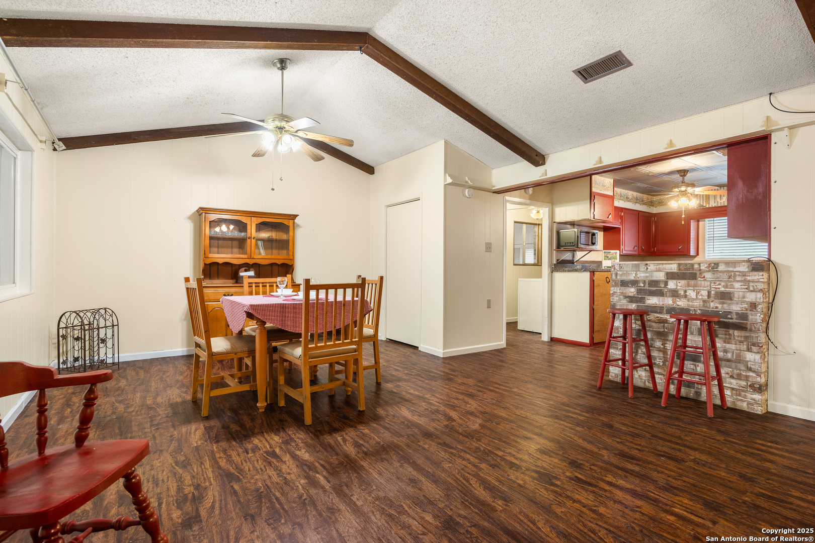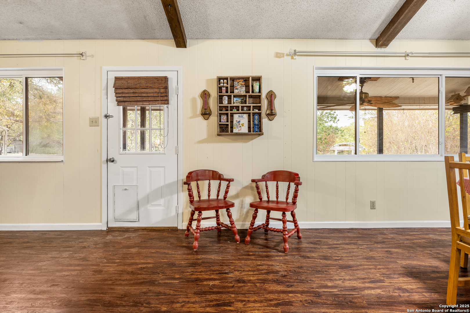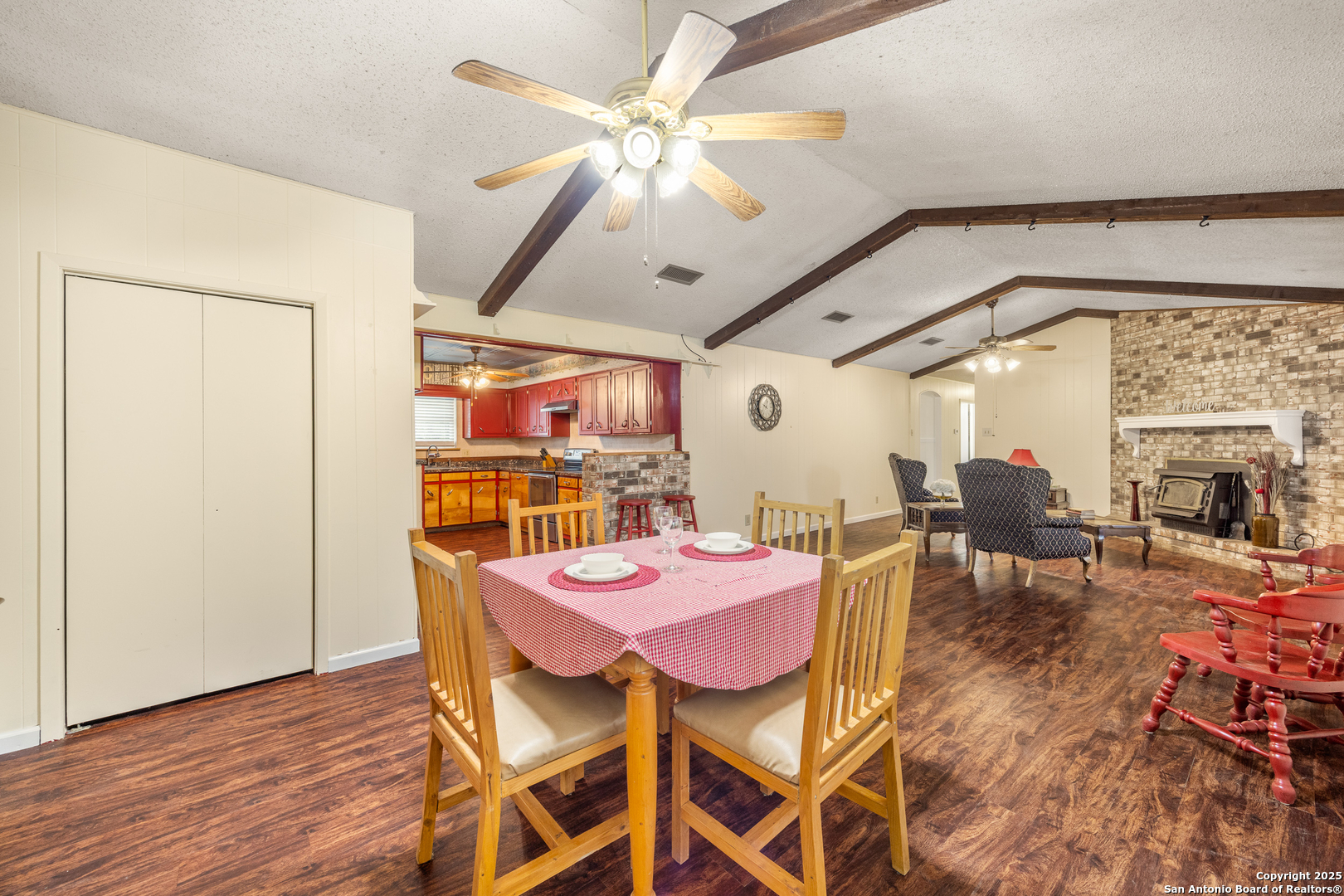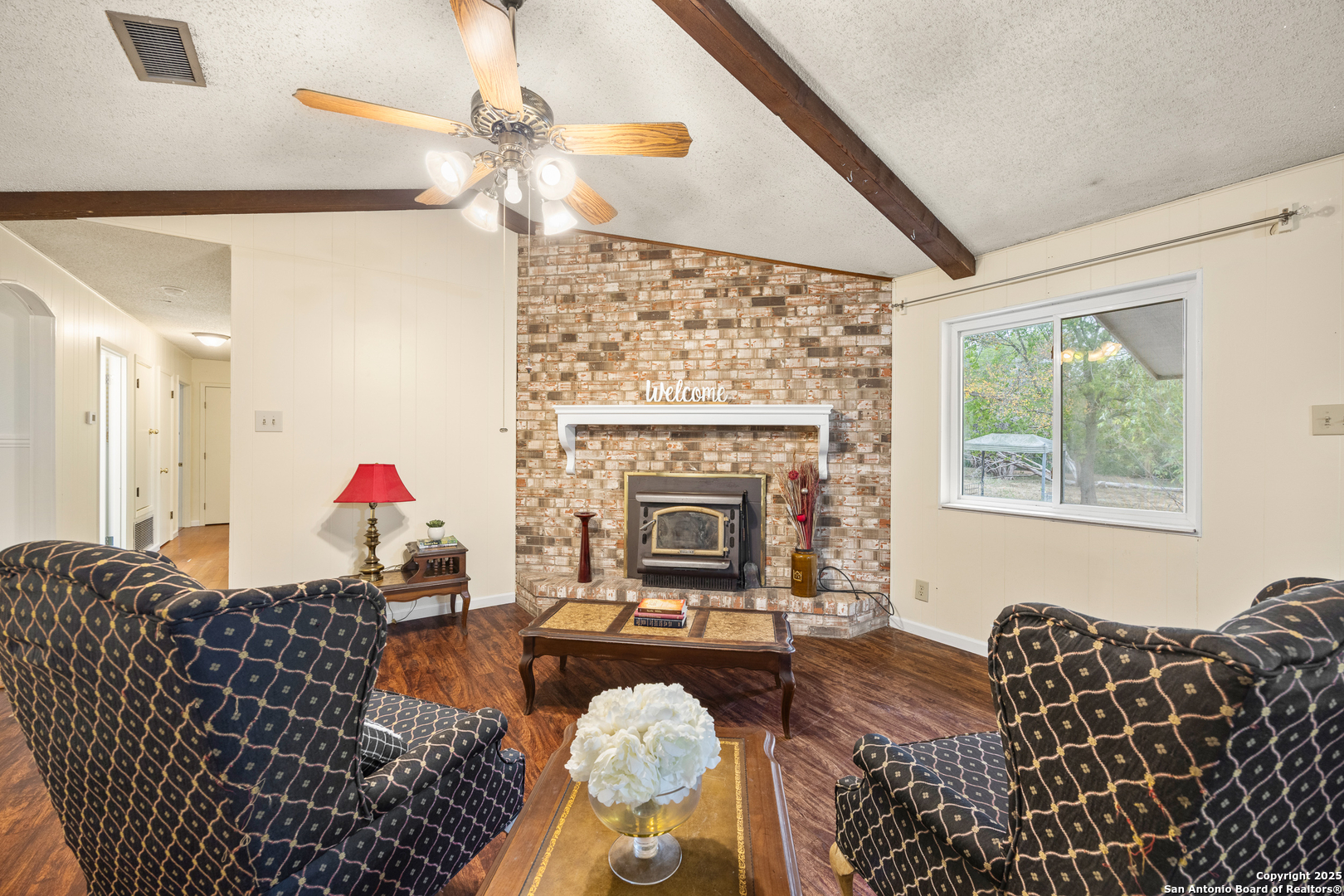 Welcome to this charming three-bedroom, two-bath home nestled on a spacious 1.25-acre corner lot. The property features a circular front driveway and additional parking in front of the attached two-car garage, offering both convenience and curb appeal. Step inside to a generously sized living and dining area, complete with a cozy wood-burning fireplace-ideal for relaxing evenings or entertaining guests. The kitchen is well-appointed with tall cabinetry and expansive countertops, providing ample space for meal preparation and storage. Just off the kitchen, a separate utility room offers dedicated space for a washer and dryer. The secondary bedrooms overlook the serene one-acre backyard, shaded by mature trees that create a peaceful, private retreat. For gardening enthusiasts, the home includes a delightful attached garden room with direct access to the house, garage, and backyard-perfect for cultivating plants or enjoying quiet moments surrounded by nature.