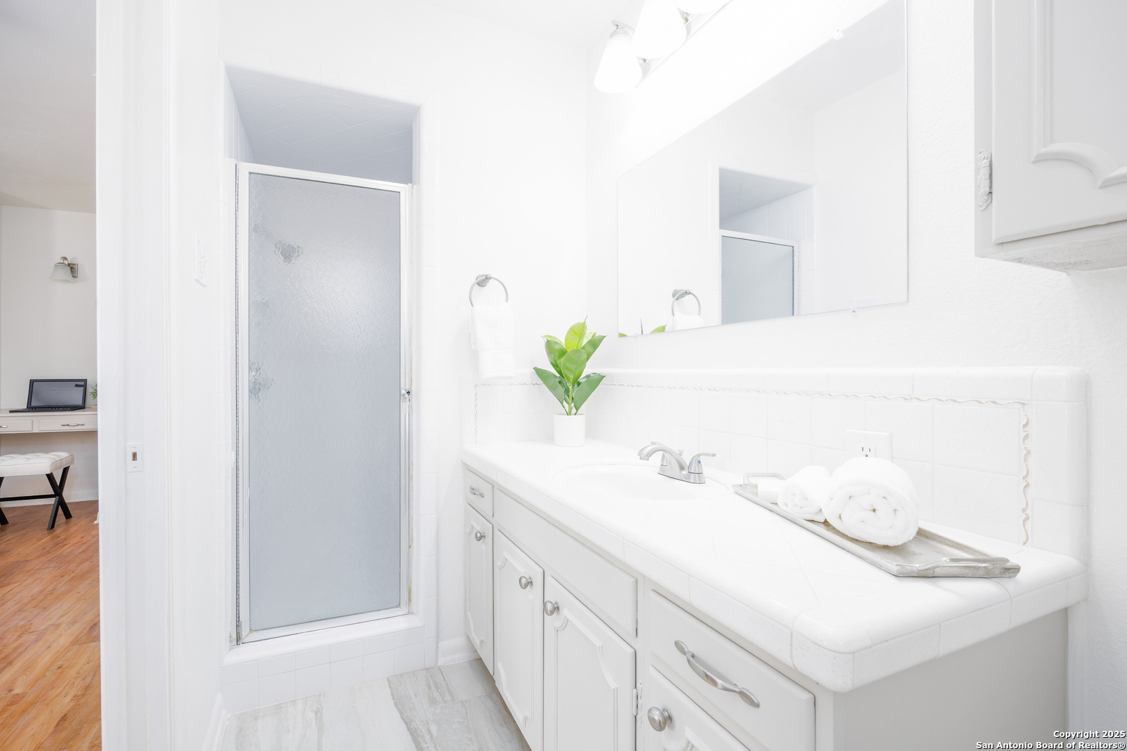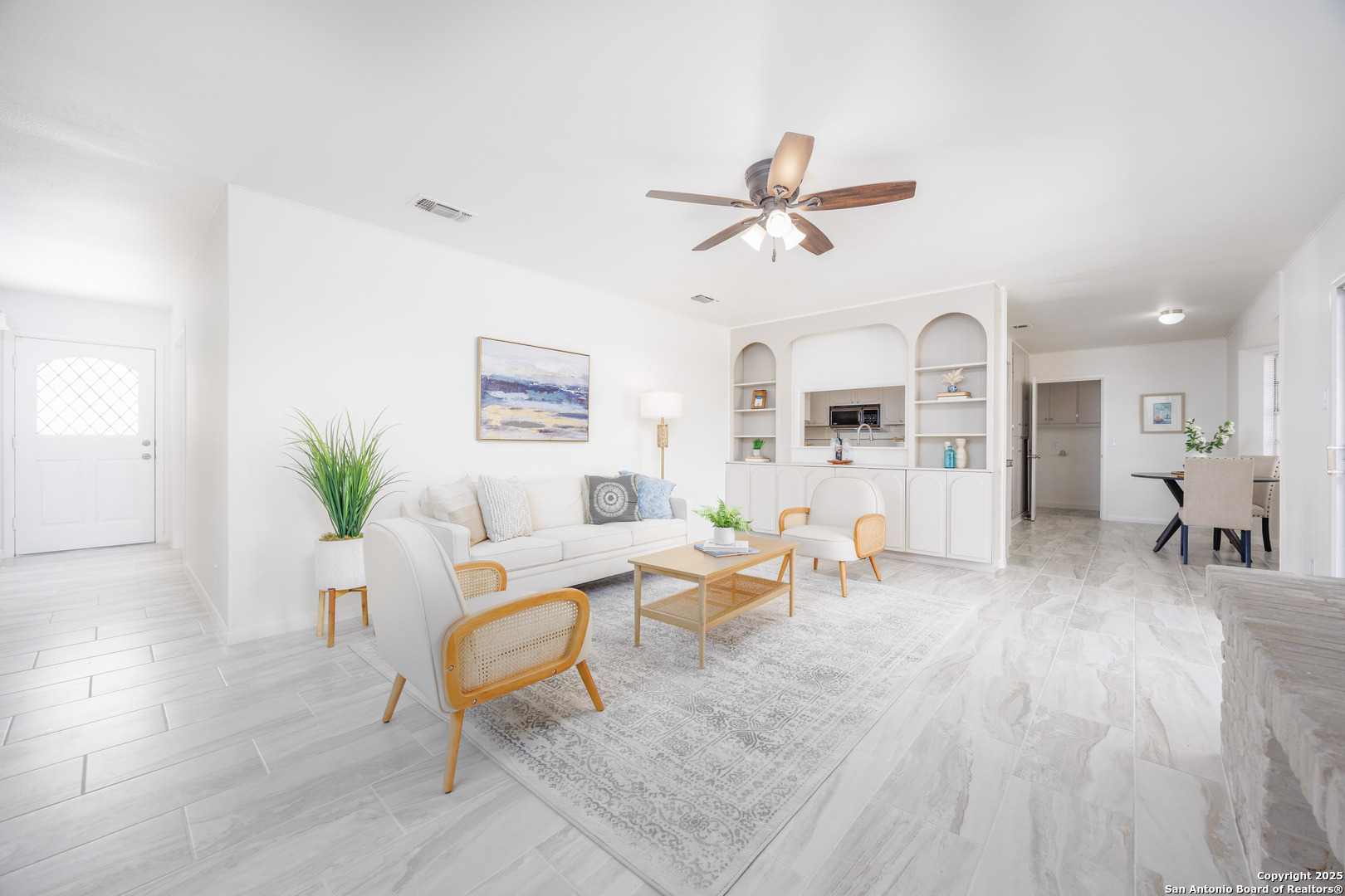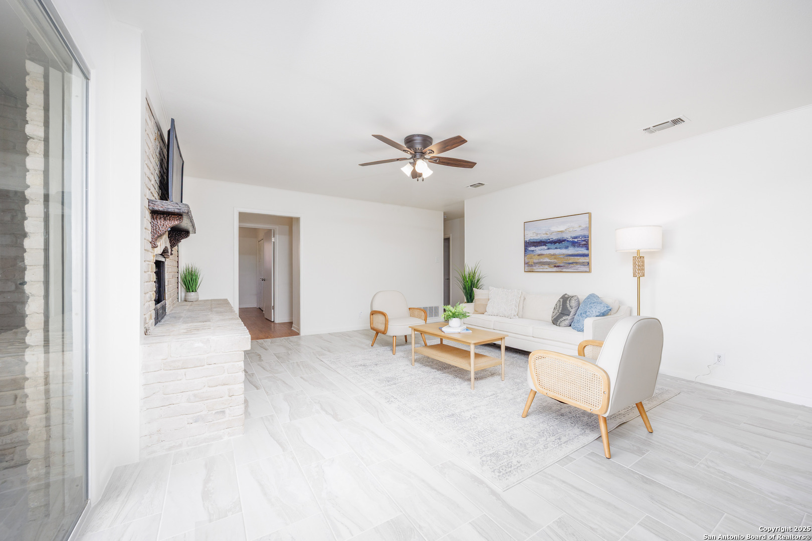 BEAUTIFUL READY TO MOVE IN ONE STORY SPACIOUS HOME IN A VERY CONVENIENT AND PRIME LOCATION. HOME HAS NO STAIRS, LEVEL LOT AND NO CARPET. FRESH INTERIOR AND EXTERIOR PAINT. NEW TILE FLOOR IN THE LIVING, DINING, KITCHEN, LAUNDRY AND BATHROOMS. NICE BRICK FIREPLACE. LOTS OF NATURAL LIGHT. NEW INTERIOR HARDWARE AND NEW DISHWASHER. LARGE, FENCED BACKYARD WITH NICE SPACIOUS PATIO. EASY ACCESS TO SHOPS, RESTAURANTS AND TO 410, WURZBACH, IH 10. CLOSE TO MEDICAL CENTER. MIN TO HEB AND USAA. COME CHECK IT OUT NOW!