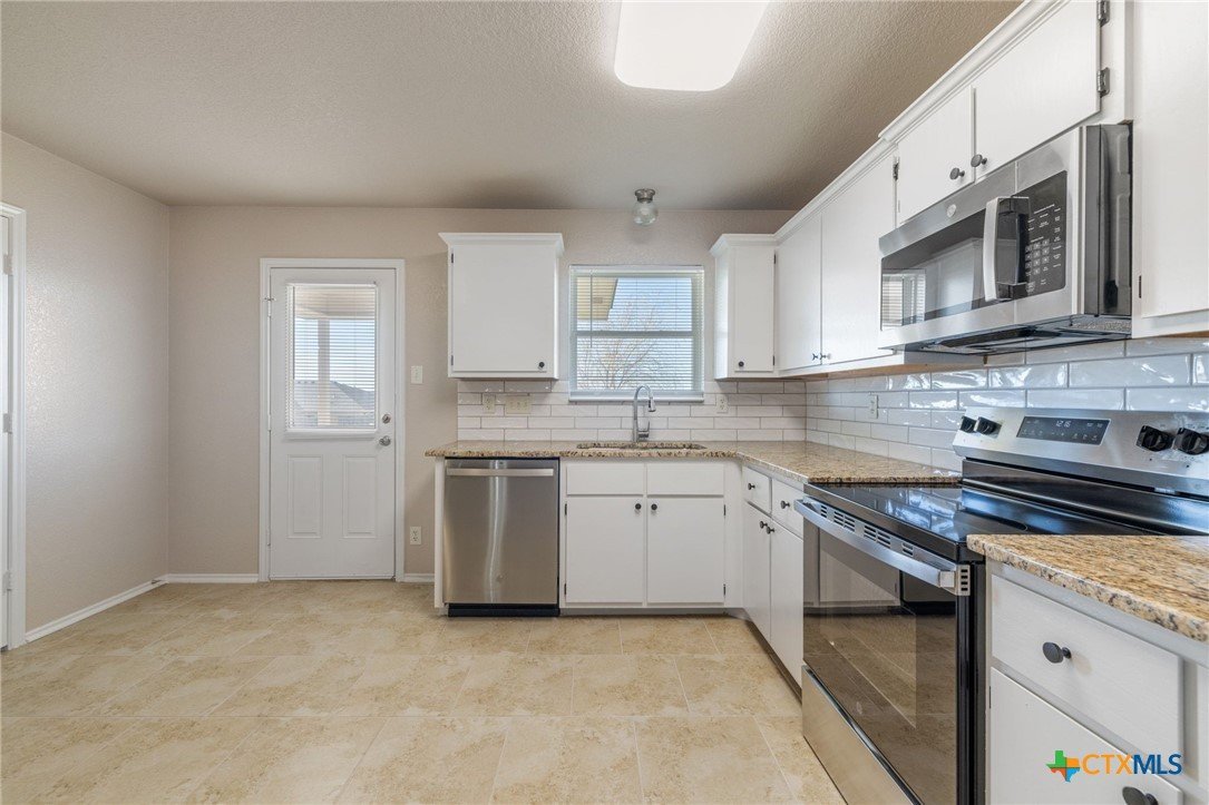 Welcome to 3607 John Haedge, a beautiful updated and truly move-in ready home. Inside, you’ll find new ceramic tile flooring throughout along with fresh interior and exterior paint, giving the space a clean and modern feel. The kitchen includes stainless steel appliances, new granite countertops, and subway tile. The refrigerator conveys, and there is a pantry plus a dedicated laundry room for added convenience. The living area features a wood-burning fireplace. The backyard has a covered patio overlooking a large backyard great for pets, kids, or outdoor hosting. Updated light fixtures are found throughout the home, and a new 30-year impact-resistant architectural shingle roof adds long-term value and peace of mind. The primary bedroom includes a shower/tub combo, single vanity, and walk-in closet. An additional walk-in closet, pantry, and laundry room provide plenty of storage. The location is another strong point, offering quick access to grocery stores, retail shopping, restaurants, parks, schools, and medical facilities. Commuting is simple with nearby access to major roads and local employers.