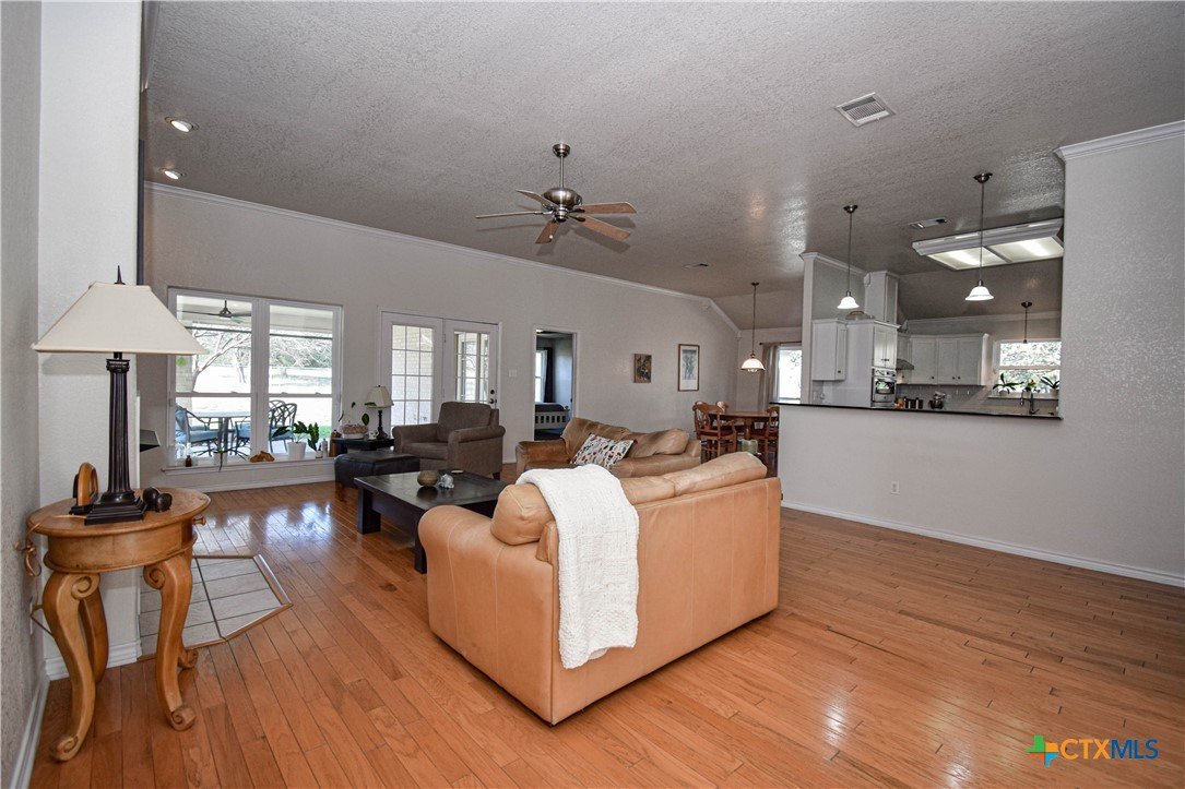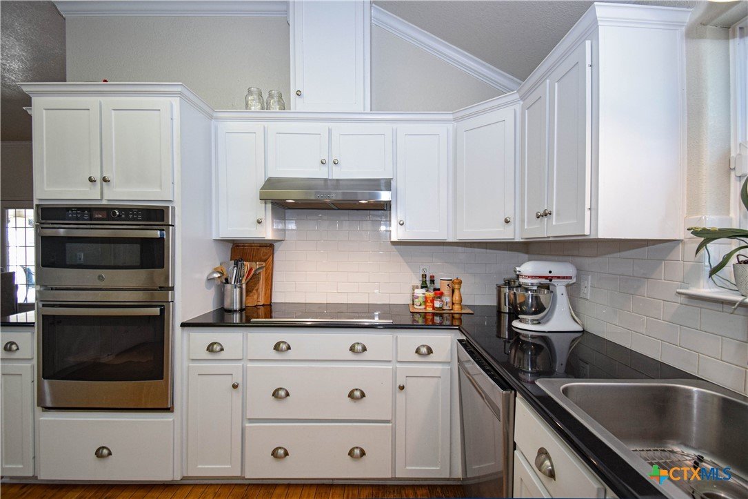 Welcome to your dream home nestled in the tranquil community of Harker Heights! This delightful 3-bedroom property boasts ample living space inside and out, making it the perfect family home. As you step through the elegant front entrance, you are greeted by a warm and inviting atmosphere accentuated by hardwood floors and an abundance of natural light. The spacious living room flows seamlessly into a cozy dining area and a well-equipped kitchen featuring white cabinetry, stainless steel appliances, and a stylish backsplash. Each of the bedrooms offers a serene retreat with plenty of room for relaxation, complemented by modern ceiling fans and soft, comfortable carpeting. The master bath is a highlight with its dual vanities, soaking tub, and separate shower. Outside, the extensive grounds include a fenced backyard ideal for outdoor activities and gatherings. Enjoy the covered patio on sunny afternoons or peaceful evenings at home. The house is further enhanced by a large driveway and a two-car garage, providing practical solutions for storage and workspace needs. This property combines comfort, convenience, and charm, making it an excellent choice for anyone looking to create their forever home. Don't miss the opportunity to make it yours!