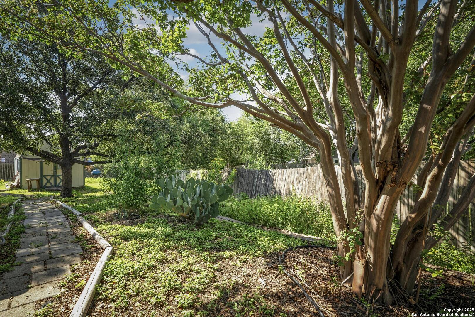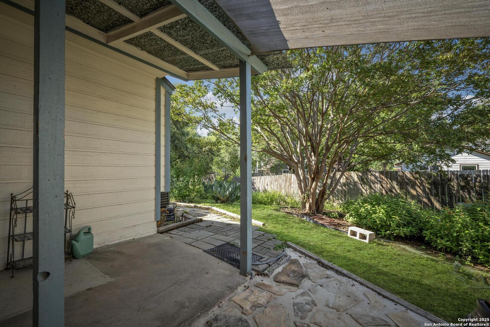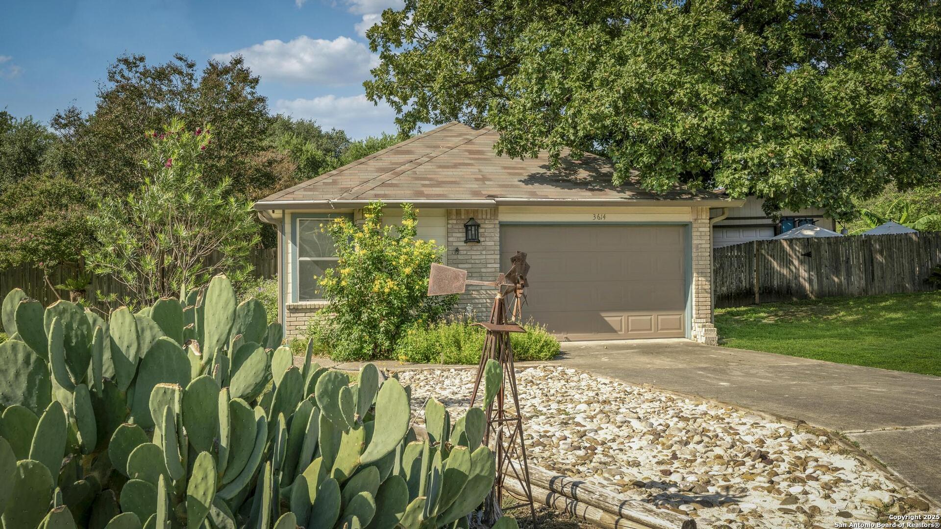 First time on market for sale. Tasteful and charming 1 story home on quarter acre cul-de-sac lot. Gorgeous draught tolerant landscaping and custom interior details throughout. Easy care polished and sealed concrete floors in many areas, split floor plan, eat in kitchen with high ceilings and open light feel. There is a good size shop in the back yard that has power and loft space. Roof replaced in 2021. HVAC system and air ducts replaced 2023 along with 12 inches of added insulation. HVAC system includes free maintenance checks till December 2033. Many neighborhood amenities including pool and sports court. Easy access 0.8 miles within subdivision to McAllister Park Blue Loop which is 6.4 mile loop for hiking, running or biking. Central location with easy access to major highways and airport.