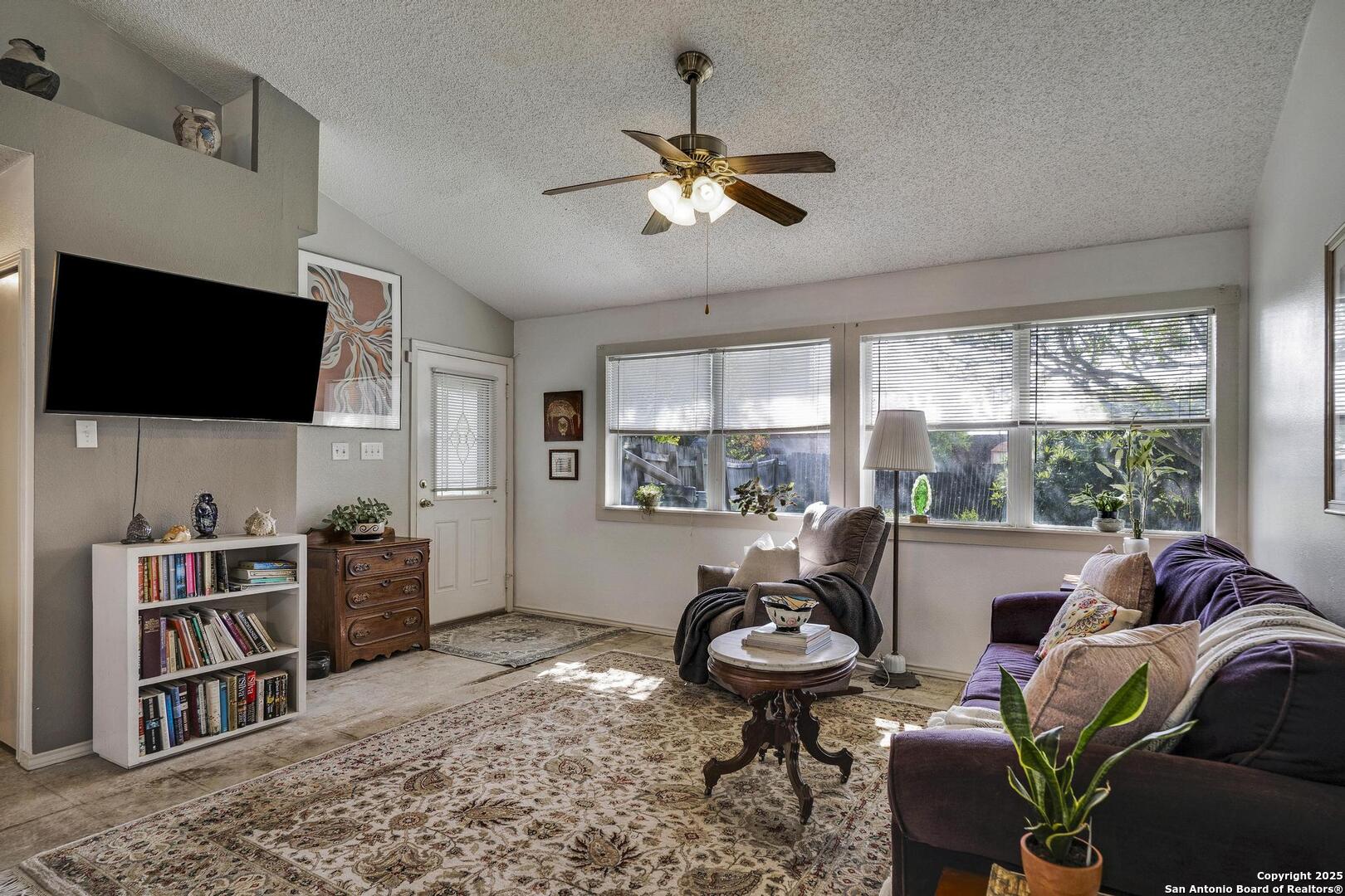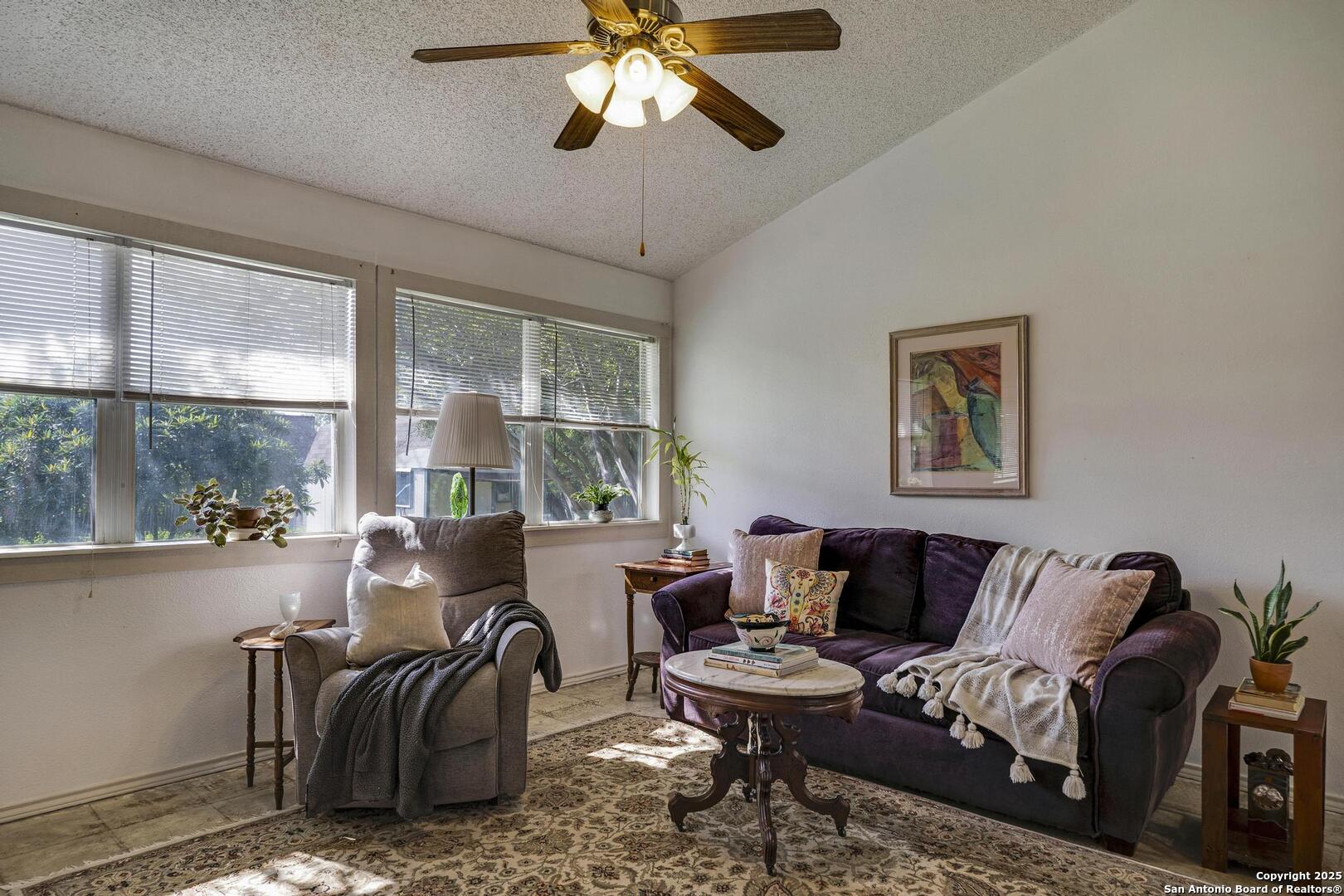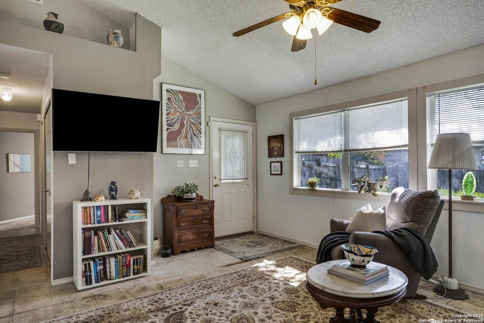 First time on market for sale. Tasteful and charming 1 story home on quarter acre cul-de-sac lot. Gorgeous draught tolerant landscaping and custom interior details throughout. Easy care polished and sealed concrete floors in many areas, split floor plan, eat in kitchen with high ceilings and open light feel. There is a good size shop in the back yard that has power and loft space. Roof replaced in 2021. HVAC system and air ducts replaced 2023 along with 12 inches of added insulation. HVAC system includes free maintenance checks till December 2033. Many neighborhood amenities including pool and sports court. Easy access 0.8 miles within subdivision to McAllister Park Blue Loop which is 6.4 mile loop for hiking, running or biking. Central location with easy access to major highways and airport.