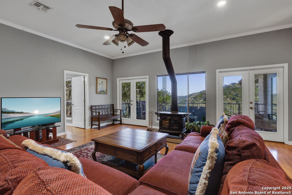 A stunning home in an unbeatable location! This pristine 3-bedroom, 2-bath, 3-car garage property offers breathtaking lake and hill country views, with direct backyard access to the boat ramp and Canyon Lake. From the serene private courtyard to the granite countertops and cozy wood-burning stove, every detail has been thoughtfully designed. This home is packed with extras, including a drip irrigation in the front yard, an oversized 3-car garage, a heated bidet in the master bath, fencing, gutters, a storage shed, additional attic insulation and front yard lighting. Relax and take in the scenery from the deck off the master bedroom or the living room. Don't miss your chance to experience this incredible lakefront retreat-schedule your visit today! Furniture, washer, dryer not included. Property is also listed for sale.