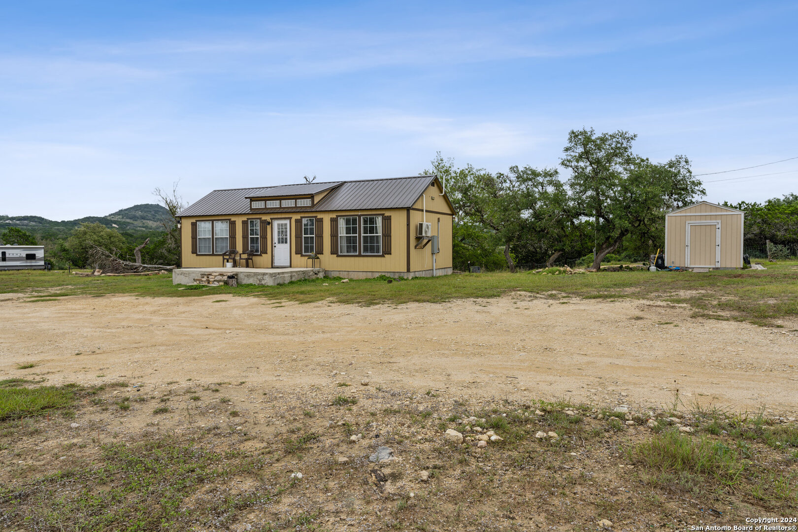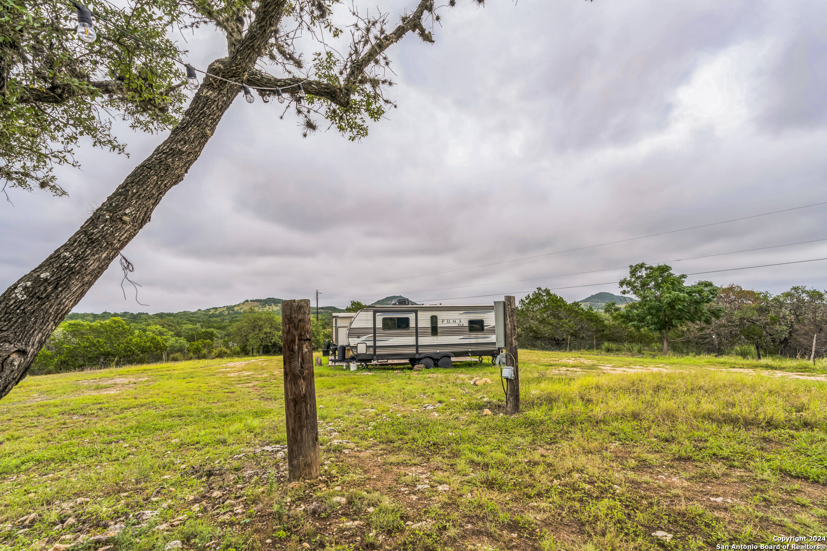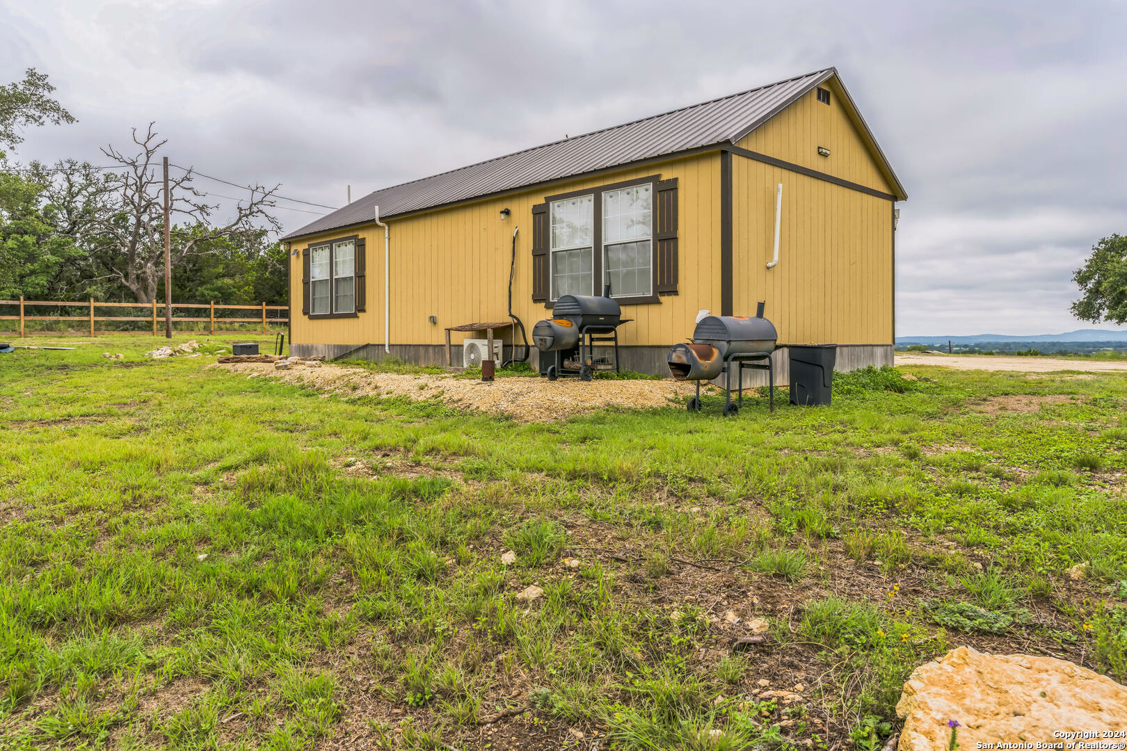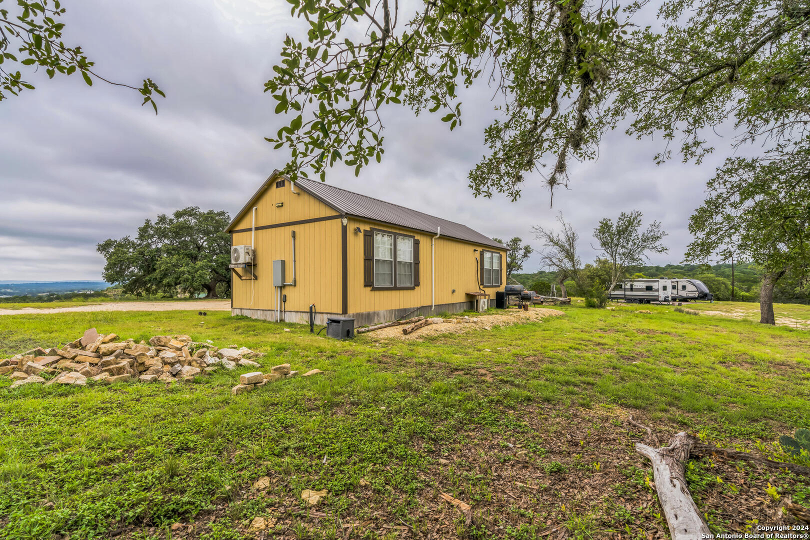 Welcome to your 3 acres of Hill Country paradise with breathtaking views in every direction! This stunning property is horse/animal friendly, has no HOA, and is fully fenced with the dwelling area gated. Newly built in the last 2 years, this Bandera gem is complete with 2 mini splits for heating and AC, a reverse osmosis system, an on-demand water heater, a water filtration system on the well, a brand new well house and storage building, in-ground septic, two electric poles, and a separate gate and back driveway for your RV or as a guest entrance. The RV area is ready for your recreational vehicles and camping toys with water hookups and two 30amp electrical connections. Amazing property to move into right away or to build your dream home on with Hill Country views for miles in all directions. Come see it today!