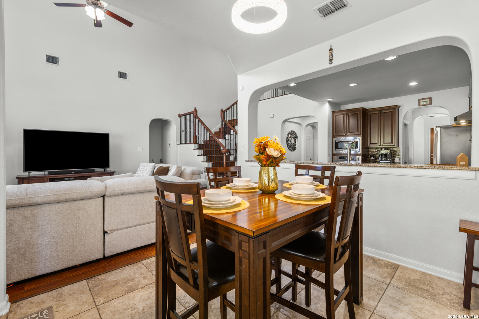 Set within the highly sought-after Vallitas at Cibolo Canyon community in North San Antonio, this exceptional two-story home offers the space, privacy, and lifestyle today's buyers are searching for. Positioned on an oversized cul-de-sac lot of over a quarter acre, the property is enhanced by a masonry privacy fence, creating a rare sense of seclusion while still being part of a vibrant, master-planned neighborhood. Step inside to a grand, vaulted entry foyer that immediately makes an impression. This versatile space easily functions as a formal dining room, ideal for hosting, while still maintaining a welcoming flow into the home. Just beyond, a private office and inviting living areas support both everyday comfort and a flexible work-from-home lifestyle. The heart of the home is a beautifully designed kitchen featuring built-in stainless steel appliances, gas cooking, generous cabinetry, and a butler's pantry, all seamlessly connected to the spacious living room. Here, a floor-to-ceiling stone fireplace anchors the space, creating a warm and elevated atmosphere filled with natural light. The downstairs primary suite offers a true retreat with dual walk-in closets and a spa-like bath complete with garden tub, oversized walk-in shower, and dual vanities. Upstairs, the layout continues to impress with a game room loft, dedicated media room, three additional bedrooms, and two full bathrooms, providing ample space for guests or growing households. Outdoors, the expansive backyard presents endless possibilities-room for a pool, outdoor kitchen, or custom entertaining space-all set against the privacy of your oversized homesite. Living in Vallitas at Cibolo Canyons means access to premier resort-style amenities, including a community pool, parks, playgrounds, walking and biking trails, and a residents' center. Just minutes away, you'll find the renowned TPC San Antonio Golf Club, home to PGA Tour events, along with luxury resort access at the JW Marriott Hill Country Resort & Spa. Conveniently located near Highway 281, Loop 1604, top-rated NEISD schools, shopping, dining, and major employers, this home combines luxury living in North San Antonio with everyday convenience.