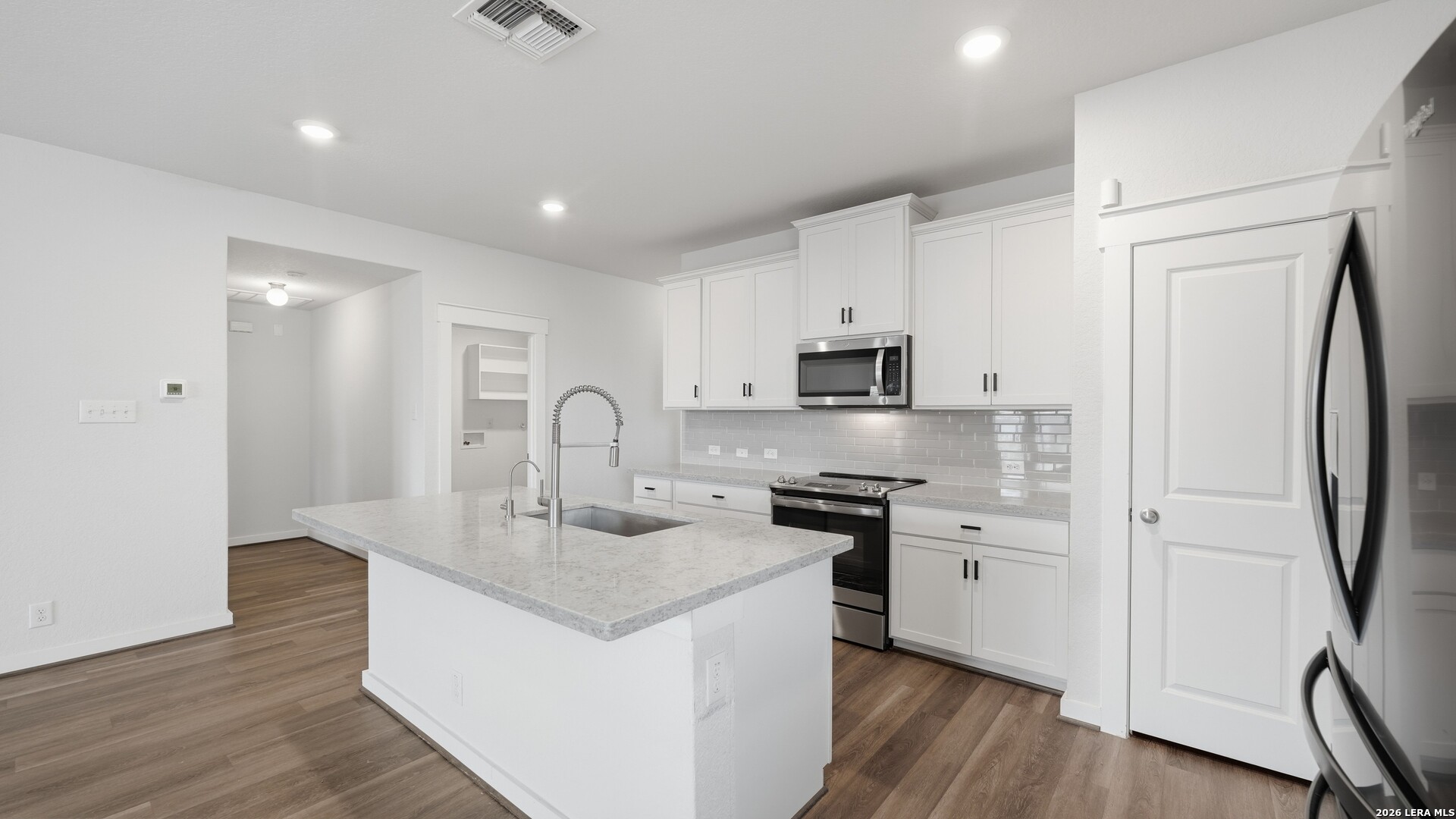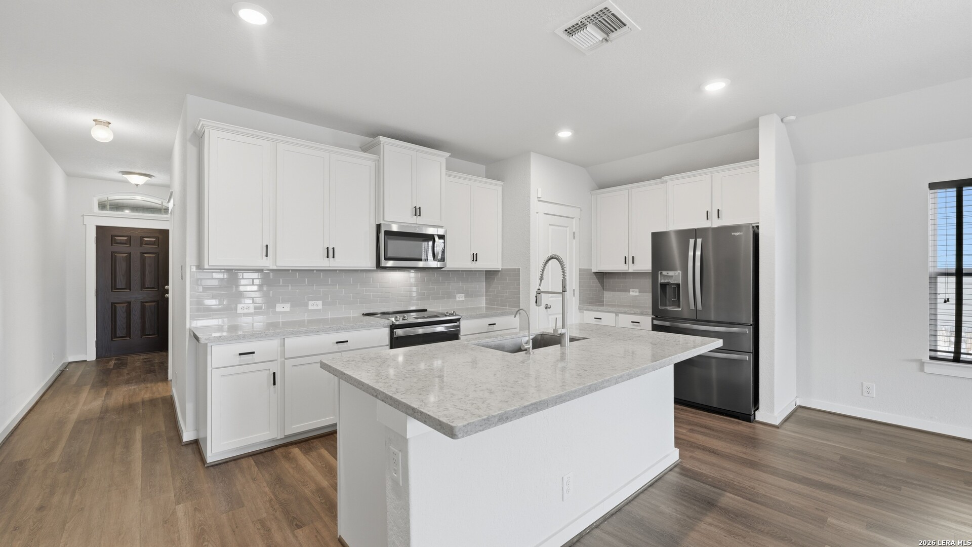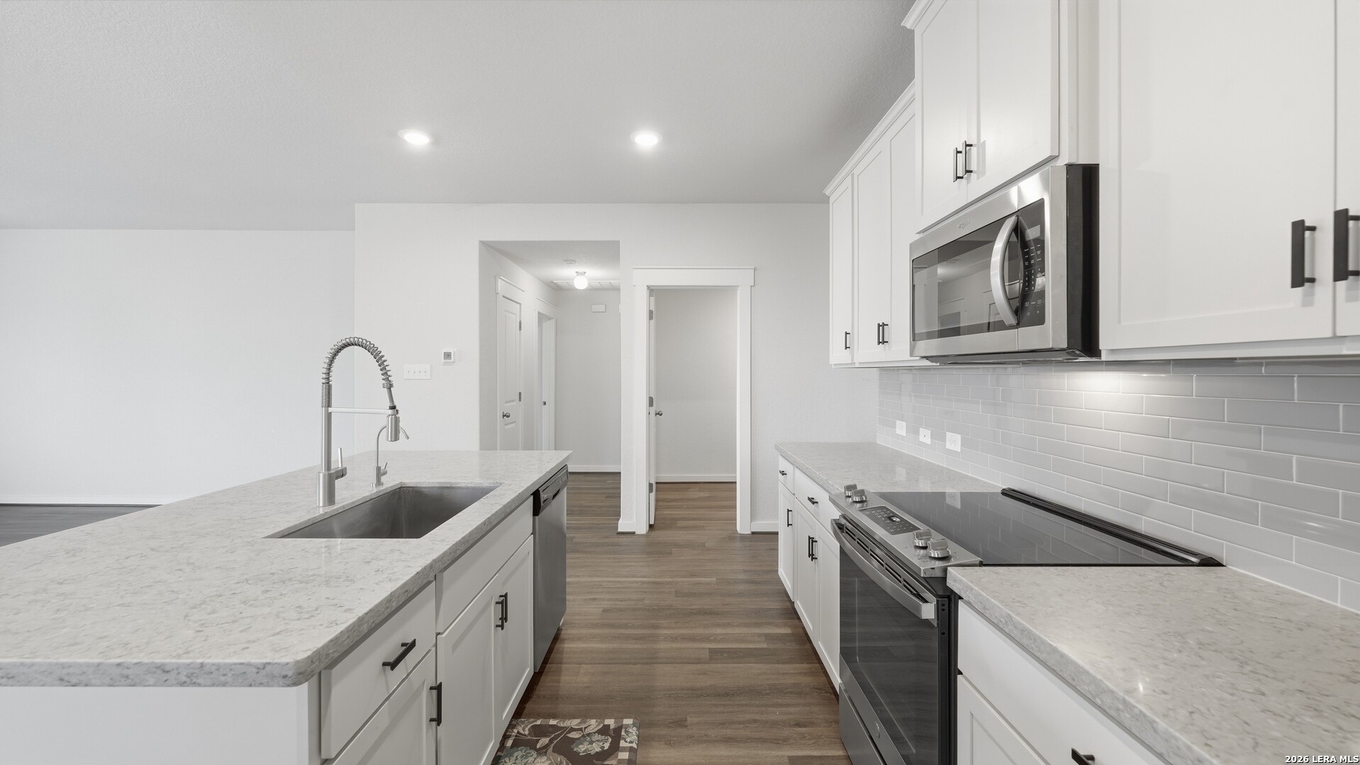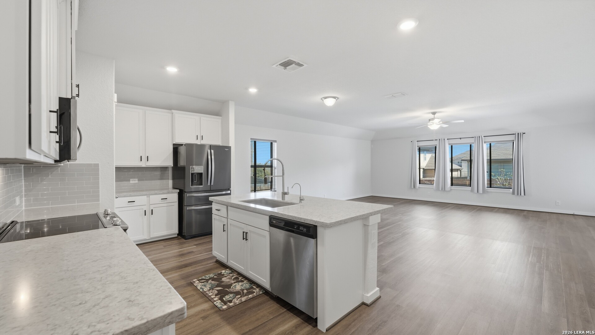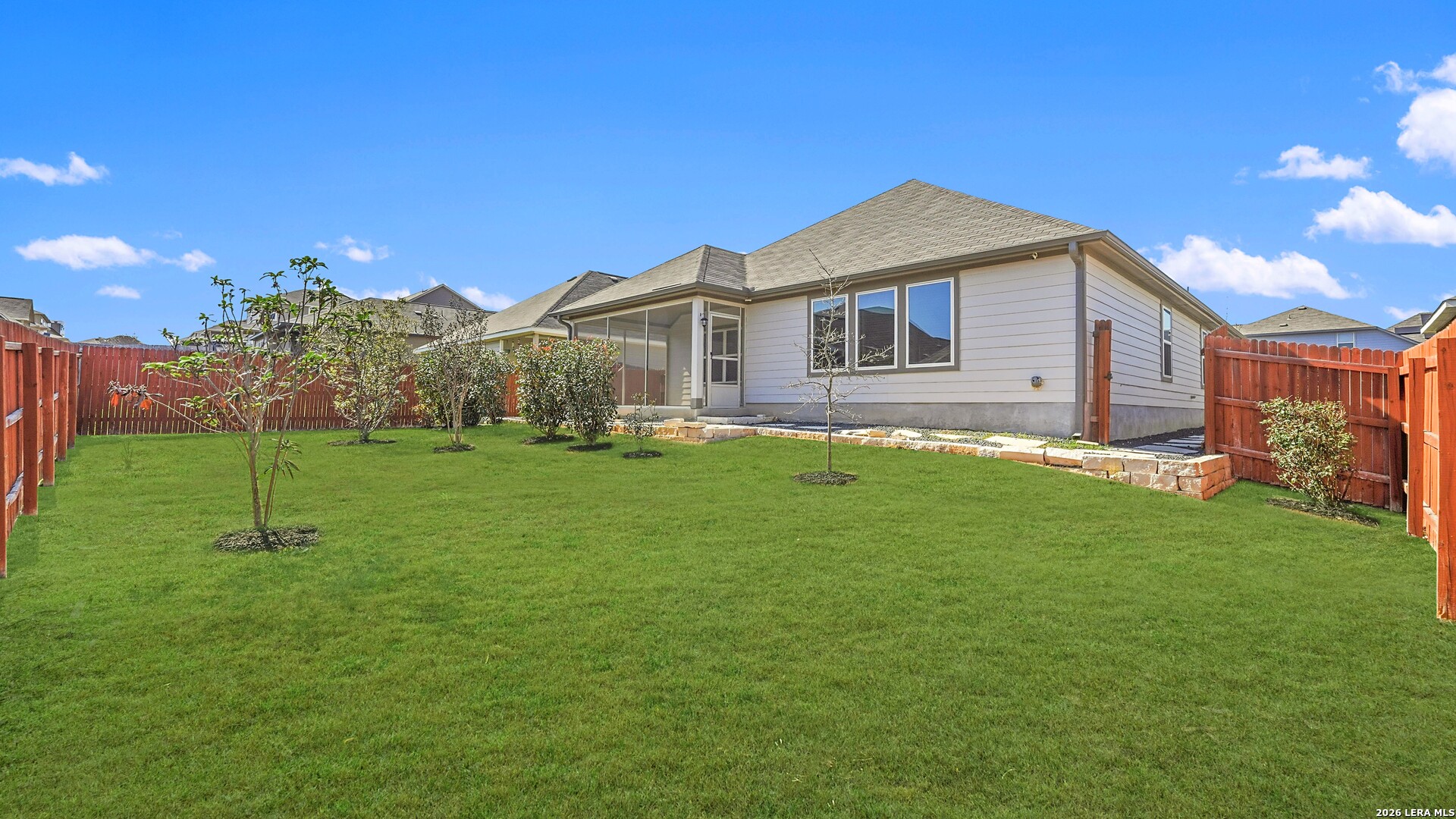 Thoughtful upgrades, abundant natural light, and comfortable everyday living come together at Cloudstone Retreat in the heart of New Braunfels. Inside, high ceilings and a bright open floor plan create an airy and welcoming atmosphere throughout the home. The spacious living area flows seamlessly into the kitchen and dining spaces, creating a natural setting for both daily living and effortless entertaining. The kitchen combines style and function with Corian countertops, a custom tiled backsplash, stainless appliances, recessed lighting, and a large island with sink and seating that anchors the space. The spacious primary suite offers a quiet retreat within the home and leads to a well-appointed bathroom featuring double sinks, a walk-in shower, and a generous walk-in closet that provides excellent storage and functionality. Additional features throughout the home include an advanced HVAC system, approximately 15 inches of insulation, and a state-of-the-art water softener system designed to support efficiency and long-term performance. The home is also equipped with an EV charging system, offering added convenience for electric vehicle owners. Outdoor living extends the comfort of the home. A professionally installed enclosed and screened-in back porch provides a relaxing place to unwind while overlooking the backyard. Custom stone pathways and thoughtful landscaping add charm to the outdoor space, complemented by a full gutter system, sprinkler system, and privacy fence. Residents of the community enjoy access to neighborhood amenities including a park, playground, and community swimming pool, offering opportunities to gather, relax, and enjoy the neighborhood lifestyle. Conveniently located near I-35, Cloudstone Retreat provides easy access to San Marcos, San Antonio, and Austin while remaining close to the shopping, dining, and charm of historic downtown New Braunfels and Gruene.