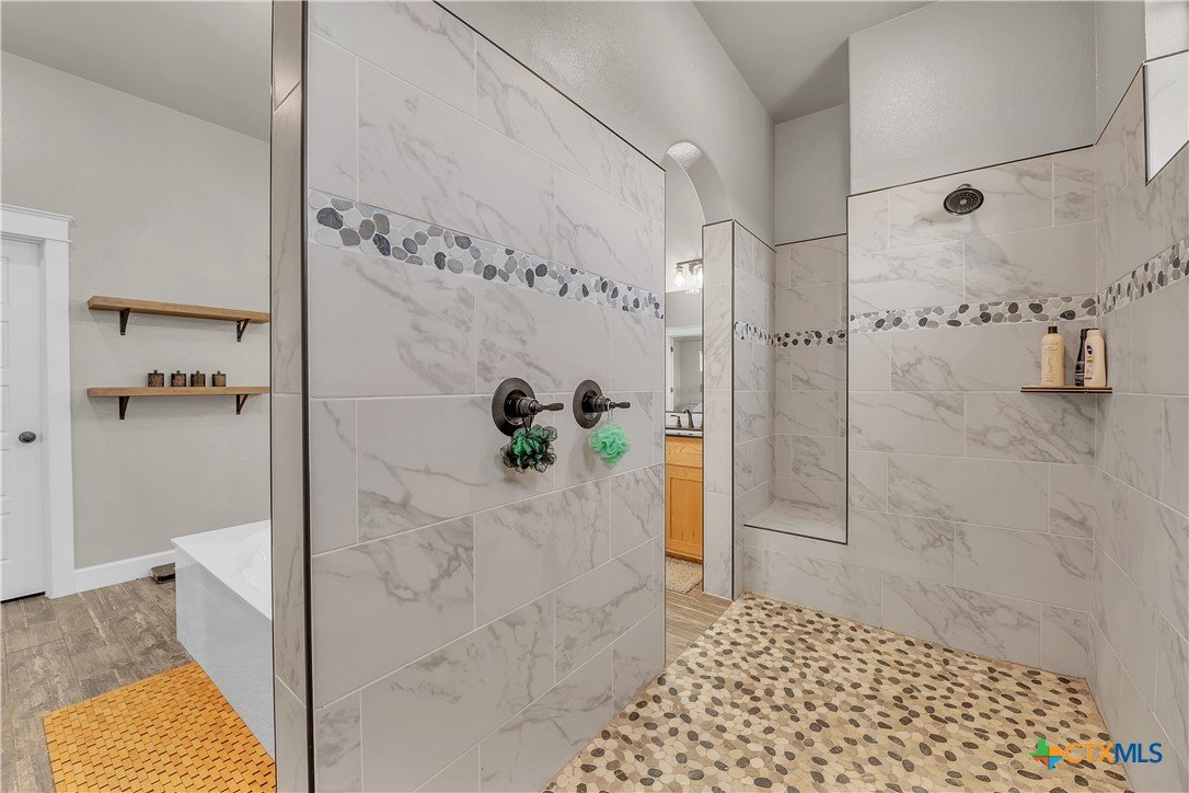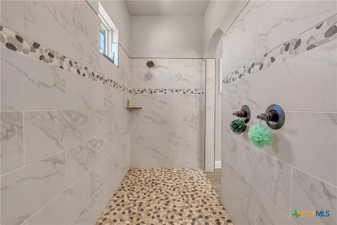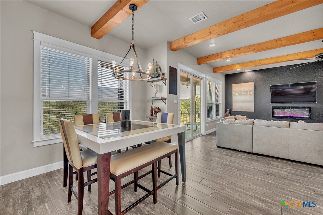A French Provincial home that blends timeless design with modern comfort. Inside, you’ll find spacious bedrooms featuring vaulted and lofted ceilings, light-toned carpet, recessed lighting, ceiling fans, and multiple windows that fill each space with natural light. The bathrooms are designed for relaxation, offering options such as a freestanding tub with chandelier, marble-finished showers, vanities, and generous closet space. The living area highlights architectural details including arched walkways, beam-accented ceilings, recessed lighting, and warm wood-style flooring. The kitchen is both functional and inviting, featuring light stone counters, pendant lighting, custom cabinetry, an island with sink, and an open-concept layout that connects seamlessly to the main living spaces. Step outside to enjoy the private terrace with wooded views, complete with a ceiling fan, hot tub, and ample outdoor living space for entertaining or quiet evenings. This home offers a balance of elegance and livability in a serene setting—ready to welcome its next owner. And with no HOA, you have the freedom to truly make this property your own. 2.99% Assumable loan