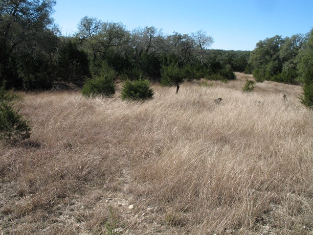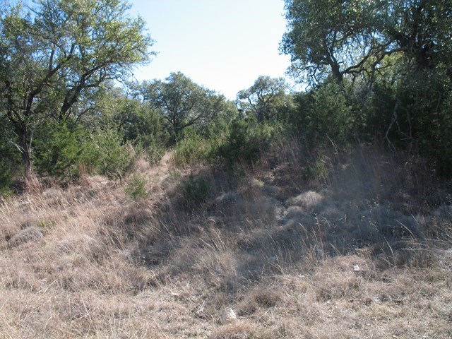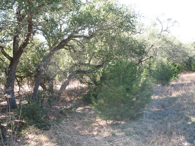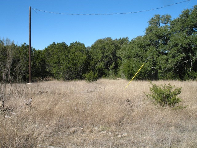 Lot is on left right inside gate. See Stakes. Nice flat building spots, some slight views, large oaks around, backs to a big ranch (fenced at back of property)Some clearing done a while back. Nice property for horses too. Reasonable restrictions. 1800 Sq Ft. for a one story & 2200 Sq Ft for a two story. Gated subdivision close to town. This is a fast growing area and will not last. Septic tank is required. Community Water. No sign on property. Gated area. Wonderful small town with quality schools.