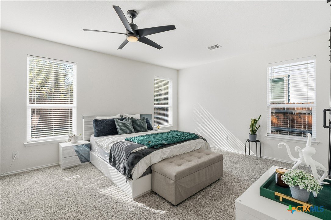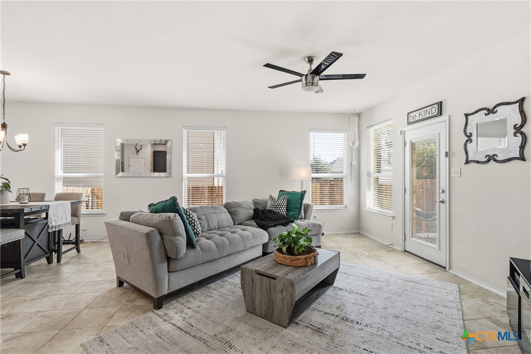 Welcome to 365 Conchillos Dr in the desirable La Conterra community of Georgetown. This modern single-story home, built in 2019, offers over 1,700 square feet of thoughtfully designed living space. The open-concept layout seamlessly connects the living, dining, and kitchen areas, creating an inviting space for everyday living and entertaining. The spacious primary suite provides a peaceful retreat with a walk-in shower, separate soaking tub, and large walk-in closet. Two additional bedrooms and a well-appointed guest bath offer comfort and flexibility for family or guests. Contemporary finishes include hard tile floors in the main living areas, plush carpet in the bedrooms, stylish fixtures throughout, and garage ceiling storage racks for additional organization. The covered back patio overlooks a private yard where you can relax or host outdoor gatherings. Residents of La Conterra enjoy access to a neighborhood pool, multiple nearby parks, and convenient walking and bike paths. Close proximity to a school bus stop adds everyday ease for families. With its great location, community amenities, and move-in ready appeal, 365 Conchillos Dr offers the ideal blend of comfort and convenience.