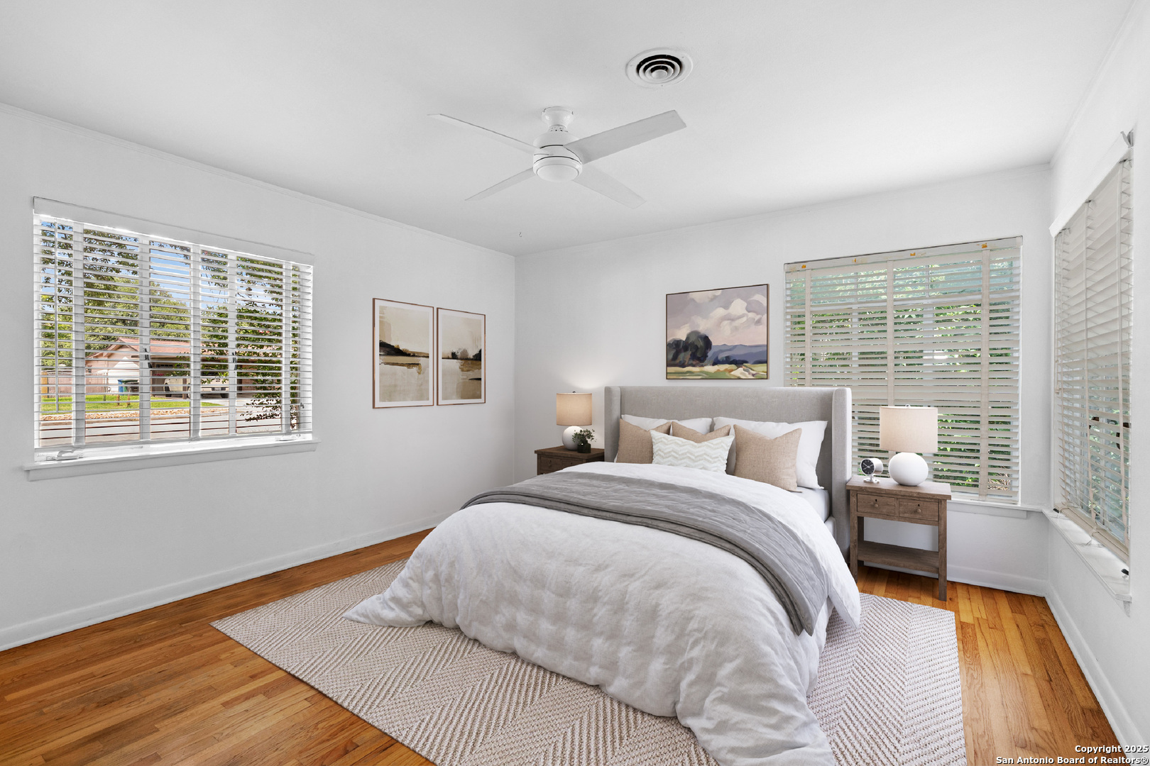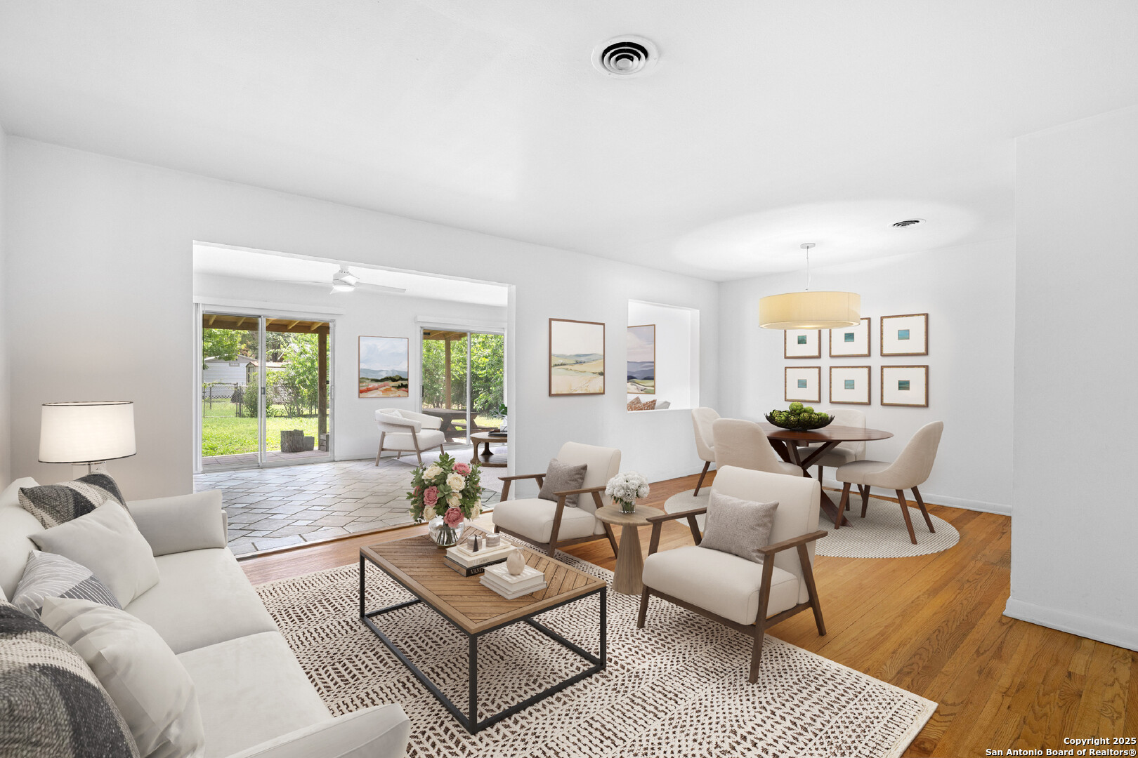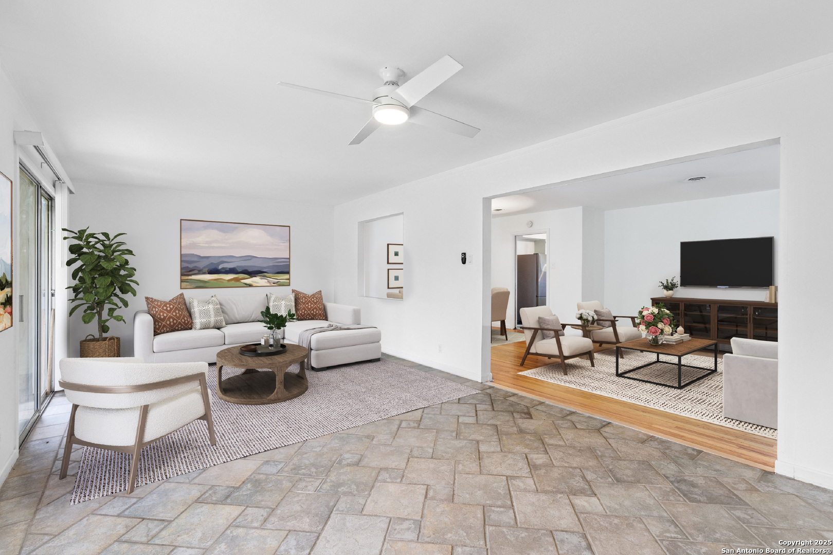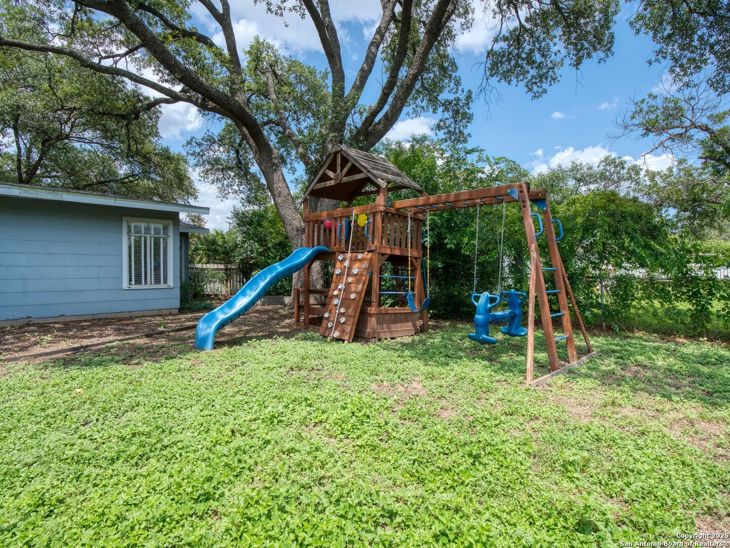 Updated with taste to accentuate the 1955 cool vibes! Beautiful original oak hardwood floors, updated kitchen with new flooring, high-end gas stove range, and stainless steel refrigerator, plus a really spacious pantry. A light-filled family room graces this 3/2 home, making it a really comfortable floor plan. Large backyard with a fun playscape and a nice covered back porch for fun gatherings. Recent HVAC and electrical in 2020. Deep garage with laundry room and a workshop bench. Close to 410, North Star Mall, and the Quarry. Sellers offering $5,000.00 Sellers Concessions to a Buyer.
