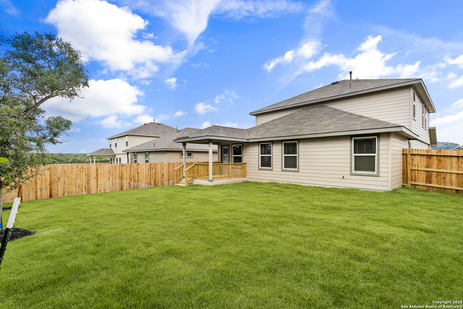 Beautiful home available for lease in a stunning community! This brand-new home in Copper Canyon offers 2,539 square feet of spacious living with 5 bedrooms, 2.5 bathrooms, and a 2-car garage. The main floor features a formal dining area, family room, kitchen with a central island, and the primary bedroom downstairs. Upstairs, you'll find a versatile loft, four bedrooms with ample storage, and a full bathroom. Noteworthy features include 9-foot ceilings, faux wood blinds, luxurious vinyl plank and ceramic tile flooring, granite countertops, a covered patio, and a sprinkler system. Community amenities are impressive, with a swimming pool, park/playground, and sports court just down the street, along with other features perfect for families. Located just a short distance from San Antonio, Spring Branch, and New Braunfels, and close to shopping, restaurants, golf, entertainment, outdoor activities, and the Hill Country. Schedule your showing before this beautiful home is gone!