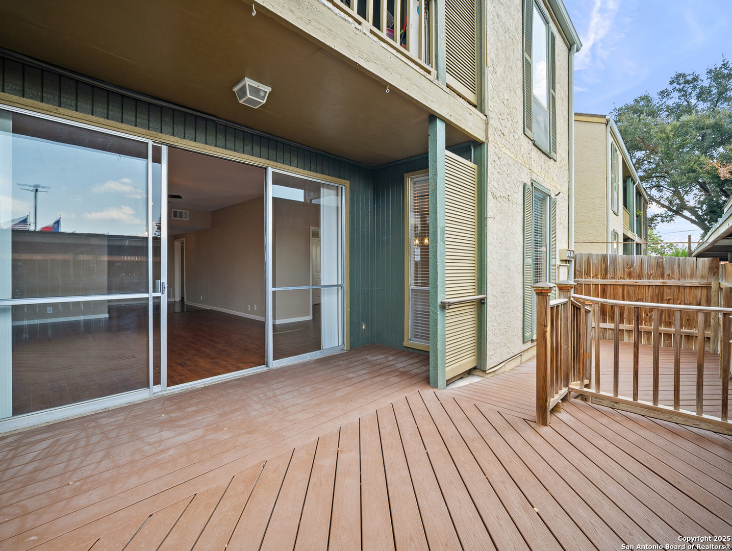 Freshly renovated ground-floor condo with modern upgrades offers convenience and security for a true lock-and-leave lifestyle! This 2BR/2BA unit in The Heather features new flooring and fresh paint throughout, updated lighting, granite counters, and stainless appliances. Enjoy high ceilings, a spacious living room and dining room. Sliding glass doors open to a large, partially covered deck-perfect for indoor/outdoor living. Step inside to find a beautifully updated kitchen with sleek granite countertops, built-in oven, microwave, dishwasher, and smooth-surface cooktop. The primary suite offers dual closets and an elegant bath with a walk-in tile shower, granite vanity, and built-in shelving. Both bathrooms showcase contemporary fixtures and finishes. HVAC replaced just 5 years ago for added peace of mind. The Heather is a controlled-access community with a sparkling pool, mailroom, and onsite management. Located near Northeast Baptist Hospital, Saint Mary's Hall, and with easy access to the San Antonio International Airport, North Star Mall, Fort Sam Houston, dining, shopping, and Salado Creek Greenway/Tobin Park trails.
