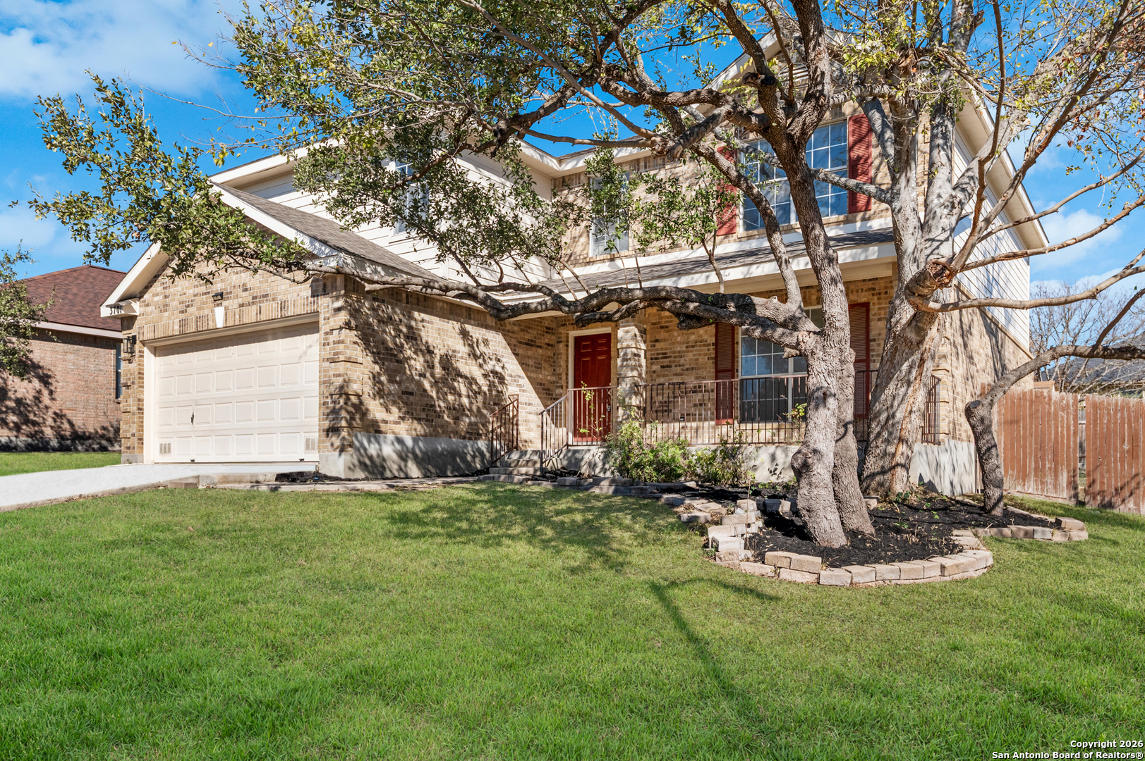 Welcome to 3701 Marietta Ln, a beautifully updated home on a spacious corner lot in the gated community of Carolina Crossing in Schertz, Texas. This move-in-ready property features fresh finishes, new flooring, and a bright open-concept layout ideal for both everyday living and entertaining. The updated kitchen offers quartz countertops, a central island, modern hardware, and ample cabinetry, flowing seamlessly into multiple dining areas and the main living space with a cozy fireplace. Upstairs, a large second living area provides flexible space for a media room, office, or playroom, while all bedrooms are privately situated with fresh carpet throughout. The oversized backyard with mature trees and a covered patio creates the perfect setting for outdoor gatherings, pets, or relaxing evenings. Conveniently located near I-35, Randolph Air Force Base, The Forum at Olympia Parkway, H-E-B Plus, and shopping, dining, and entertainment, and zoned to highly rated Schertz-Cibolo-Universal City ISD. Additional highlights include a two-car garage, updated lighting, and a low-dues HOA with controlled access. A rare opportunity to own a well-updated home in one of Schertz's most desirable gated neighborhoods.
