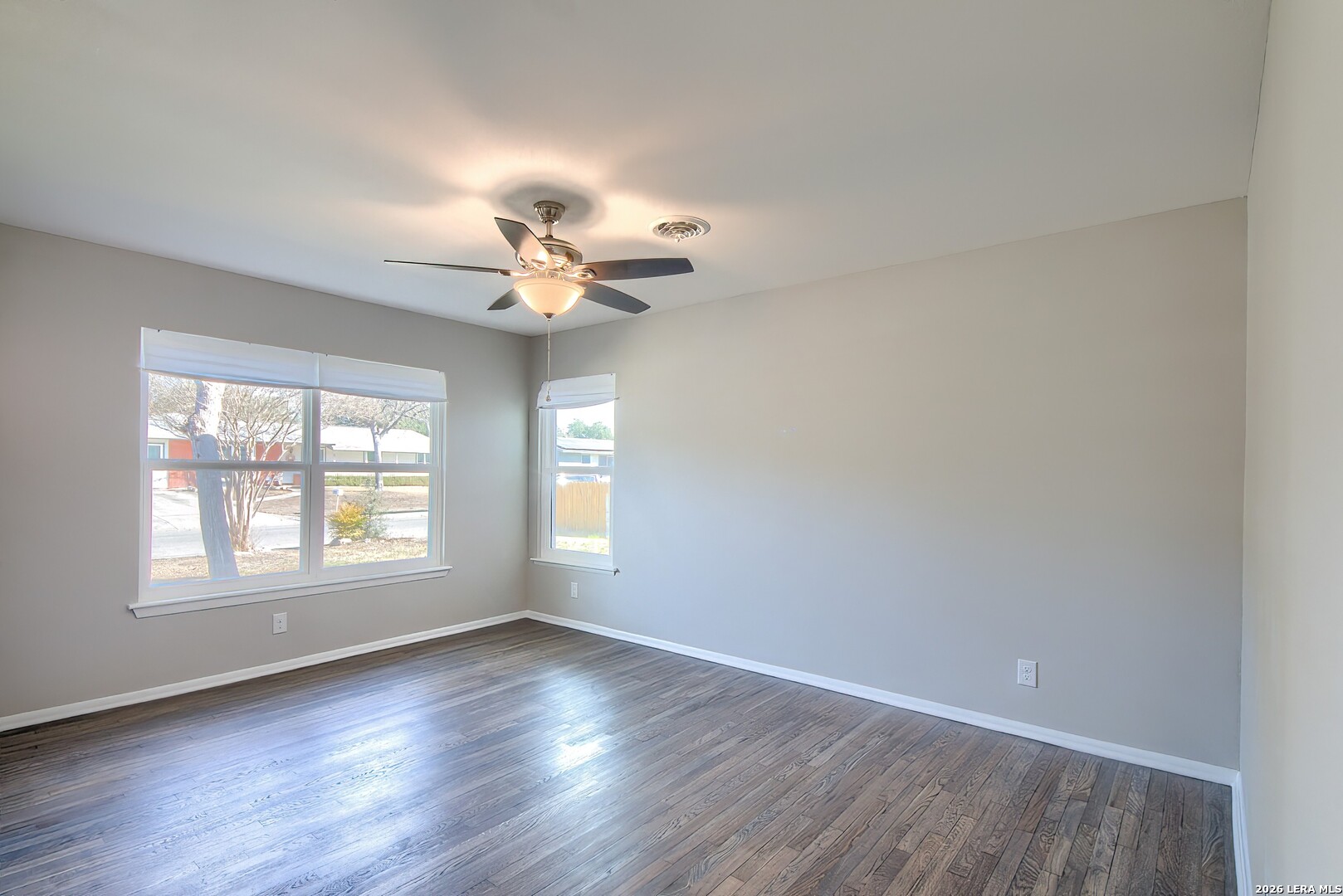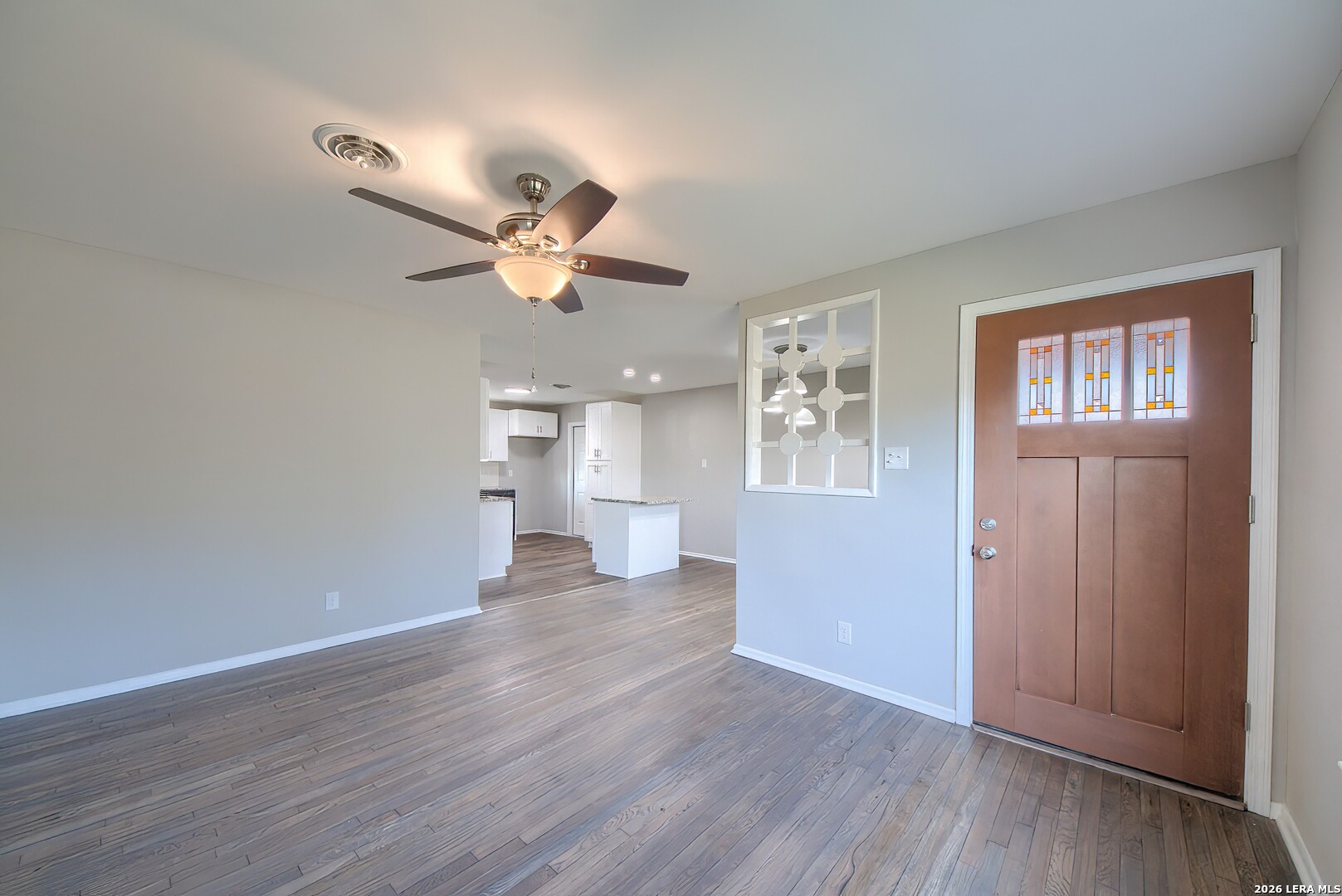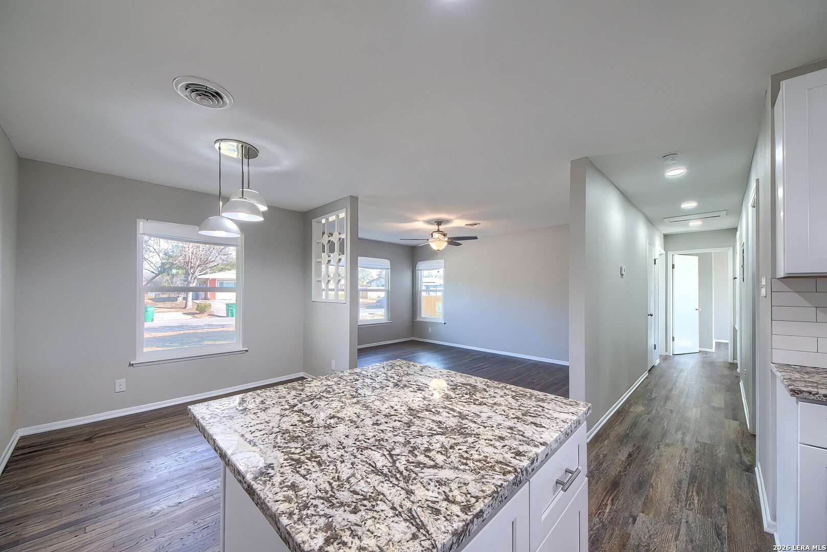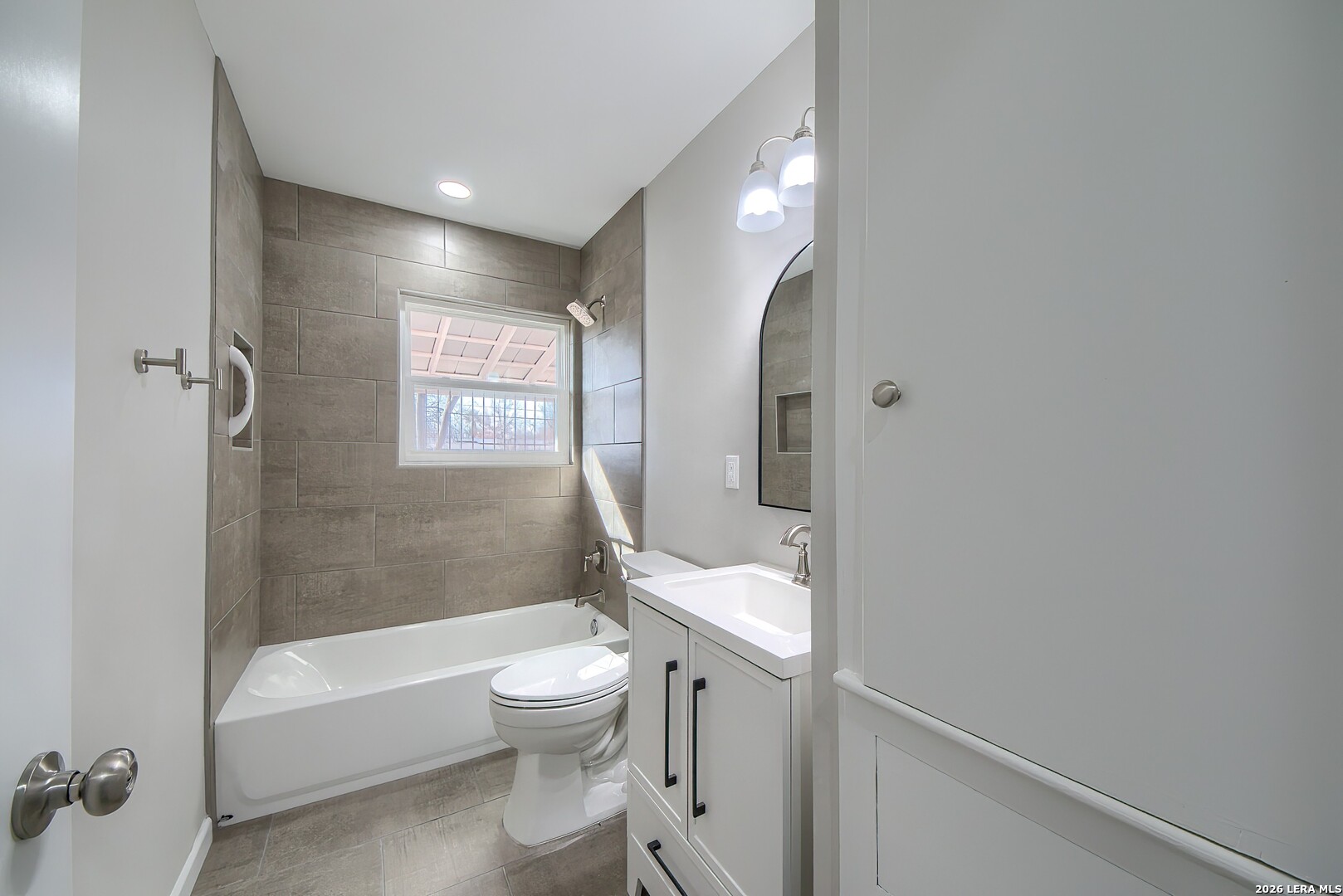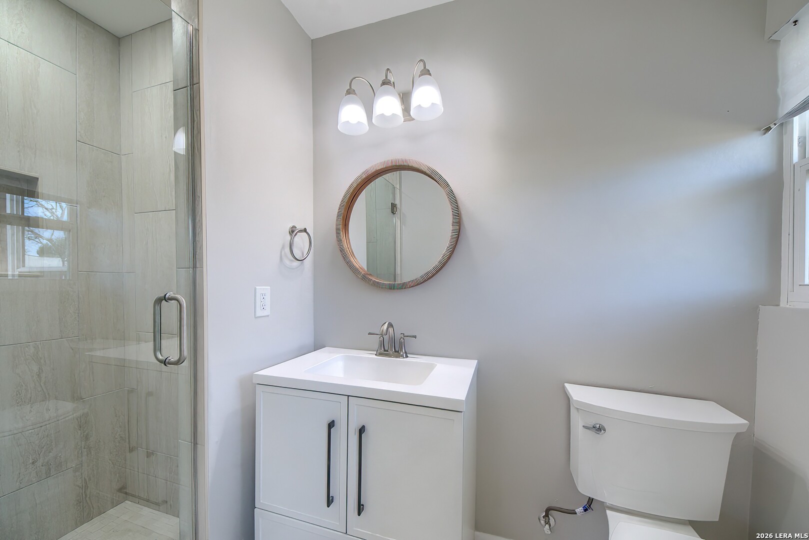 Beautifully updated mid century home in desirable northeast neighborhood. Home is close to Ft Sam Houston, SAMMC, Randolph AFB, shopping and major freeways. Original living room oak wood floors brought back to great condition. Kitchen and bedrooms have waterproof laminate flooring. The kitchen has new cabinets, granite, deep stainless steel sink and range hood. Kitchen island has overhead lighting, storage and room for 2 bar stools. Both bathrooms have been completely remodeled. Primary bathroom has a walk-in shower with rimless glass door. The large covered porch will provide shade and is great for entertaining. Windows are double pane. Garage has a new door and room for storage. Cash or owner finance.