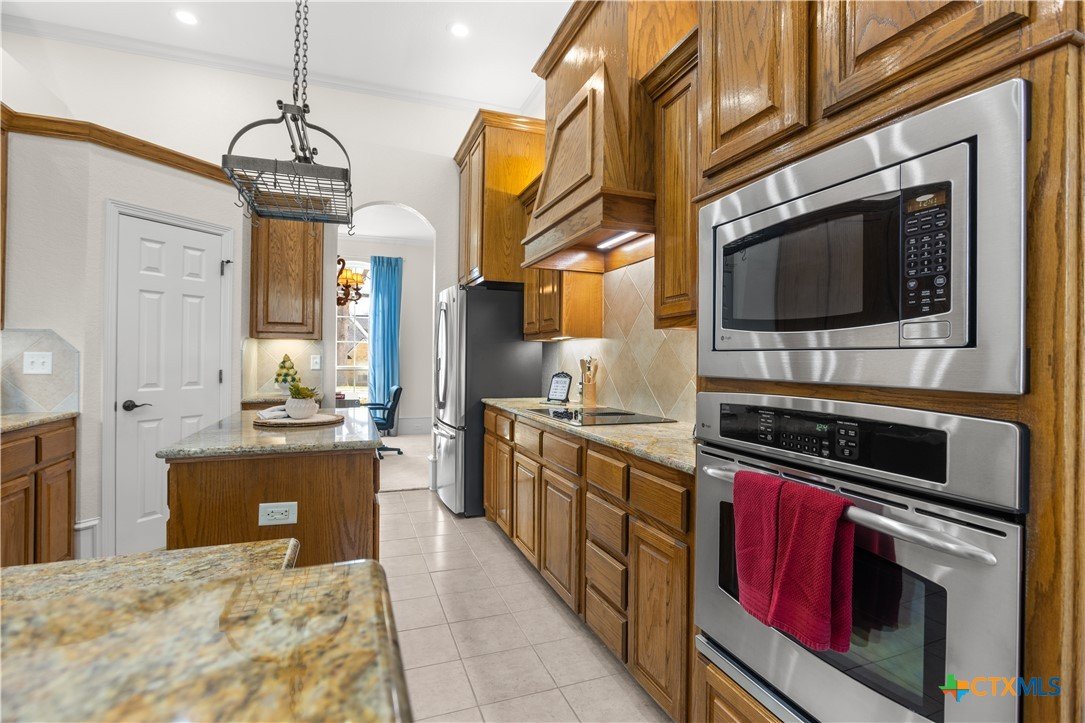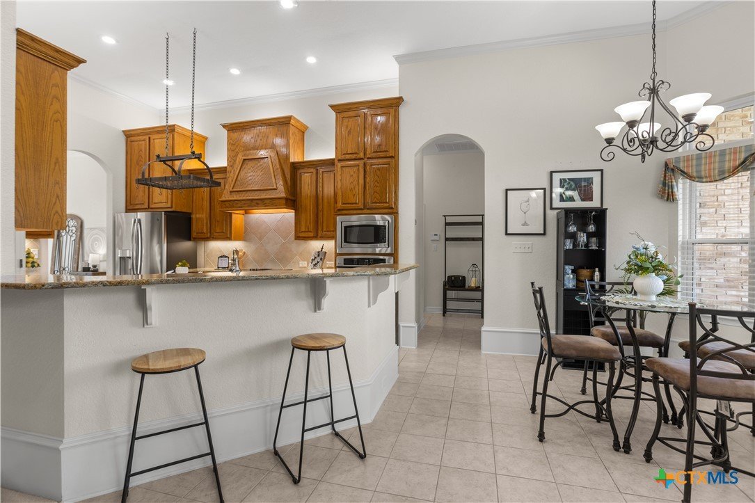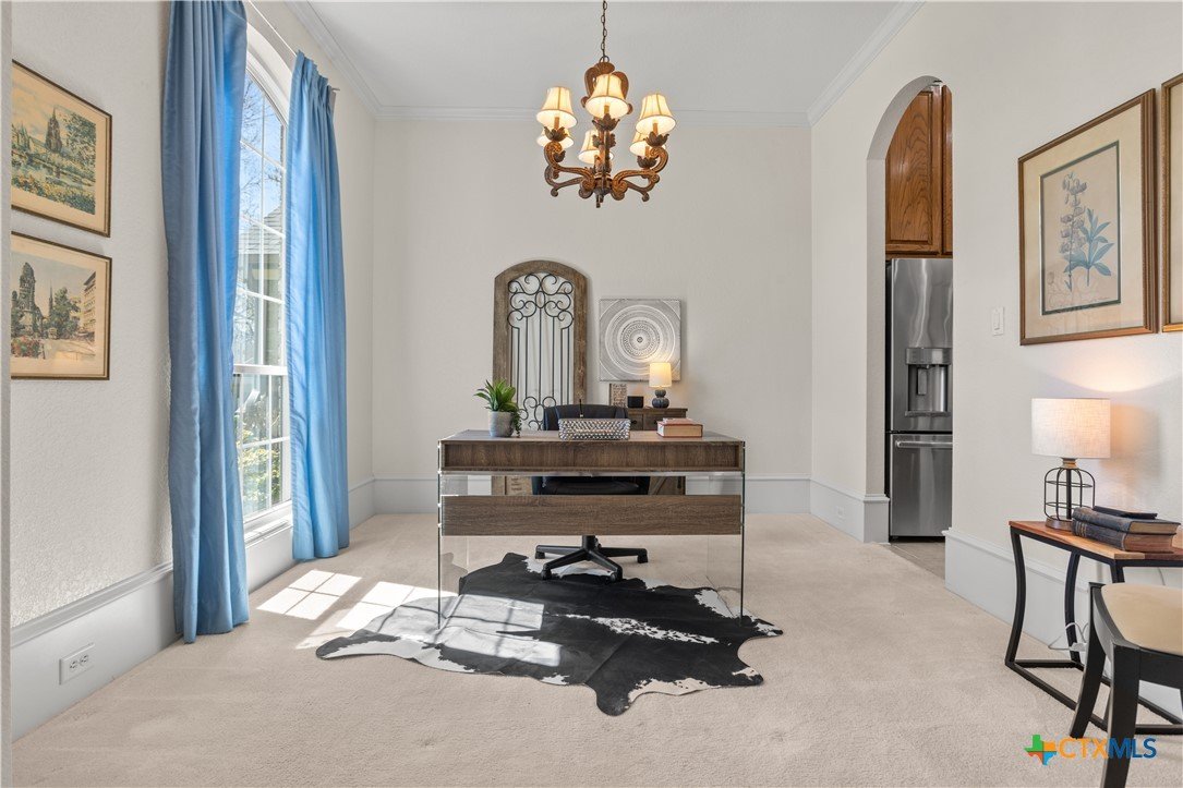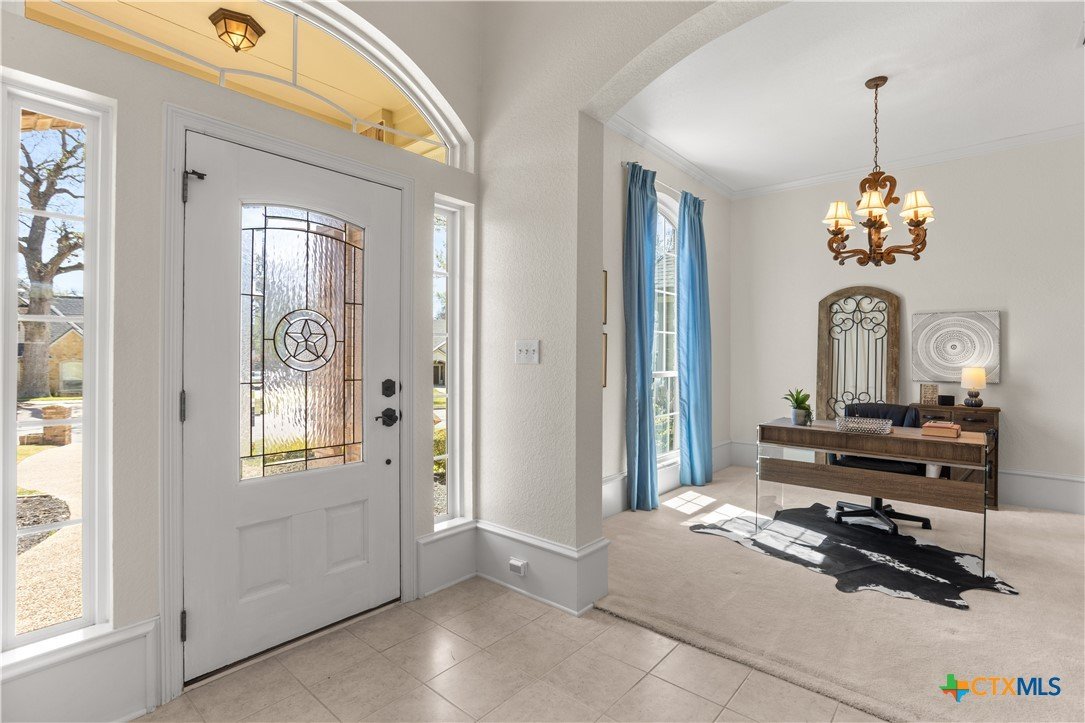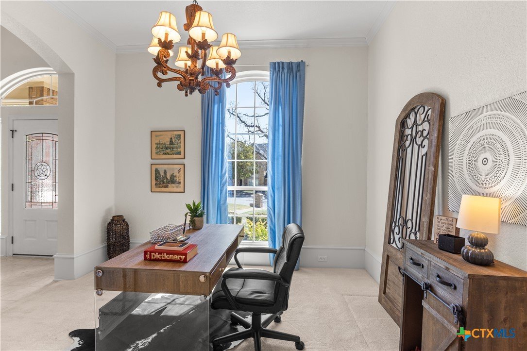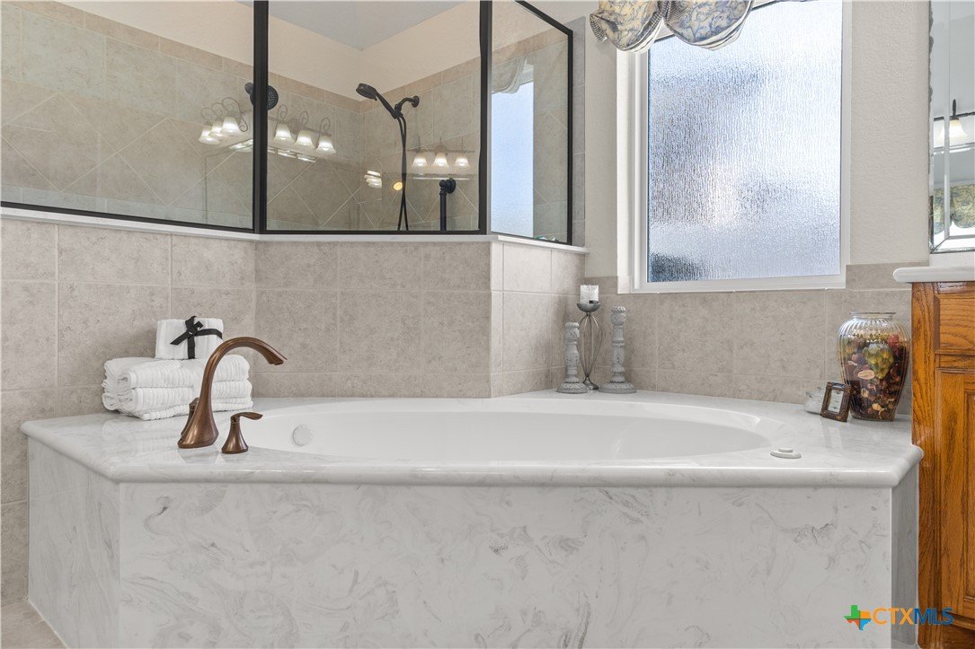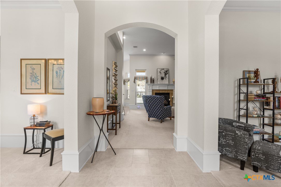 Step into this elegant home designed for living and savoring every moment. This beautifully maintained single-story residence offers four spacious bedrooms, three thoughtfully appointed baths, and a generous 3-car garage, each detail reflecting the care and intention of its original owners, who chose this highly sought-after neighborhood as the perfect setting to bring their vision to life. The central kitchen offers granite counters, breakfast bar, walk-in pantry, elegant cabinetry, island and a pot rack. The refrigerator remains. A custom-designed gas fireplace, crafted at the owner’s request during construction, anchors the living space with both beauty and comfort, offering a cozy glow on cool evenings. Tucked quietly at the back of the house, the primary suite is a sanctuary all its own. Here, a spa-like bath awaits, complete with a jetted tub, separate vanities, walk-in shower and a dielectric TV mirror. A large walk-in closet provides ample space, while a graceful window and a seating area offer the perfect nooks for reflection. The home’s layout continues to impress with a private guest bedroom featuring its own en suite bath, while two additional bedrooms share a full hall bath. A charming front room adds flexibility, ideal as a second living area, a refined home office, or a quiet retreat. From the moment you arrive, the home’s curb appeal captures your attention. A beautifully designed pathway leads you to the front door, hinting at the elegance and comfort that lie within. Every corner of this home speaks to exceptional care, thoughtful design, and quiet lifestyle. Outside, the residence is embraced by lush, mature trees and thoughtfully designed landscaping, creating a sense of privacy and serenity in the back yard. The positioning of the homes within the neighborhood enhances this secluded, almost retreat-like atmosphere, making every return home feel like an escape. Additionally, Woodbridge Creek's clubhouse and pool are steps away on Creekview Trail.