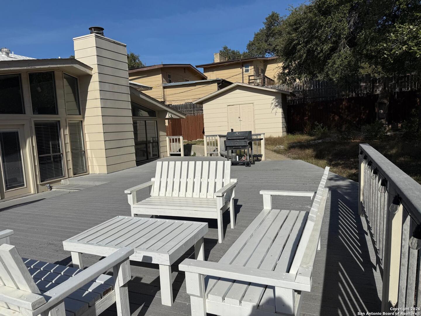 Awesome, illuminated, and updated two-story home on the corner in The Summit of Colonies North. In immaculate condition and move-in ready, exceptionally clean and well maintained property. Mature oaks with a beautiful and huge front and back yard, with a charming big deck, the shaded backyard feels like a private park. Designed spaces with five bedrooms (master is huge) and four full bathrooms. Huge and renovated laundry room for two washers and two dryers. New lighting, accessible design that works well for a big family or roommates. Design with smooth connection from the living and dining areas to the outdoor patios. The kitchen features granite counters, and a comfortable breakfast area. Enjoy a peaceful, established neighborhood with quick access to I-10, 410, St. Matthew, Medical Center, USAA, UTSA, La Cantera, The Rim, and Northside ISD schools. A must see property, don't miss this opportunity. FURNISHINGS ARE EXCLUDED FROM THE PURCHASE PRICE, HOWEVER THE SELLER IS OPEN TO NEGOTIATING THE SALE OF SOME OR ALL ITEMS.