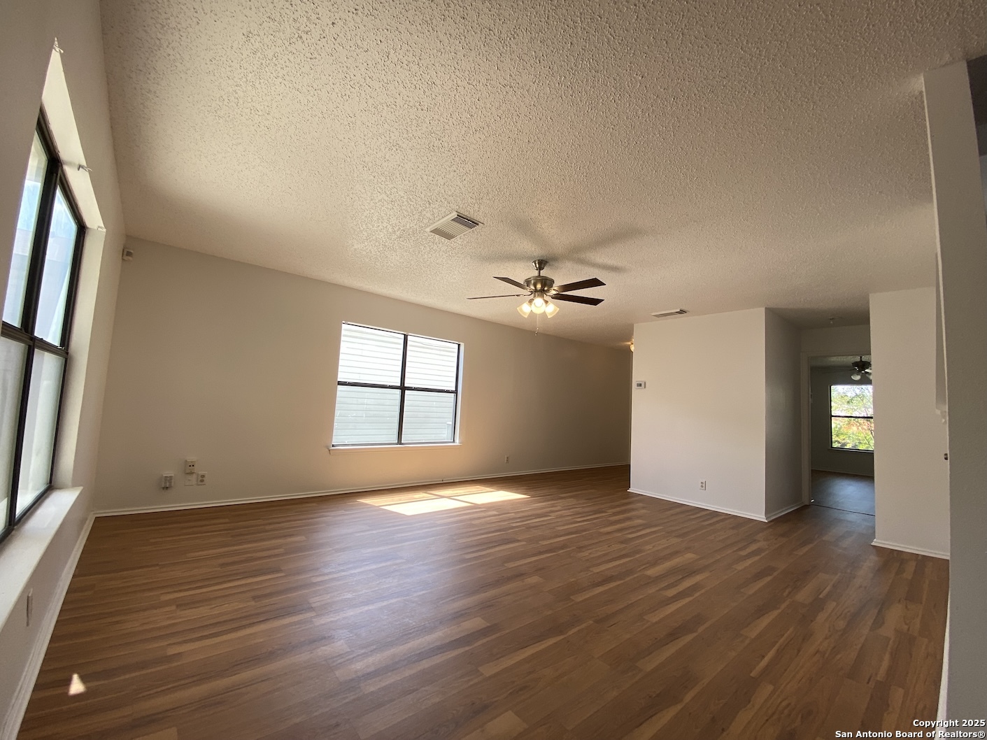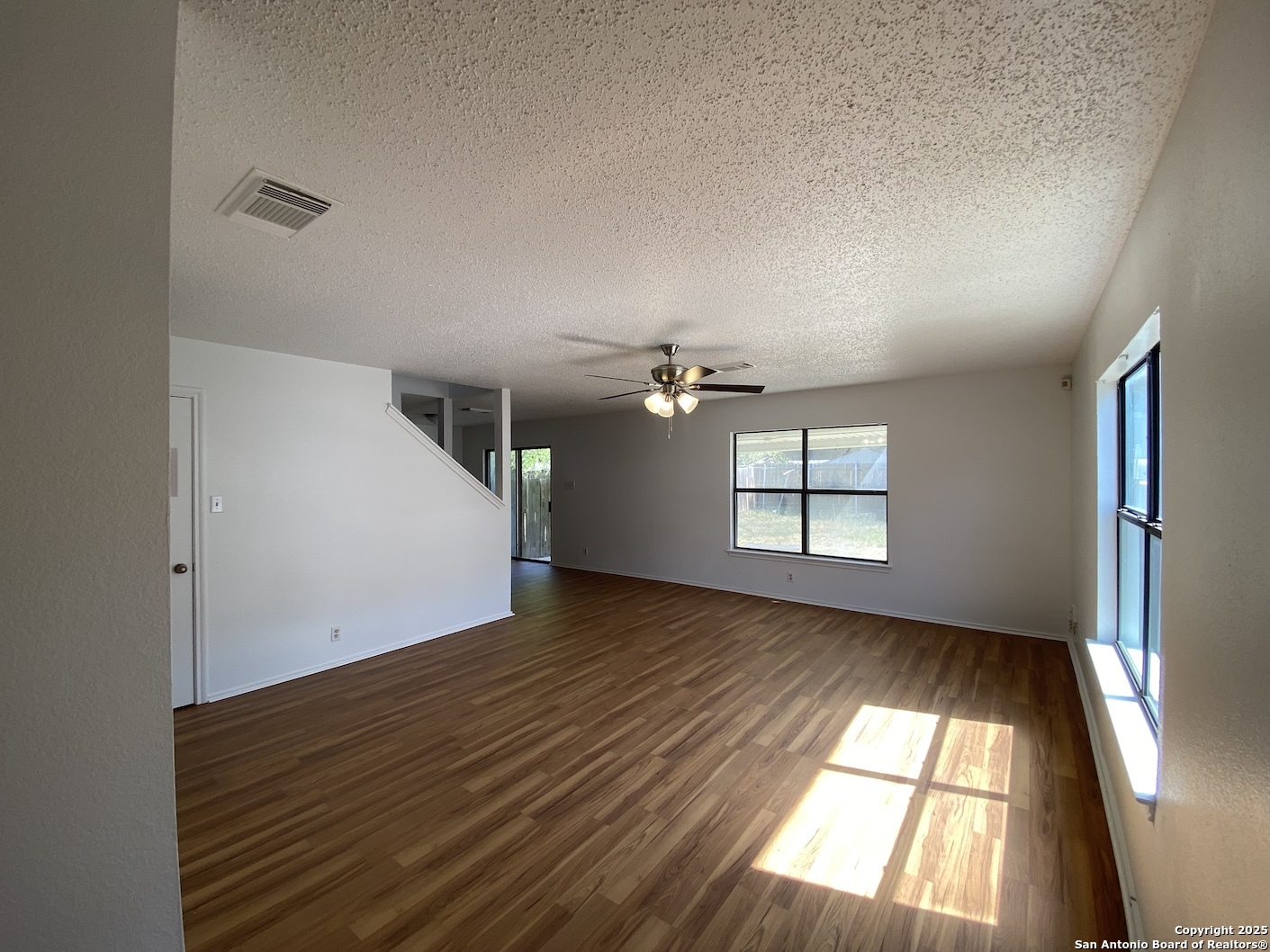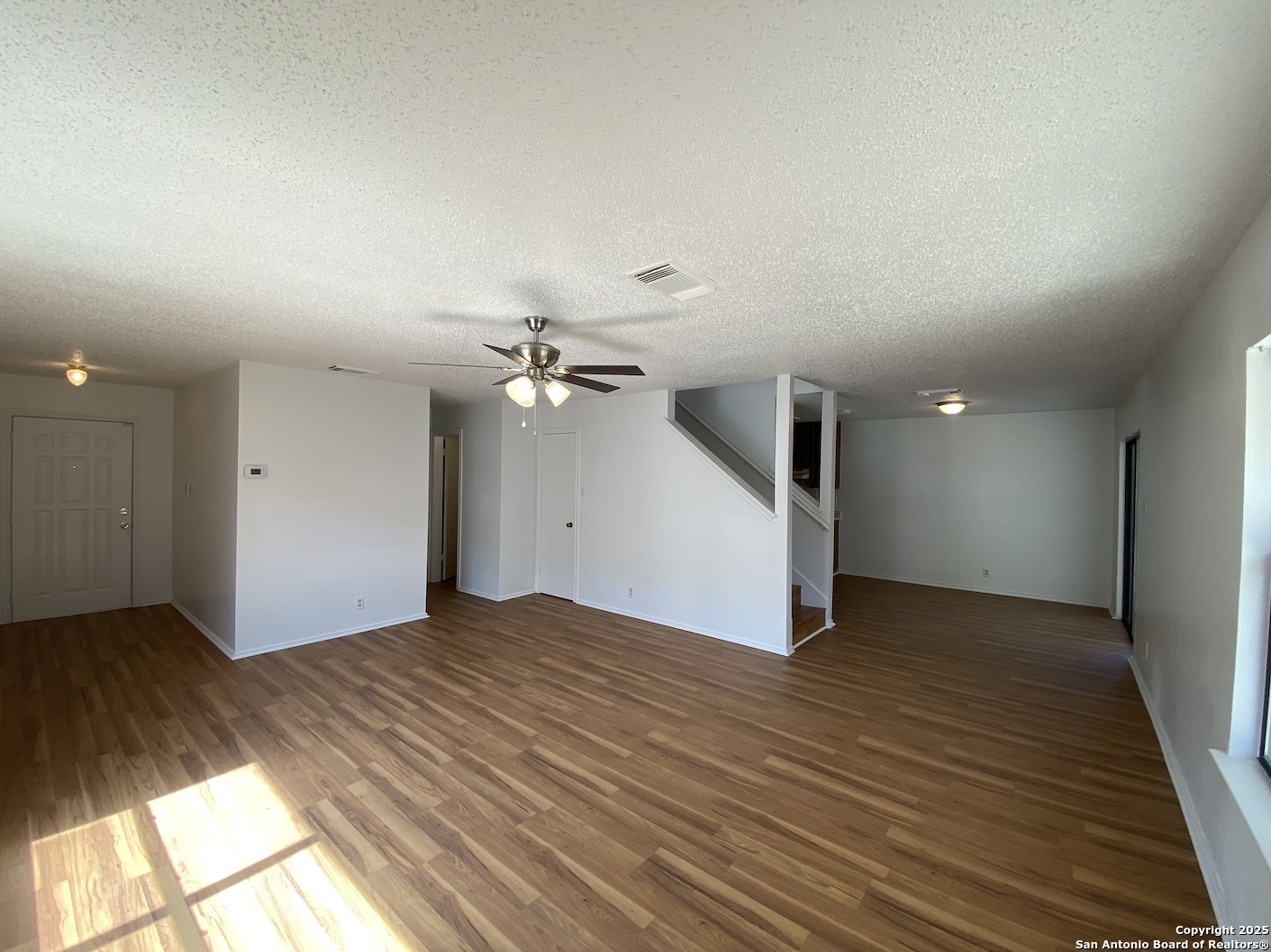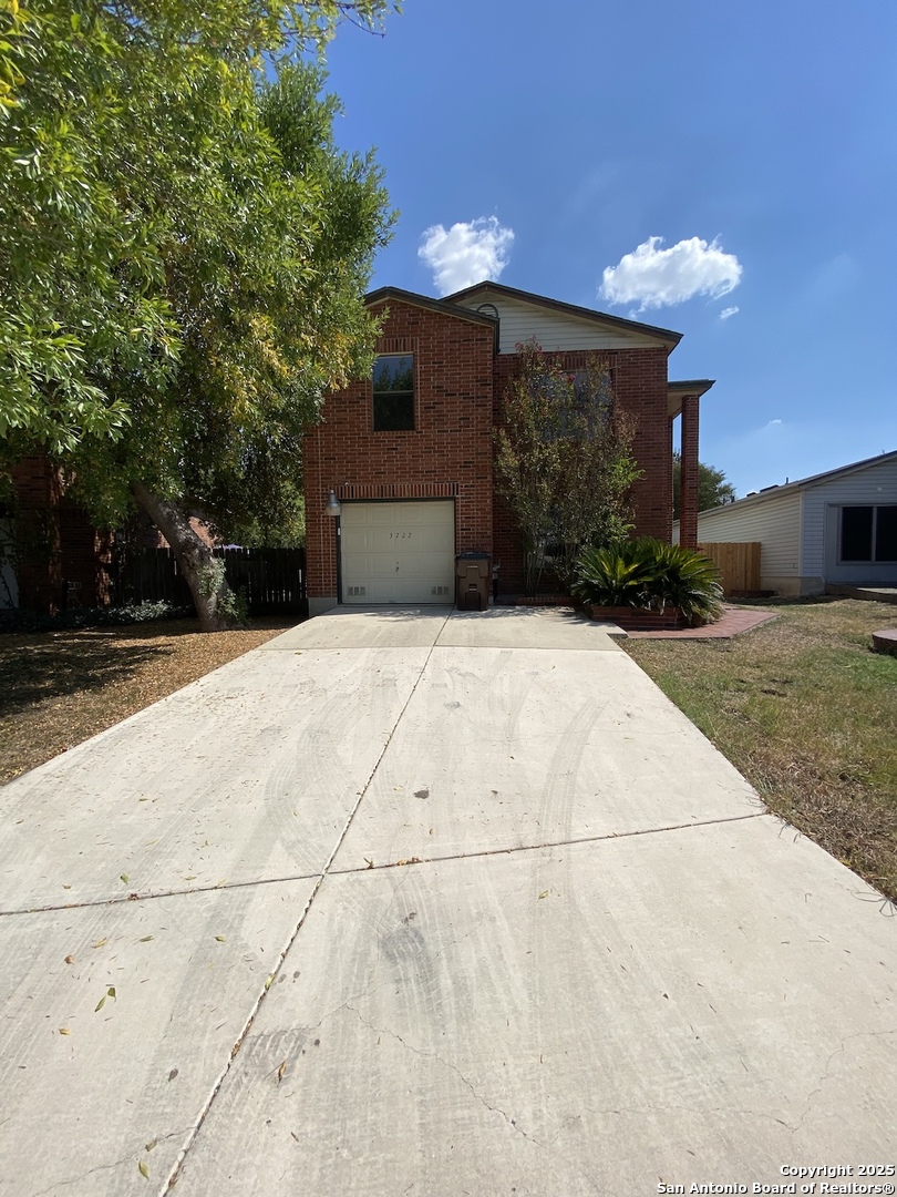 This charming two-story home is perfectly located with quick access to Loop 410 and I-10. MOVE -IN READY!! Designed for comfort and efficiency, this beauty features SOLAR PANELS to help keep your home cool in the summer and warm in the winter-without stretching your wallet! Step inside & fall in love with the fresh new flooring, crisp interior paint, and stylish updated fixtures that give this home a bright, modern feel. The open-concept layout offers a seamless flow from the spacious living area into the dining room and kitchen. The laundry room is conveniently located right off the garage for easy access. The primary bedroom is tucked downstairs and includes an attached Jack and Jill bathroom, offering both privacy and convenience. Upstairs, you'll find 3 generous bedrooms-each with its own walk-in closet and new ceiling fans- a spacious family room PLUS a versatile flex room that's perfect for a home office, or playroom. (possible 5th bedroom with closet).Step outside and enjoy the MASSIVE covered slab patio, ideal for relaxing or entertaining guests. With a brick and hardy exterior, one-car garage, and thoughtful upgrades throughout, this home blends comfort, style, and VALUE in one beautiful package.