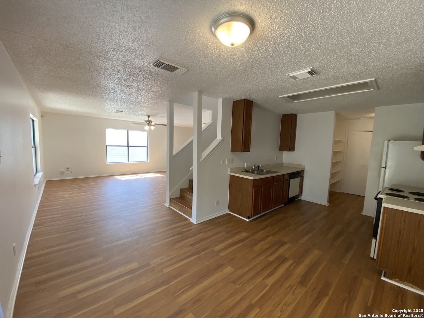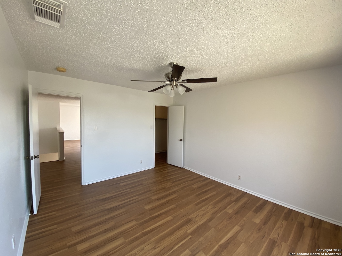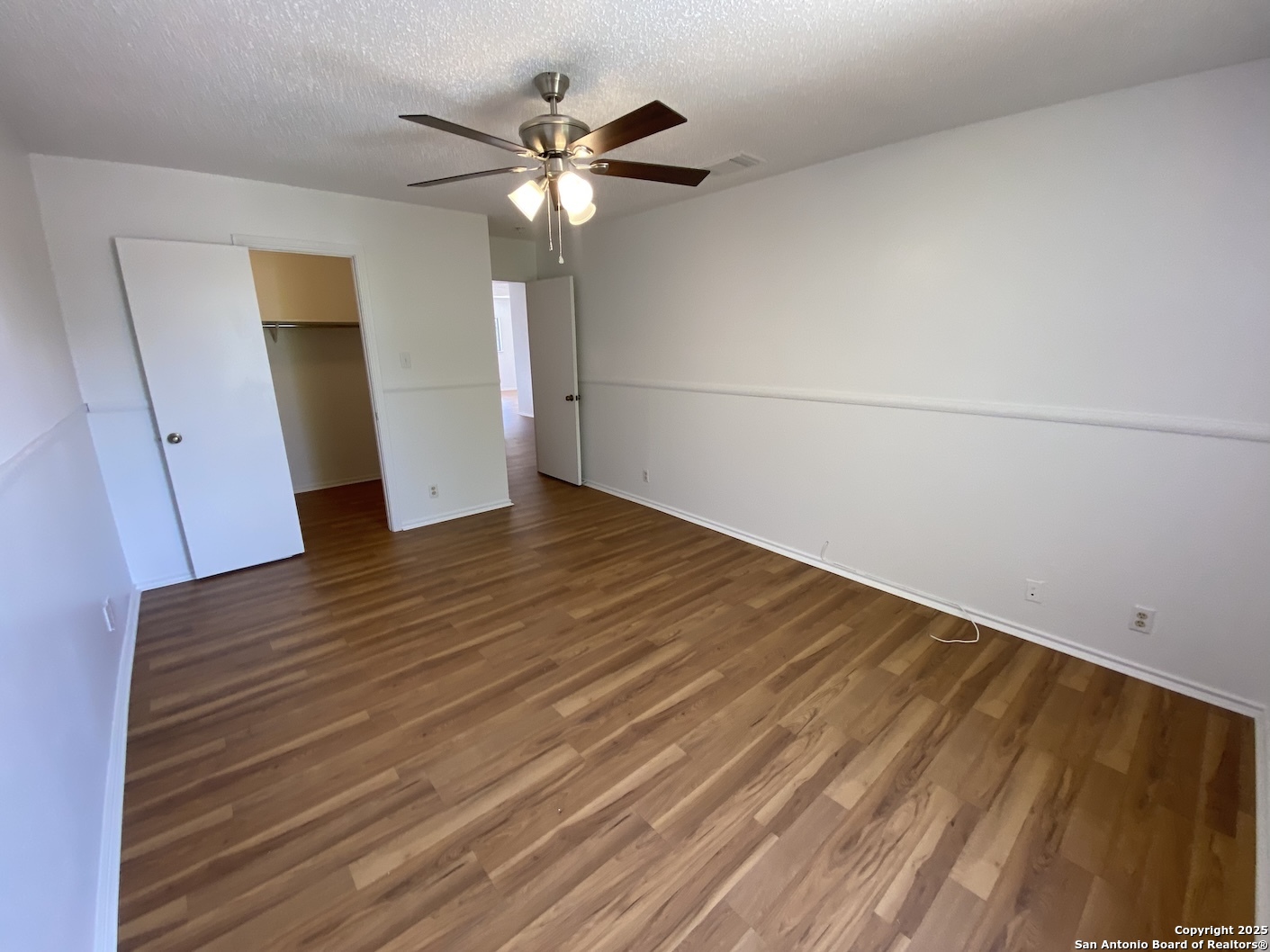 This charming two-story home is perfectly located with quick access to Loop 410 and I-10. MOVE -IN READY!! Designed for comfort and efficiency, this beauty features SOLAR PANELS to help keep your home cool in the summer and warm in the winter-without stretching your wallet! Step inside & fall in love with the fresh new flooring, crisp interior paint, and stylish updated fixtures that give this home a bright, modern feel. The open-concept layout offers a seamless flow from the spacious living area into the dining room and kitchen. The laundry room is conveniently located right off the garage for easy access. The primary bedroom is tucked downstairs and includes an attached Jack and Jill bathroom, offering both privacy and convenience. Upstairs, you'll find 3 generous bedrooms-each with its own walk-in closet and new ceiling fans- a spacious family room PLUS a versatile flex room that's perfect for a home office, or playroom. (possible 5th bedroom with closet).Step outside and enjoy the MASSIVE covered slab patio, ideal for relaxing or entertaining guests. With a brick and hardy exterior, one-car garage, and thoughtful upgrades throughout, this home blends comfort, style, and VALUE in one beautiful package.