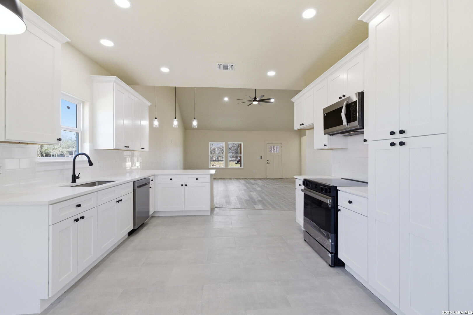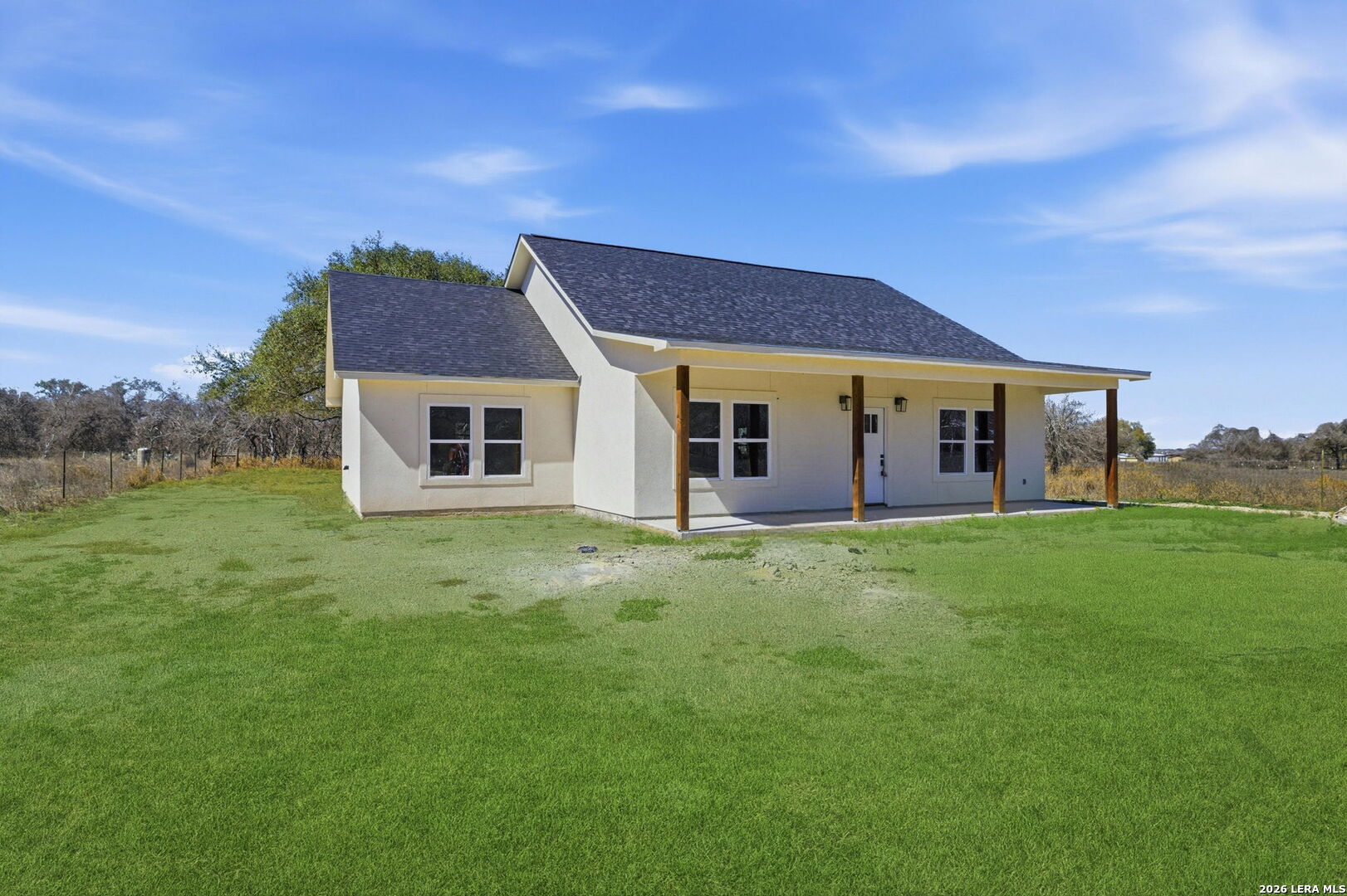 If QUIET country living is what you're looking for, then look no further! Enjoy the modern comforts and conveniences of the city yet the tranquility and PEACEFULNESS of living out in the country! Only minutes away from downtown Floresville and about a 30-minute drive to all that beautiful downtown San Antonio has to offer! This CUSTOM single story home features 2-bedrooms + Bonus Room currently being used as a 3rd bedroom and 2 full baths! Bonus room can be used as a media room, office, or flex space (3 rooms total)! Separate dining area! The HUGE master suite offers a spacious walk-in closet and custom master bath! The LARGE open living area opens to the GORGEOUS kitchen with a custom bar seating area that is sure to host many gatherings with family and friends! Wood beams, solid wood doors, and beautiful fixtures are just a few of the high-end touches! All this sits on your very own quiet 1/2-acre lot! Don't hesitate on this one, you won't be disappointed! WELCOME HOME